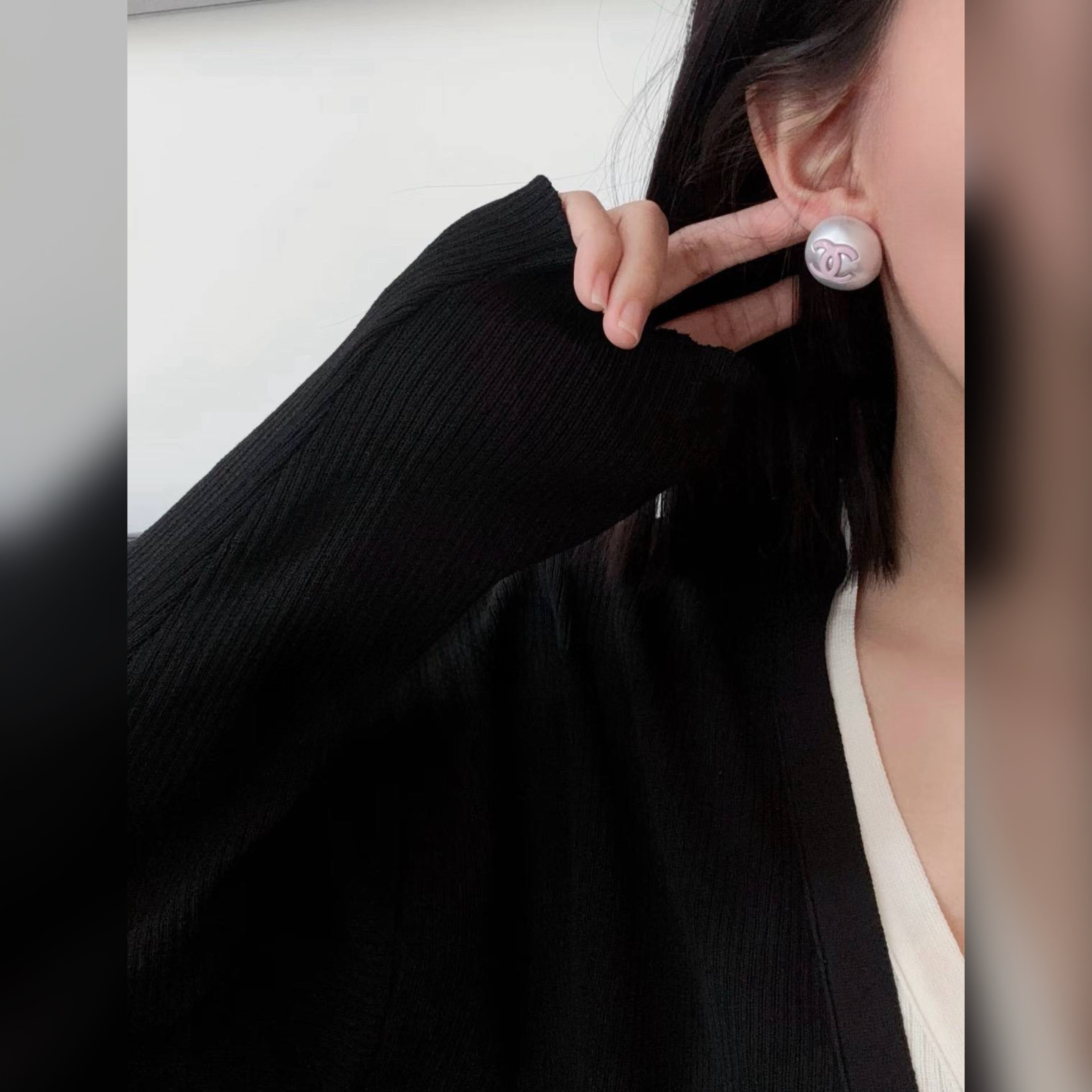 Крупные серьги в форме жемчужины с застежками-пусетами станут акцентом в образе. Аксессуар выполнили из легкого сплава и смолы, на поверхности которой деликатно выделяется тисненый логотип марки.