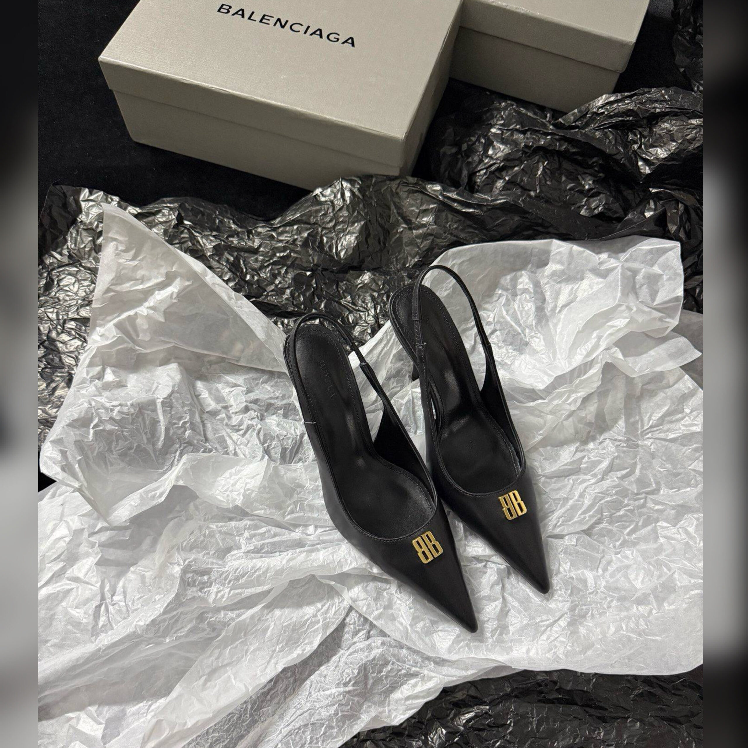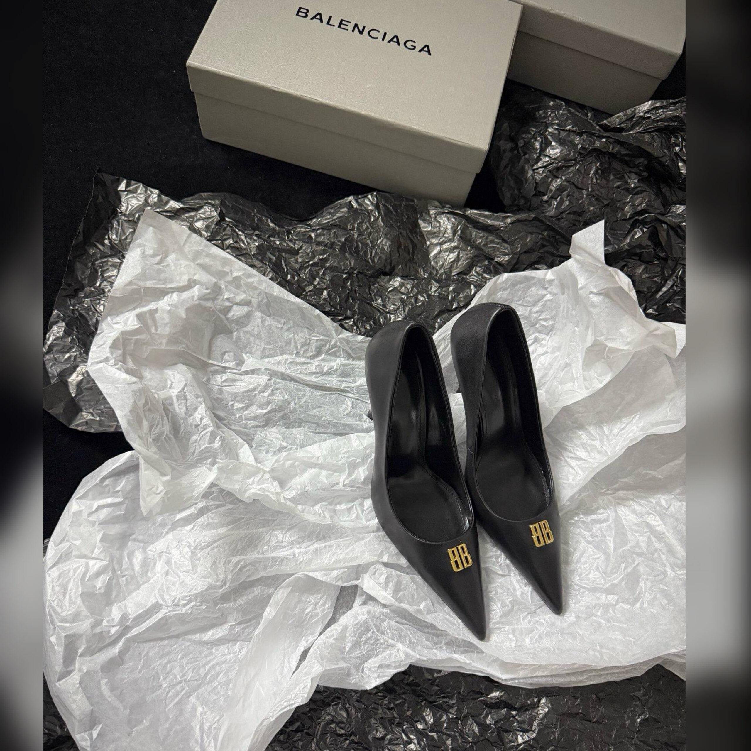 Черные туфли идеально подойдут к монохромному наряду. От небольшой золотистой пряжки в виде эмблемы марки лаконичный образ только выиграет. Для создания модели с зауженным мысом Демна Гвасалия выбрал мягкую натуральную кожу. Глубокий вырез поможет подчеркнуть высокий подъем.