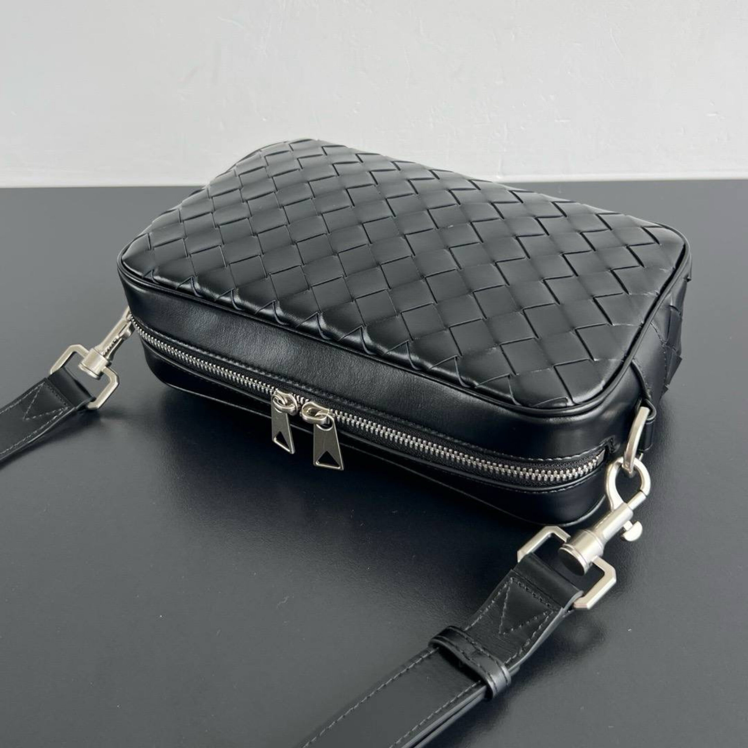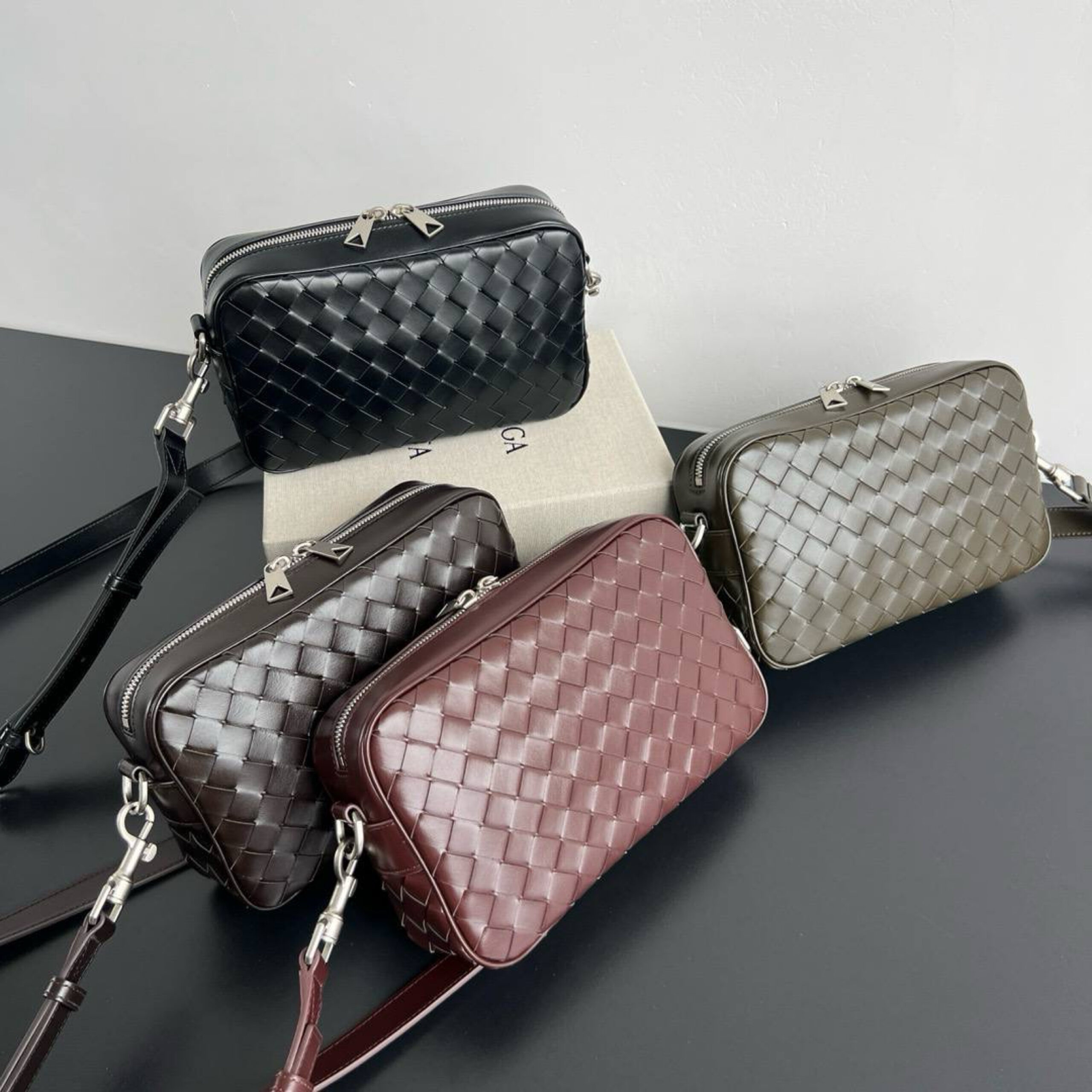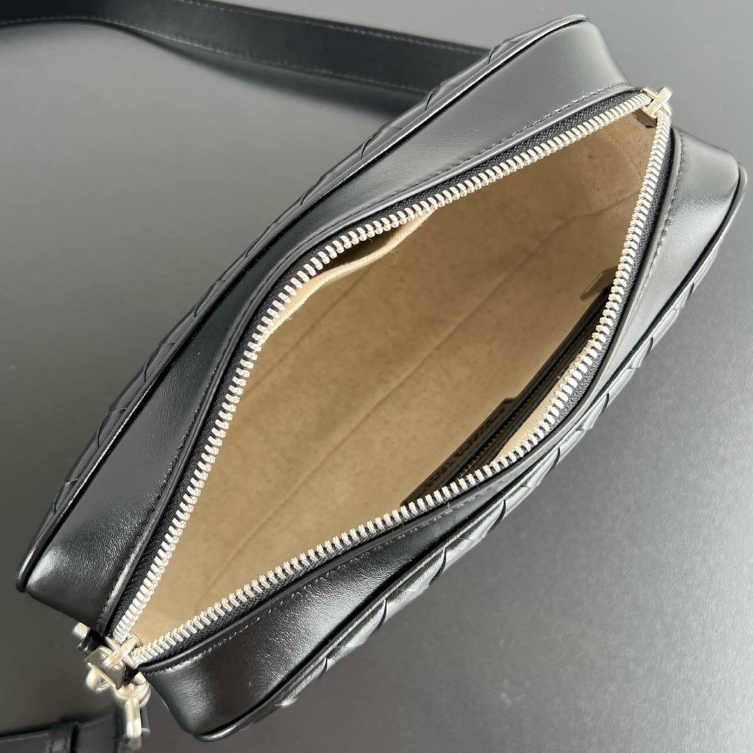 Сумку Camera сплели вручную в фирменной технике intrecciato из гладкой телячьей кожи. Модель с внутренним карманом на молнии дополнили съемным регулируемым плечевым ремнем. В аксессуар, застегивающийся молнией, поместятся портмоне, смартфон и ключи.