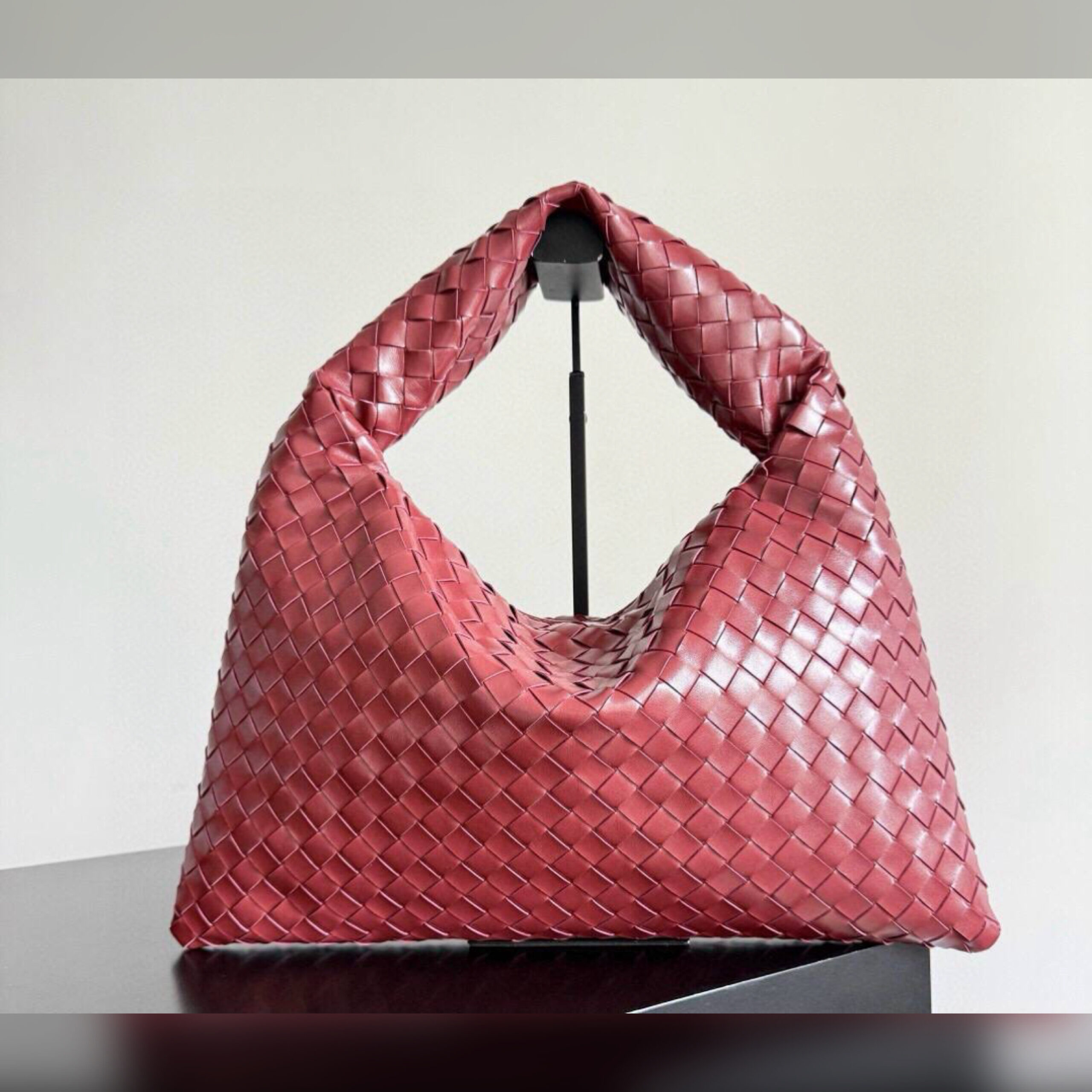 Сумку с цельнокроеной длинной ручкой сплели в фирменной технике intrecciato.