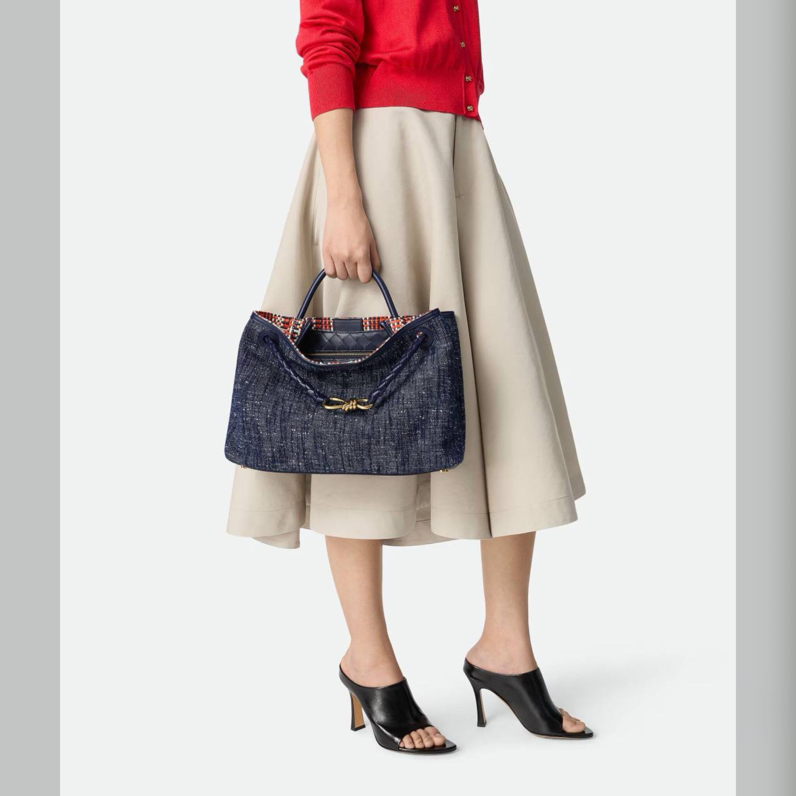 Сумку Andiamo с короткой ручкой выполнили из плотной джинсовой ткани.