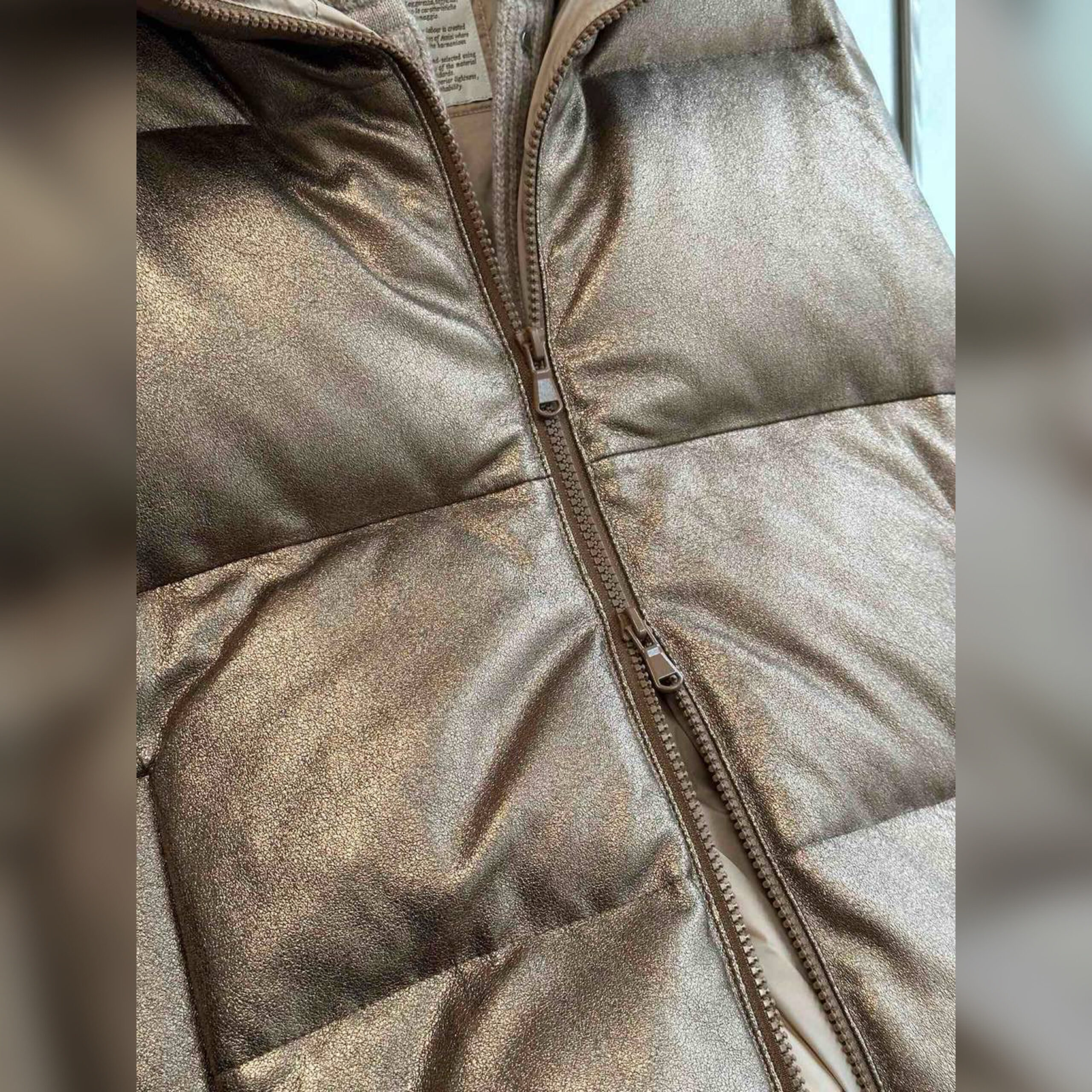 Для пошива стеганой куртки мастера марки использовали натуральную кожу с бронзовым эффектом. Изделие утеплили слоем отборного гусиного пуха с добавлением пера. За дополнительную защиту от холода отвечает воротник-стойка и мягкий трикотажный капюшон.