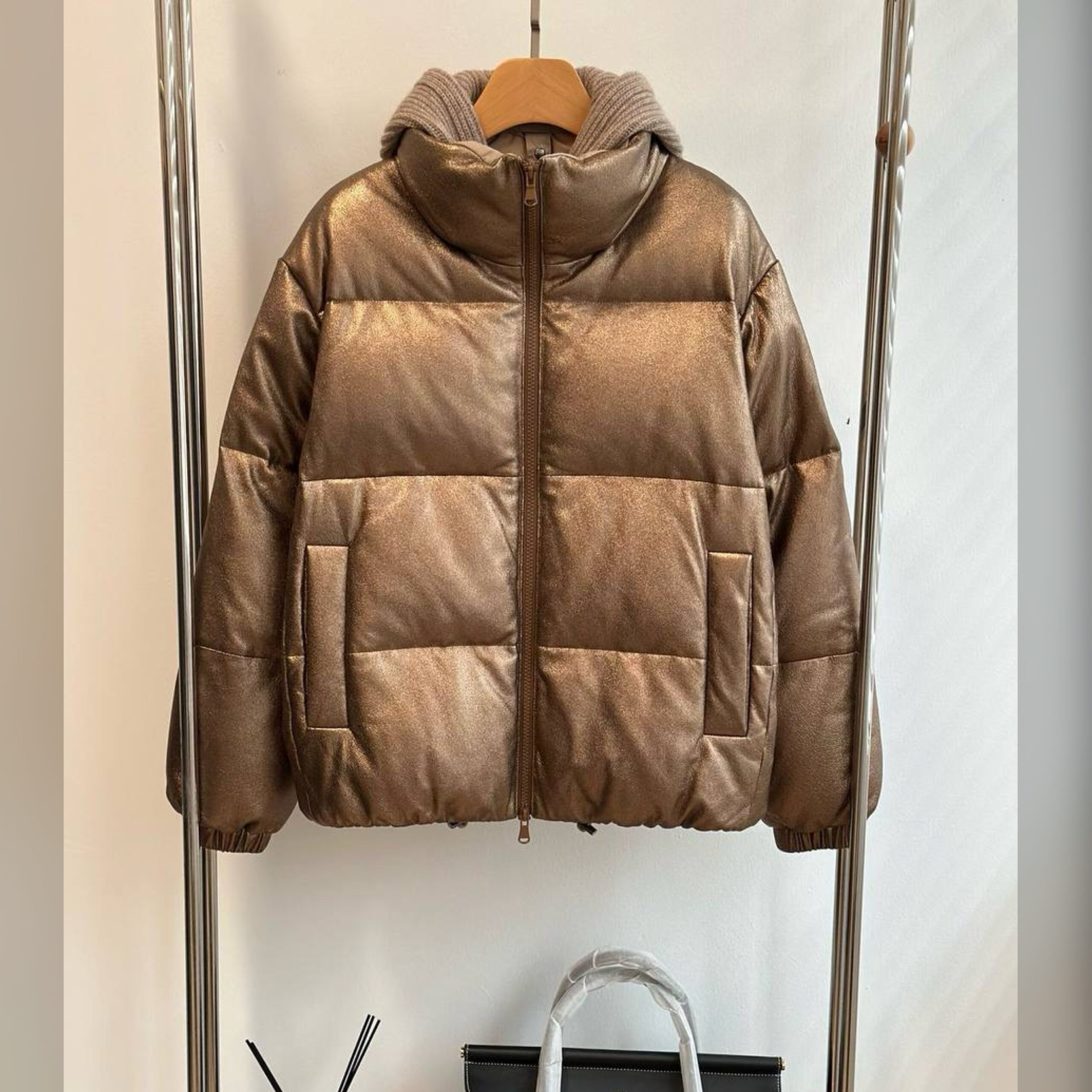 Кожаный пуховик от бренда Brunello Cucinelli