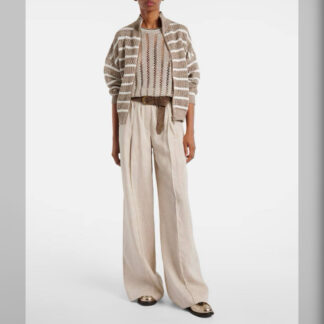 Ценная отделка украшает летний характер топа из трикотажа Dazzling Net. Классическая вязка сеткой с игрой прозрачных и плотных участков дополняется сверканием пайеток, которые распространяют нежные сияющие блики по всей поверхности изделия. Окантовка из трикотажа в рубчик завершает модель