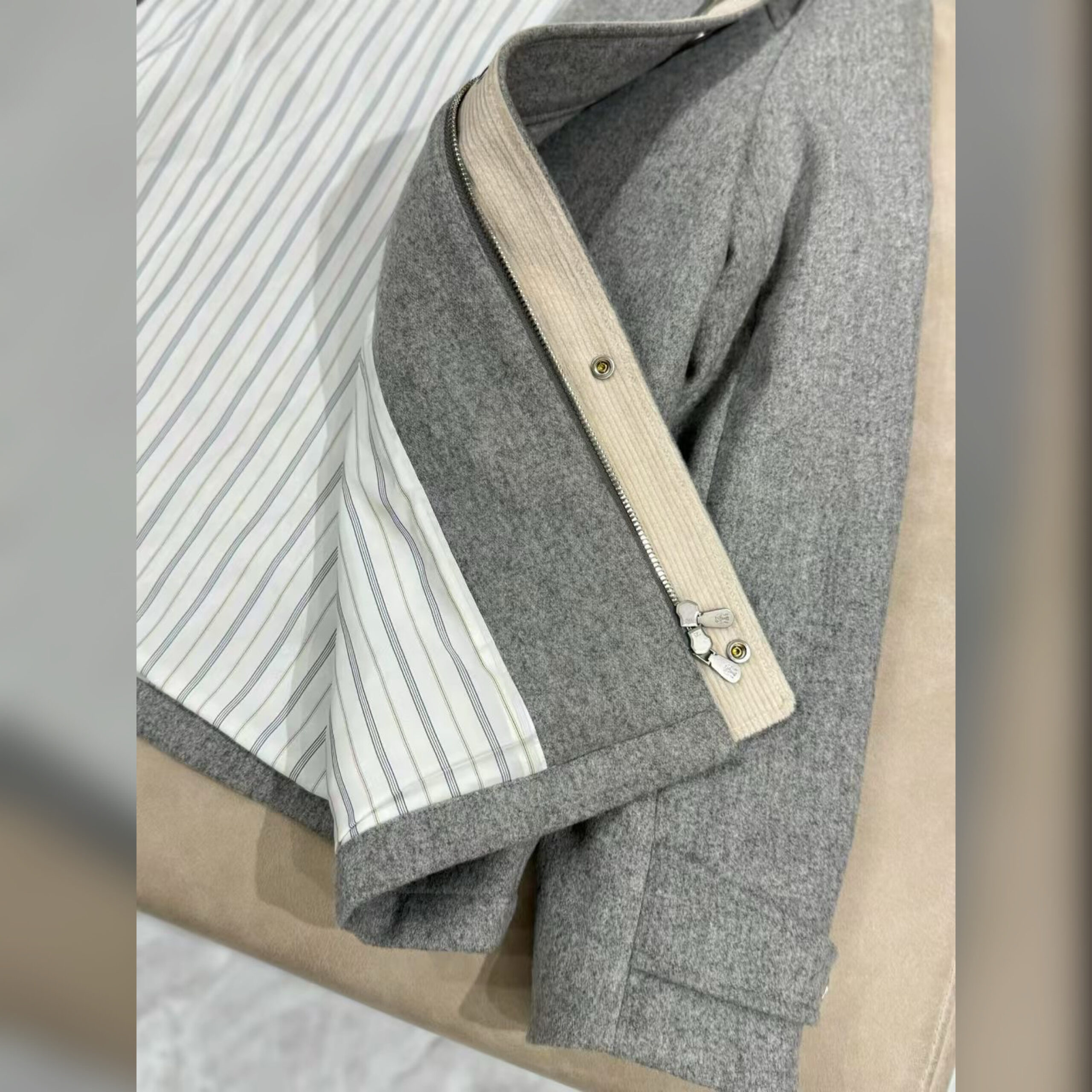 Внешний материал объединяет уютную и легкую текстуру с мягкостью, а пушистая вставка на воротнике создает гармоничный контраст.