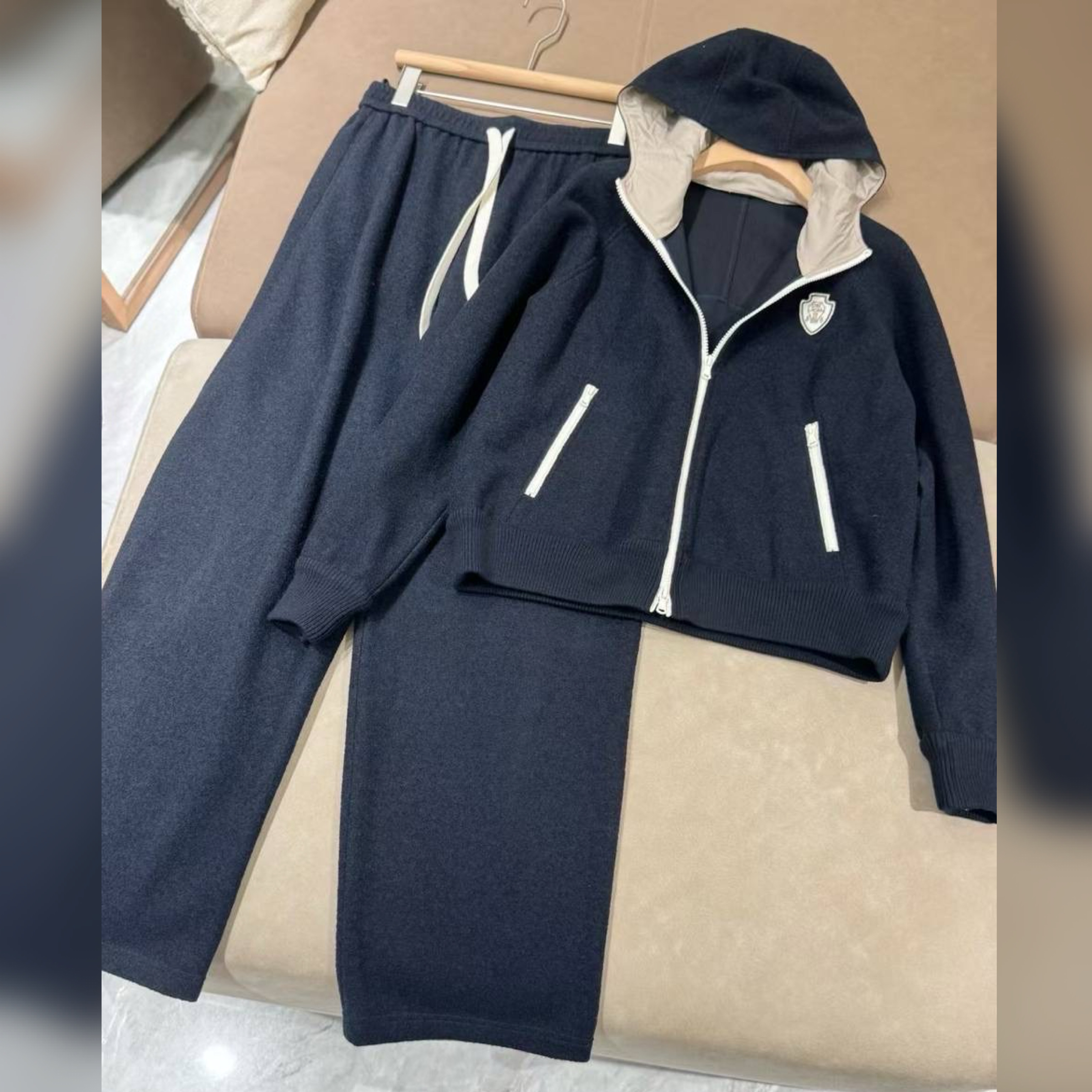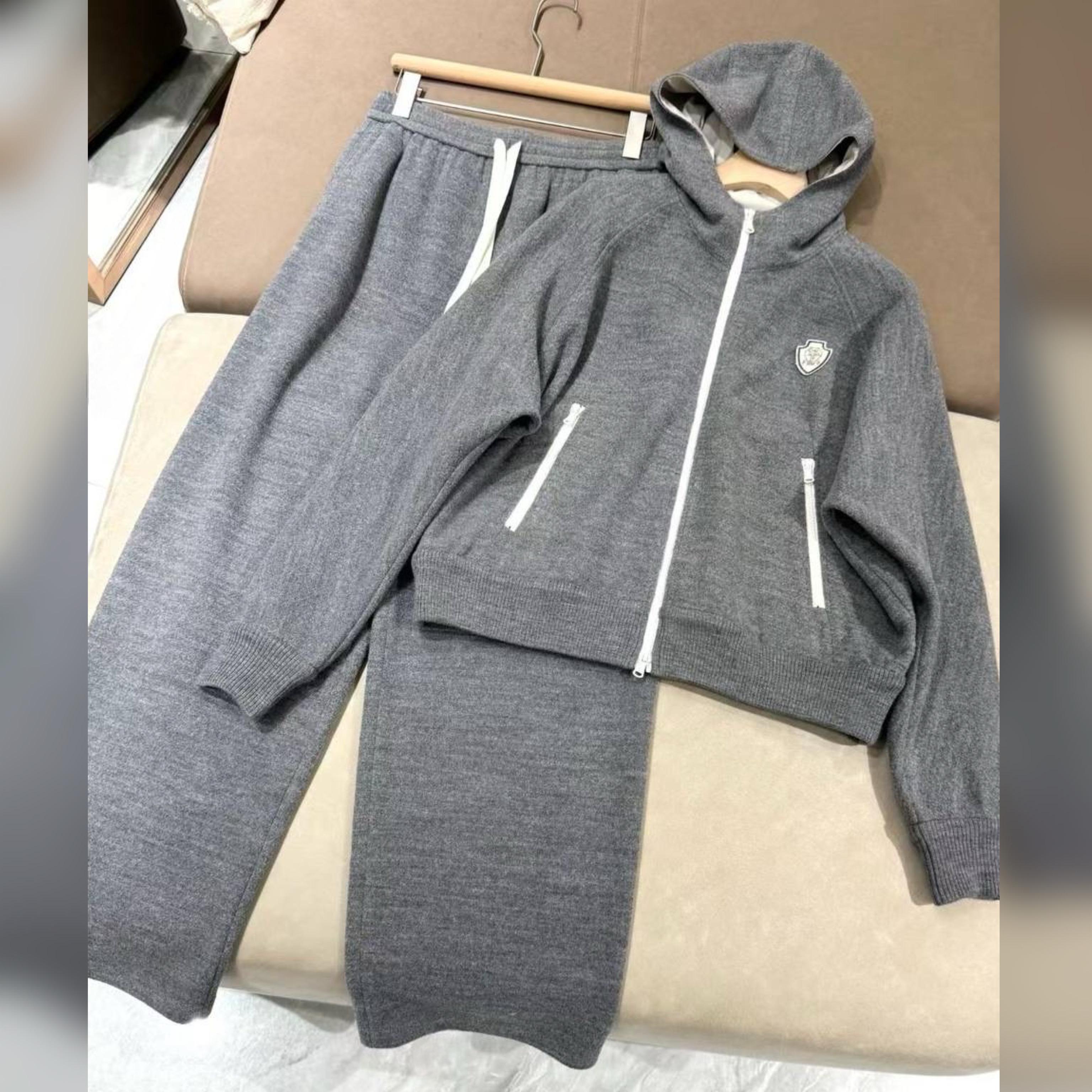 В костюме из фирменного высокотехнологичного материала спортивный стиль сочетается с культовыми деталями. Свободный крой воплощает типичный неформальный характер и обеспечивает удобство, а знаковый геральдический герб Solomeo завершает эстетику изделий.