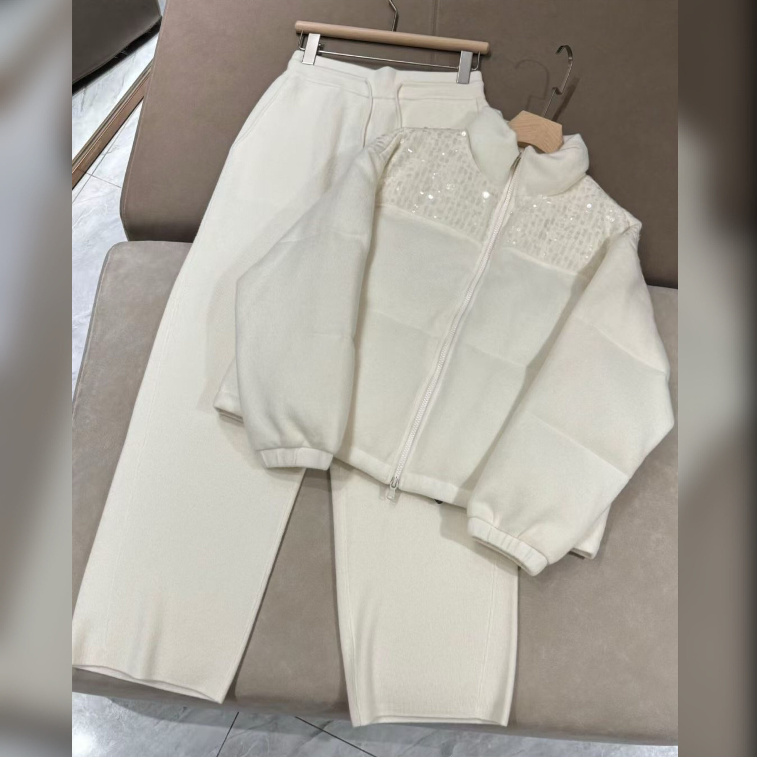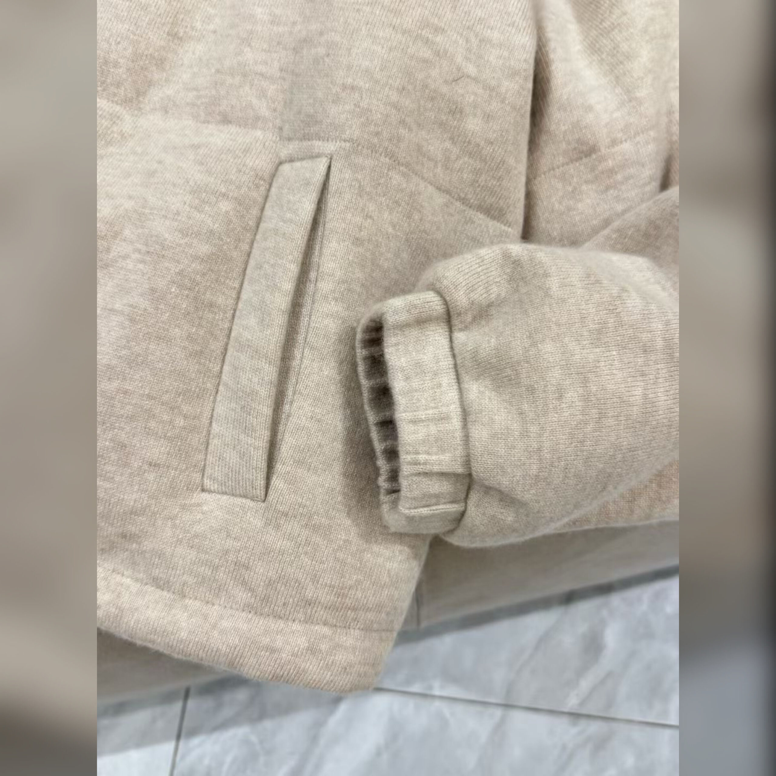 Модель с двойной молнией дополнили двумя врезными карманами и эластичными манжетами.