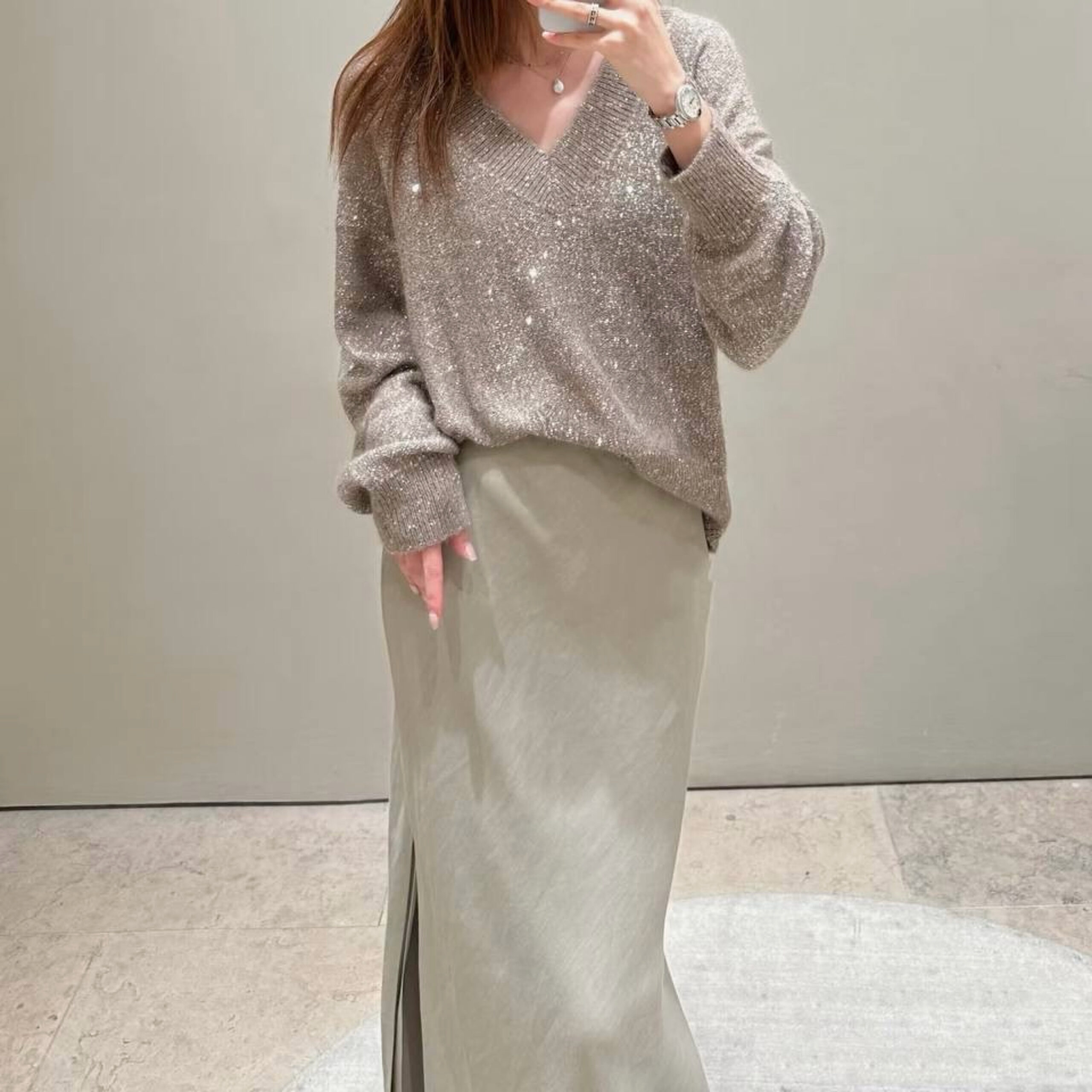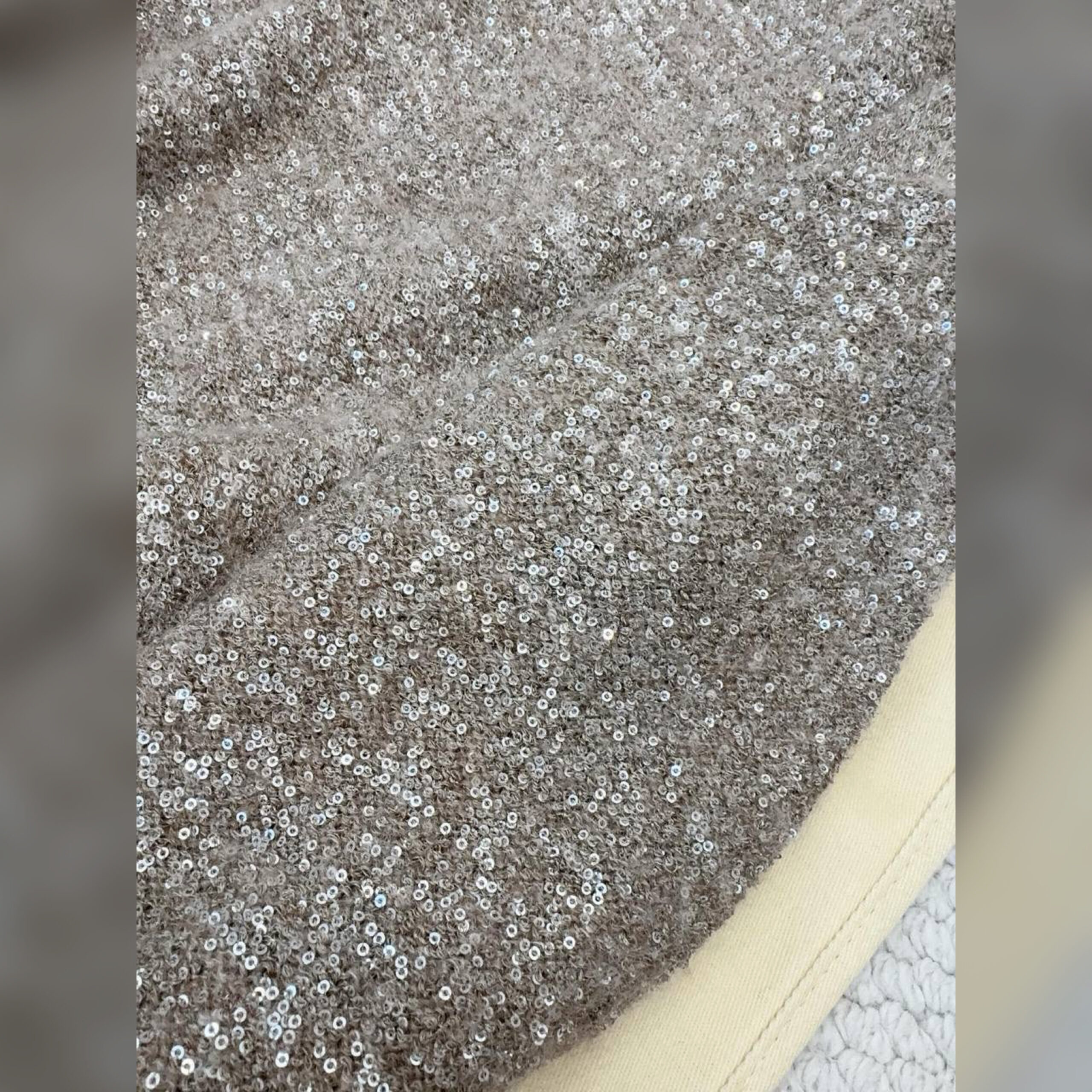 При создании джемпера Dazzling Texture из натуральной шерсти и мохера ценные природные волокна интерпретируются в весеннем ключе. Россыпь ярких пайеток распространяет нежные блики по всей поверхности модели, демонстрирующей невероятную легкость и воздушность. Мягкий силуэт отличается слегка спущенной линией плеч и объемными рукавами и завершается женственным V-образным вырезом.