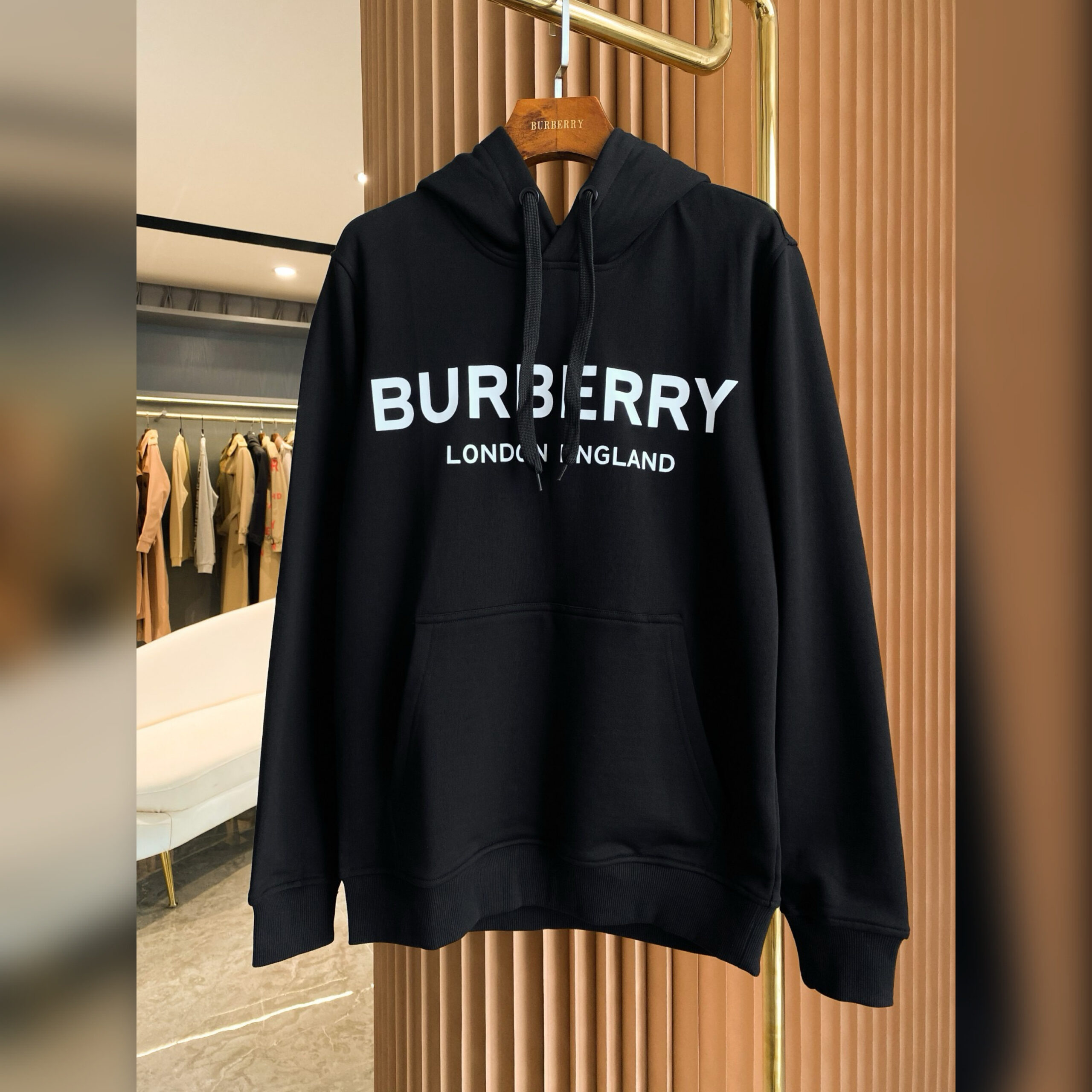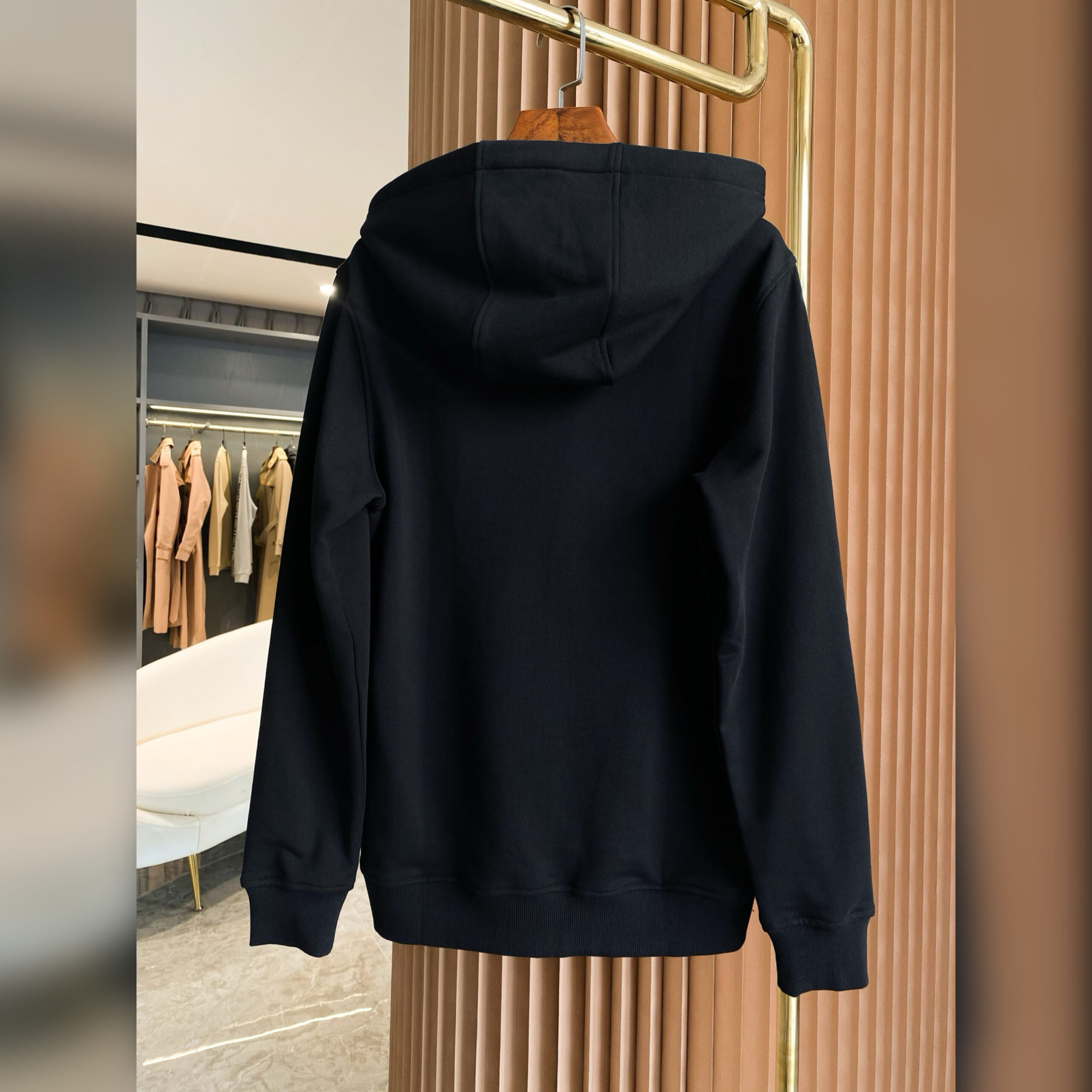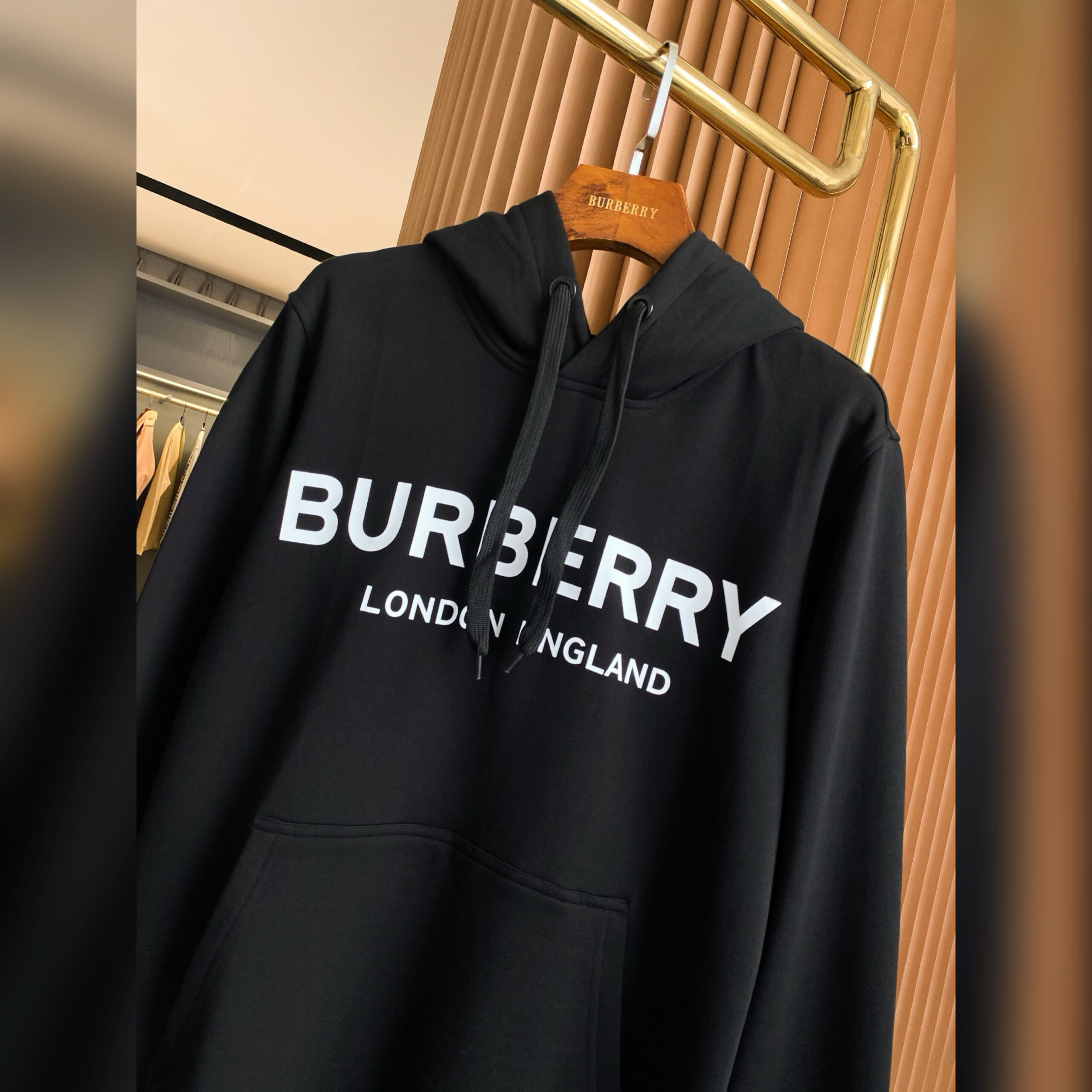 Черное худи с крупным белым логотипом спереди громко заявляет о своей принадлежности бренду, основанному Томасом Берберри. Для изготовления модели использовали мягкий трикотаж на базе органического хлопка. Дышащий материал с плотным переплетением нитей и фактурной изнанкой хорошо сохраняет тепло и приятно ощущается на теле.
