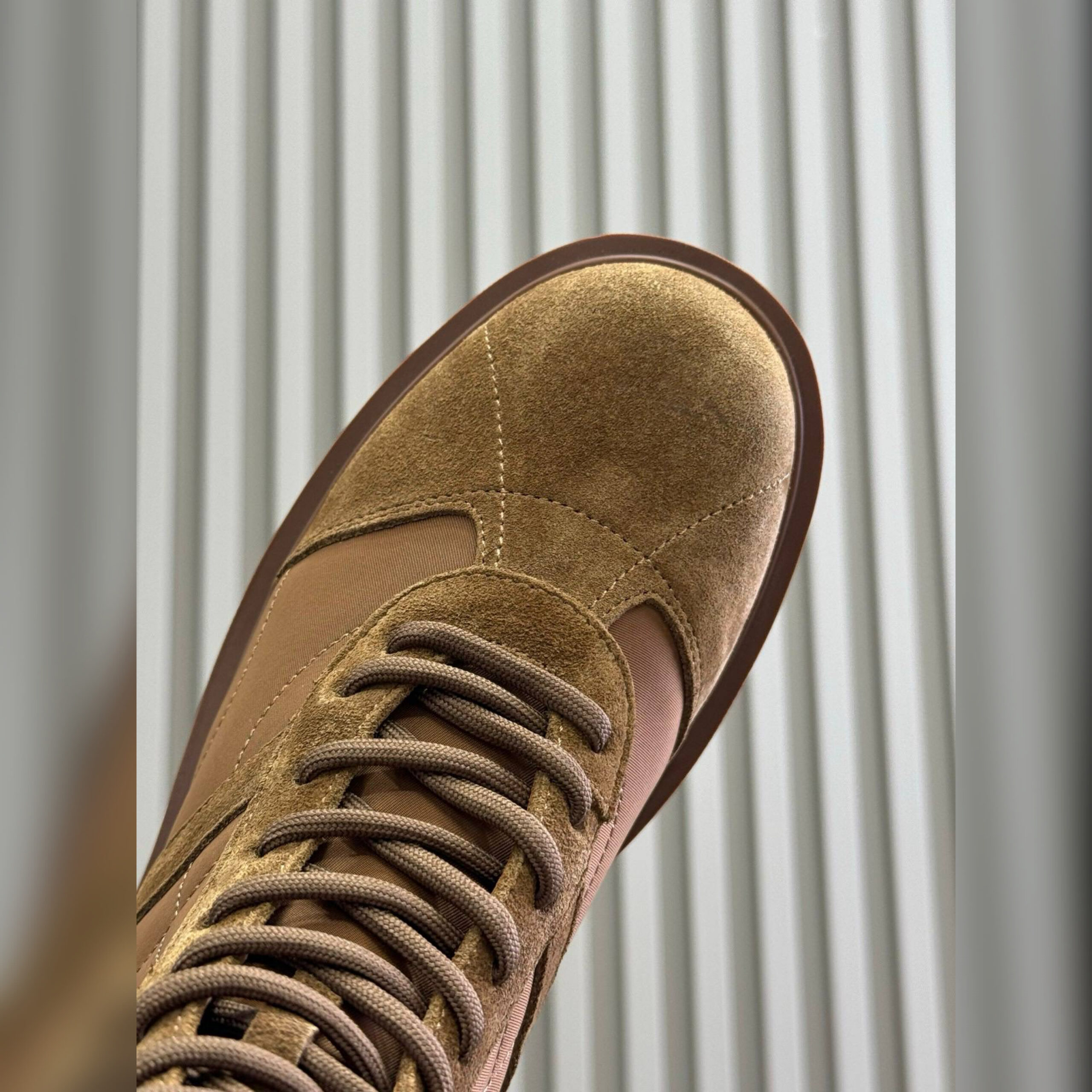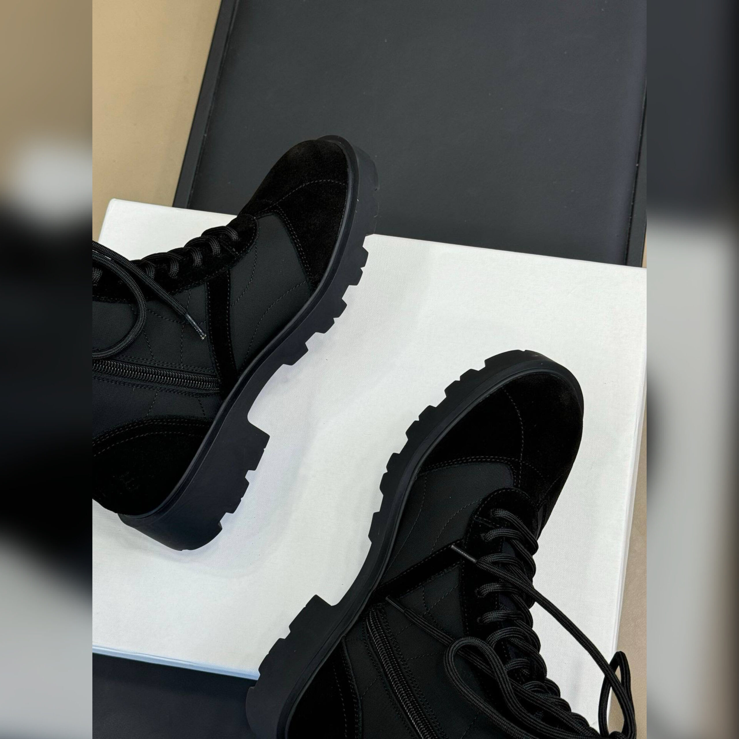 Высокие ботинки мастера марки сшили вручную из прочного нейлона и натуральной замши с бархатистой фактурой.