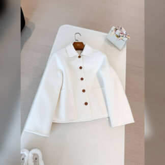 В осенне-зимнюю коллекцию марки вошла прямая куртка молочного оттенка. Для пошива модели с глубоким капюшоном использовали легкий нежнейший кашемир, которому нет равных в сохранении тепла. Изделие застегивается молнией с брендированным пуллером.