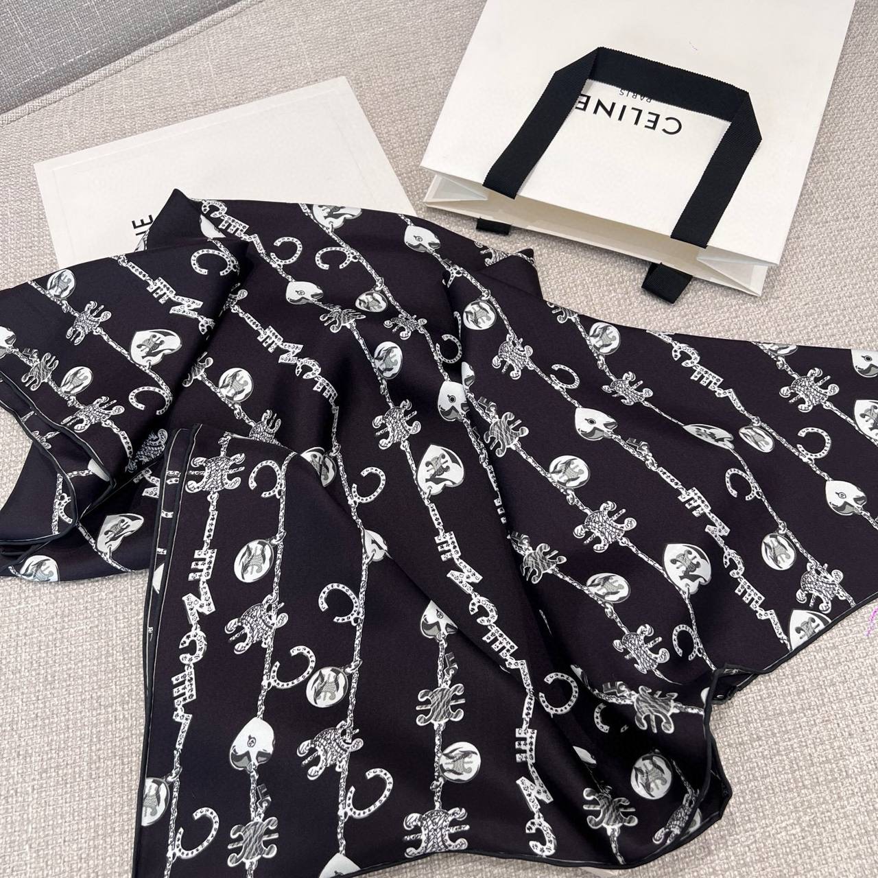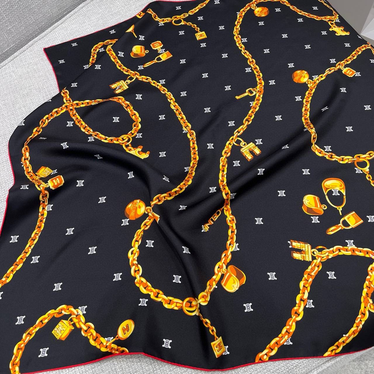 Платок, украшенный знаковыми для марки мотивами может стать стилеобразующей деталью, если украсить им сумку или низкий хвост. Для изготовления модели мастера марки использовали мягкий шелковый твил с характерным легким блеском.