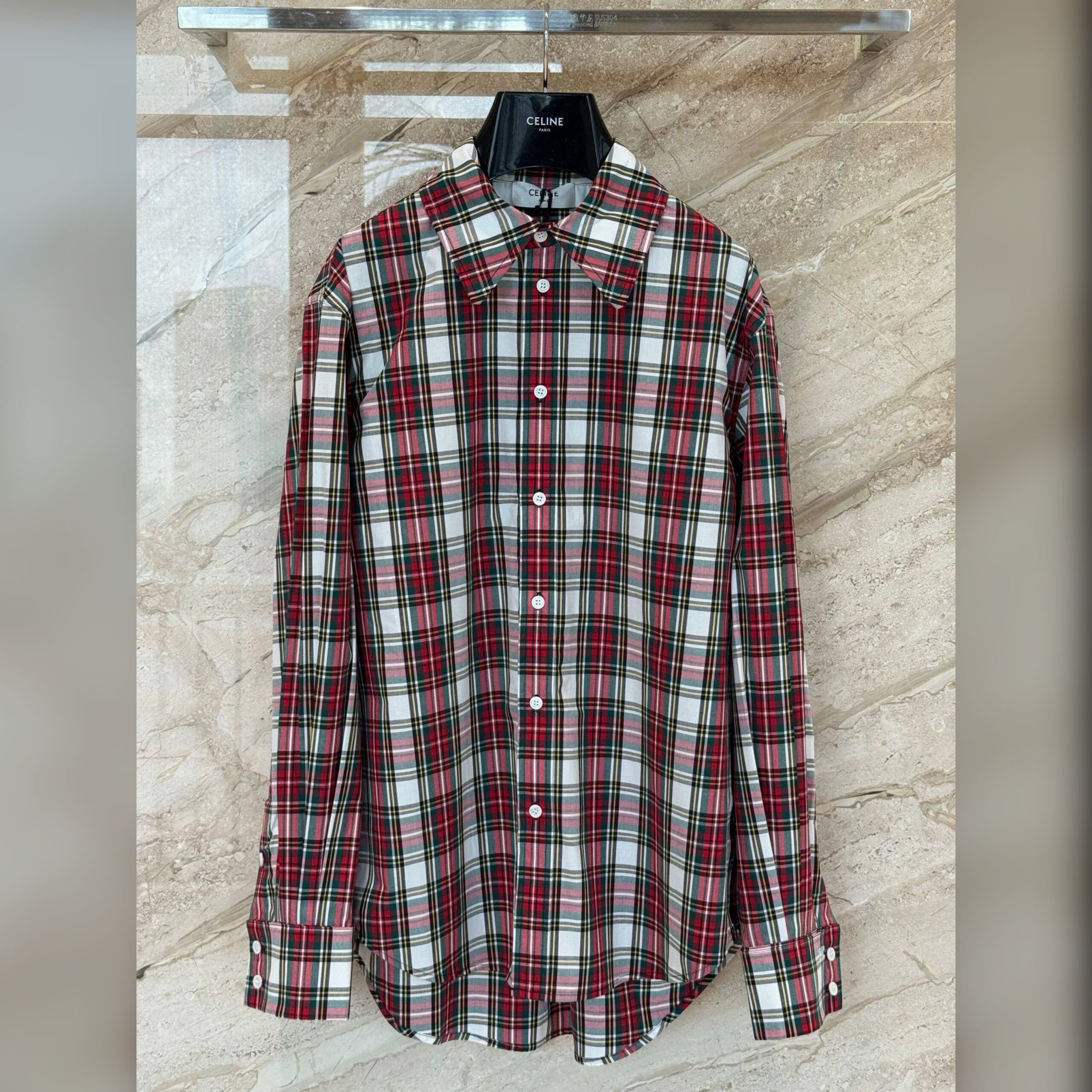 В коллекцию сезона весна-лето вошла рубашка в крупную разноцветную клетку. Для изготовления прямой модели с длинными рукавами и удлиненной спинкой мастера марки использовали хлопок. Повседневный образ поддержат голубые джинсы и белые кеды.