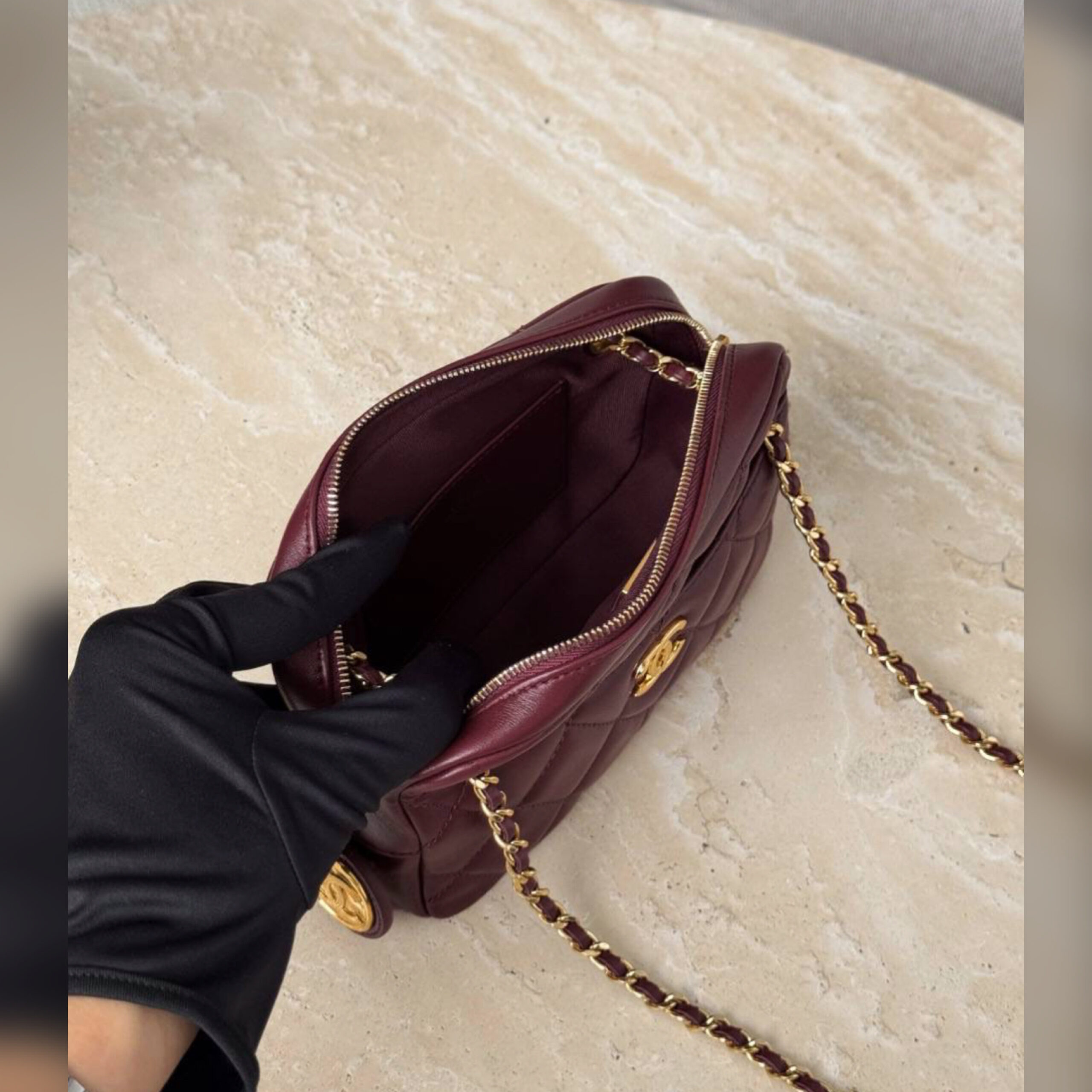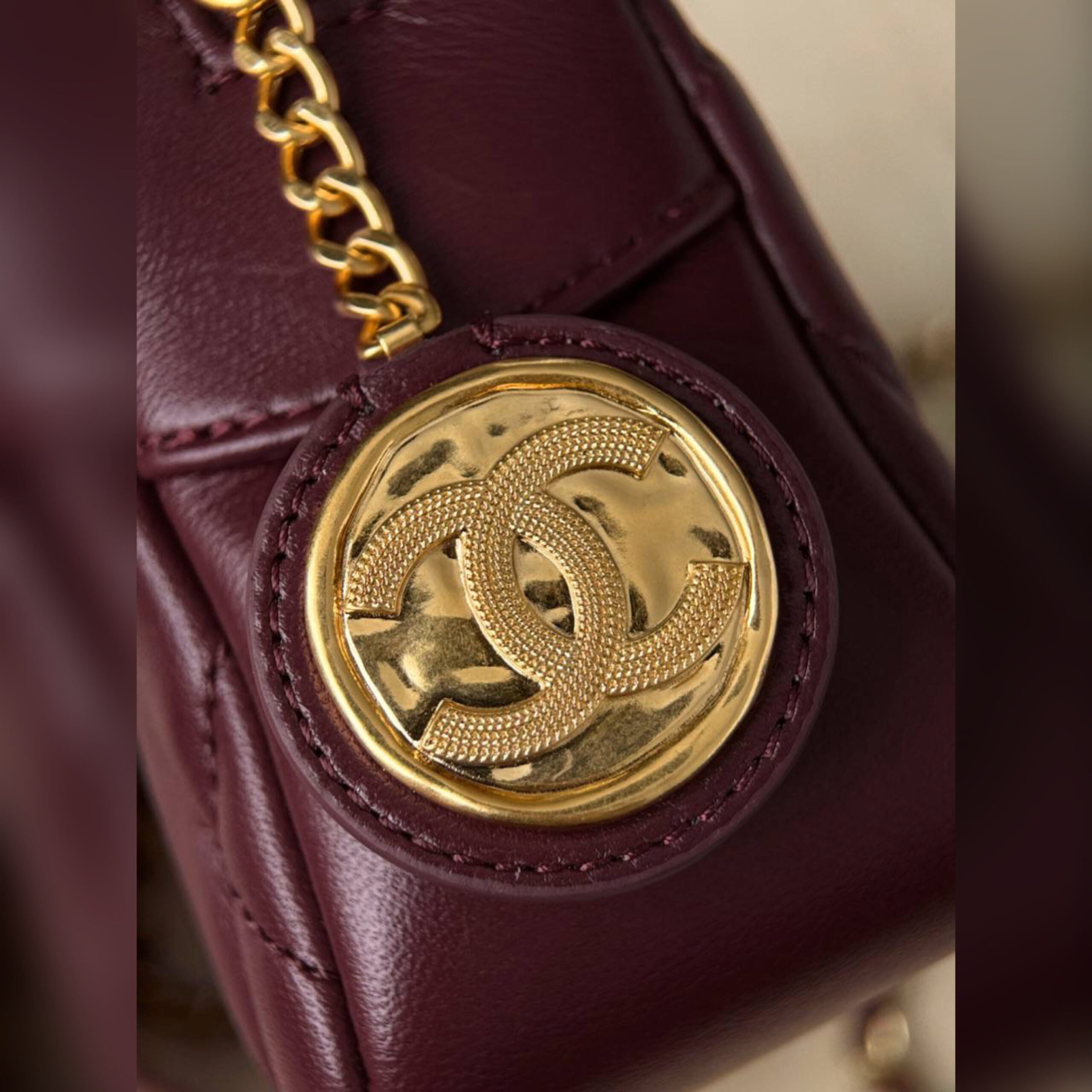 Сумка легко узнаваема, благодаря стеганой коже ягненка, подвеске с логотипом марки и выразительной цепочке.