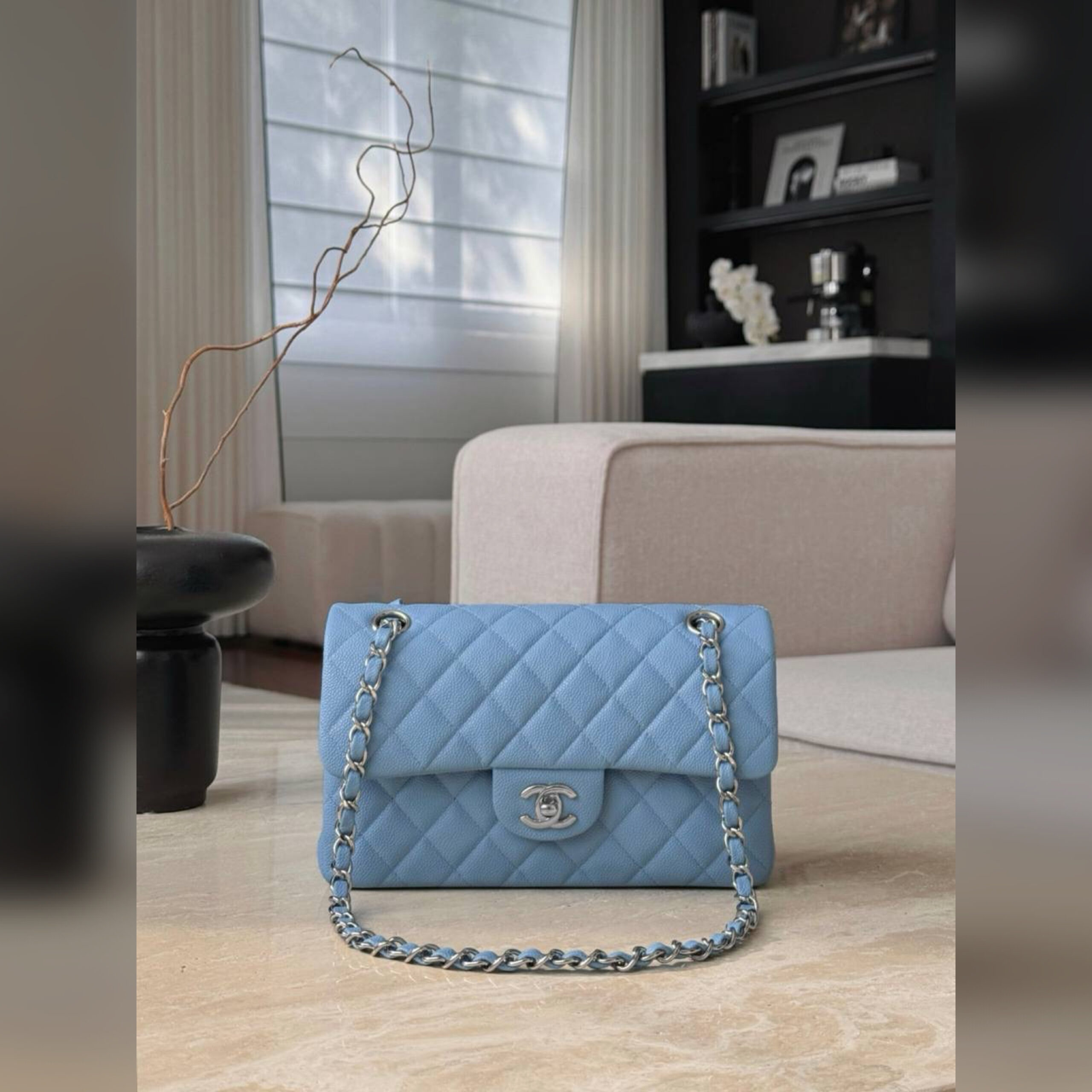 Деликатные акценты расставляют фурнитура из полированного металла и знаковый поворотный замок в виде монограммы СС.
