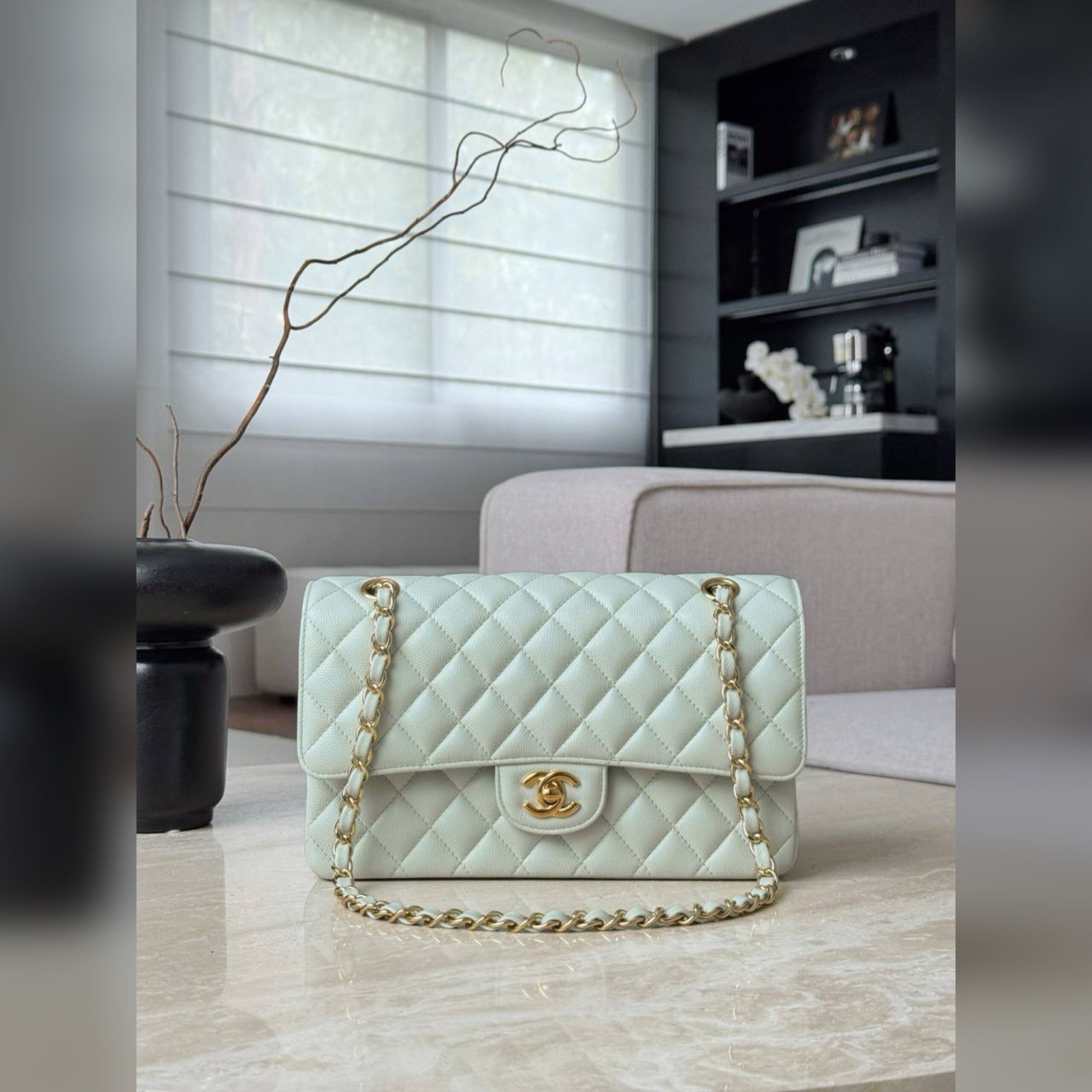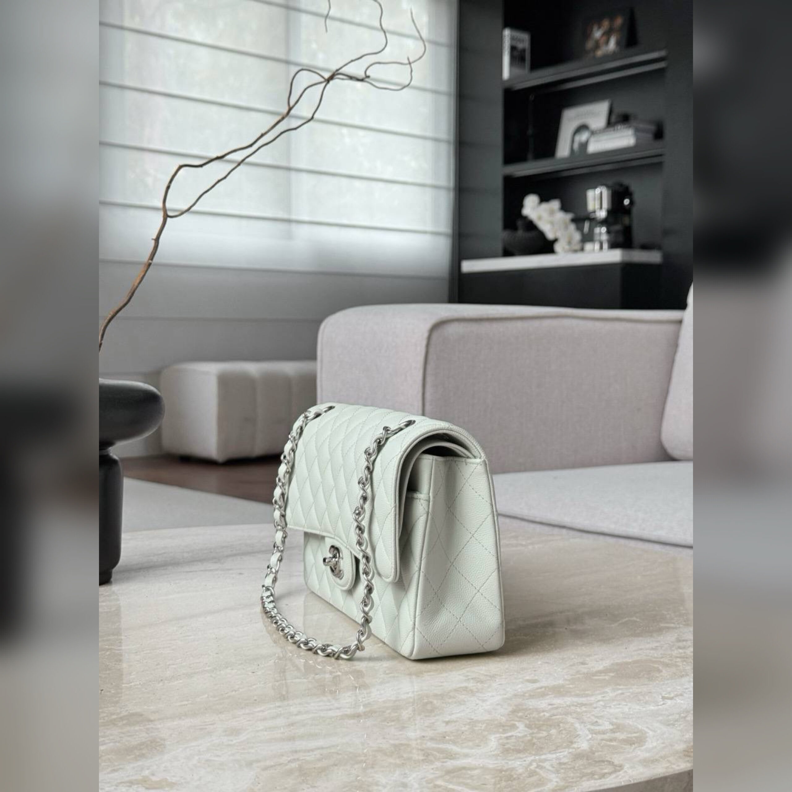 Деликатные акценты расставляют фурнитура из полированного металла и знаковый поворотный замок в виде монограммы СС.