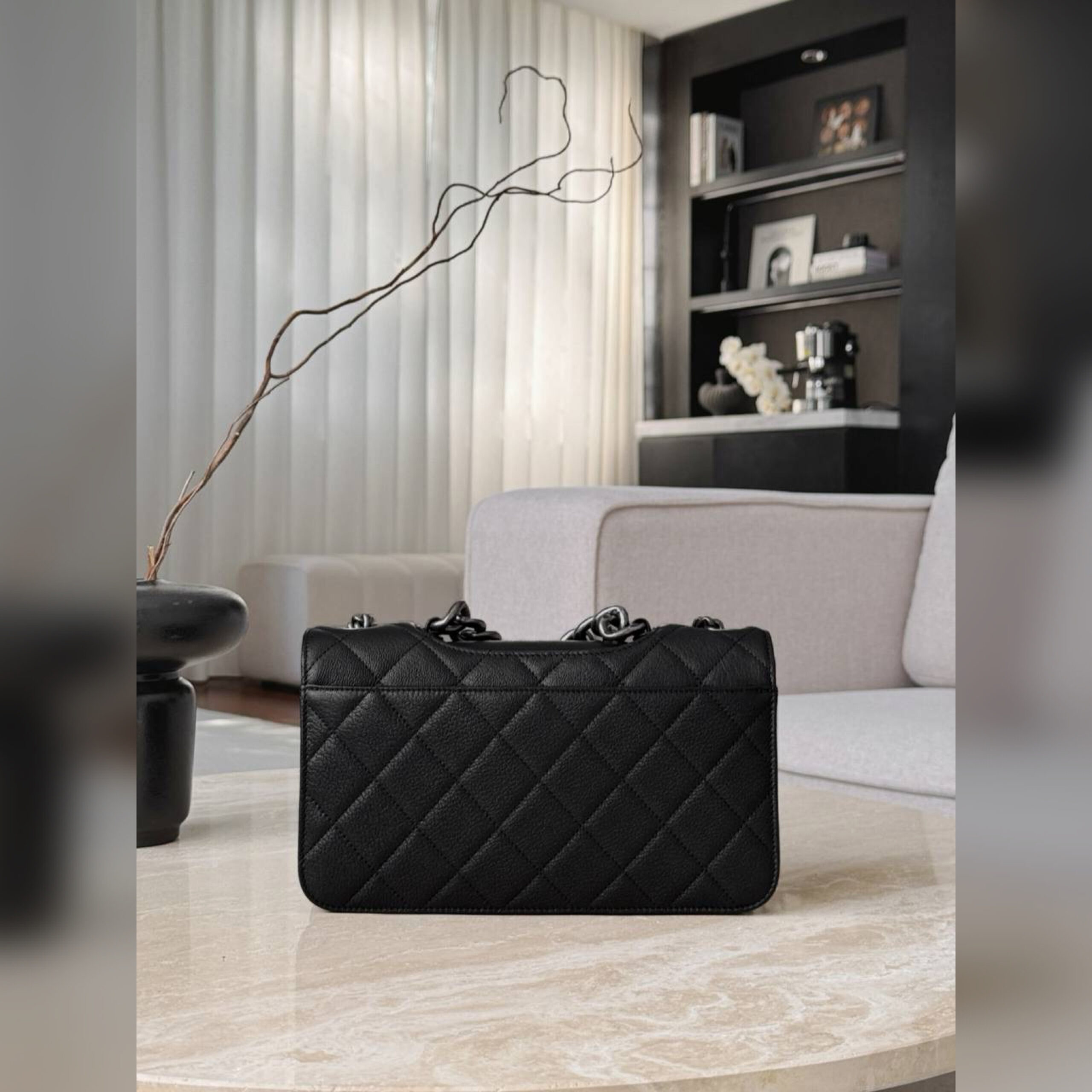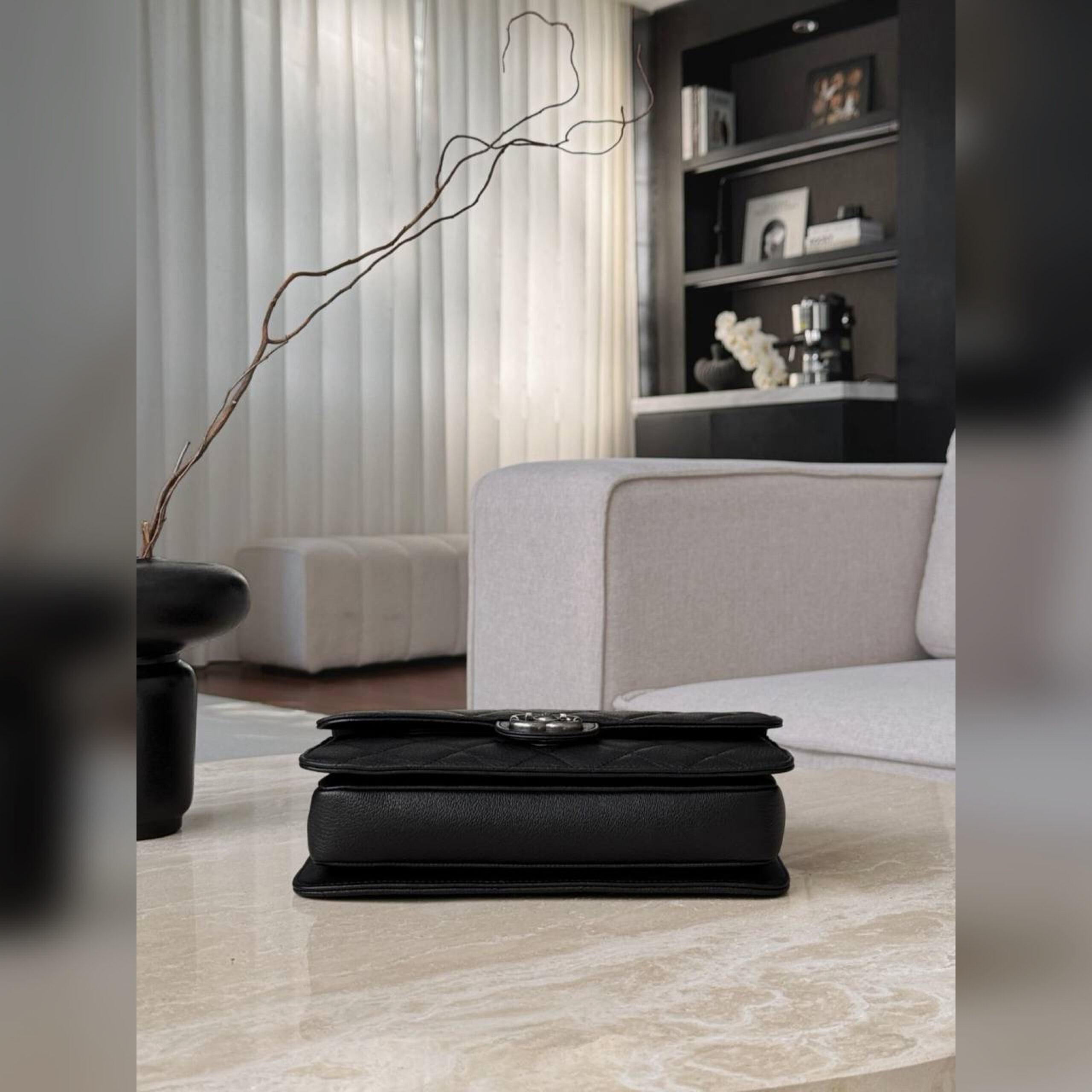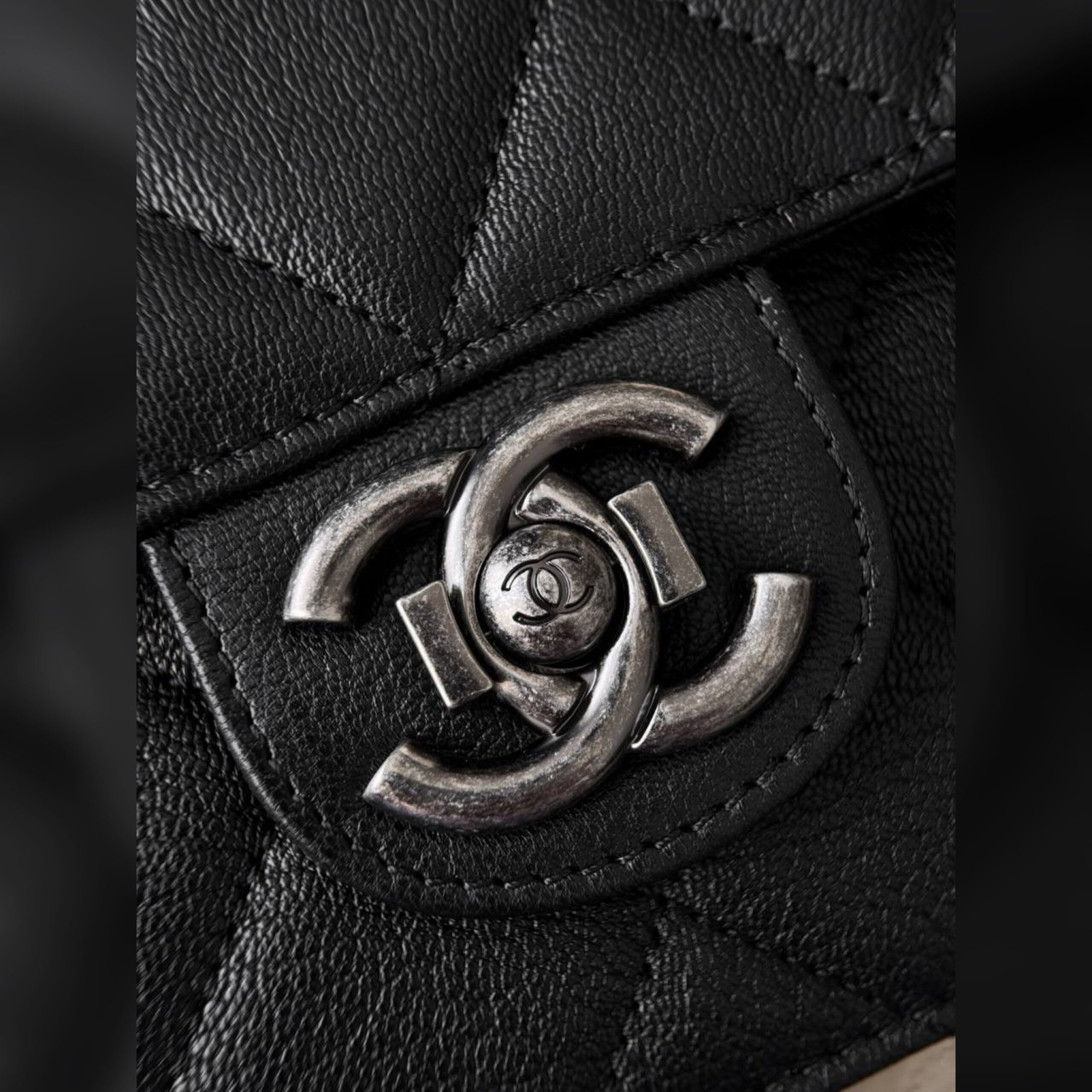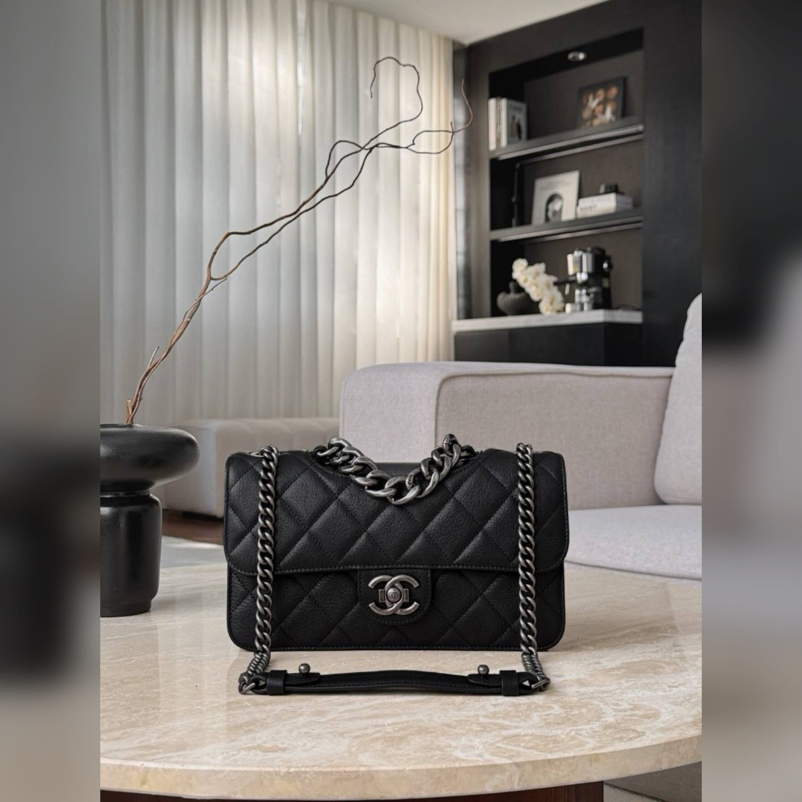 На эффектном фоне деликатные акценты расставляет фурнитура цвета состаренного серебра и знаковая монограмма СС.