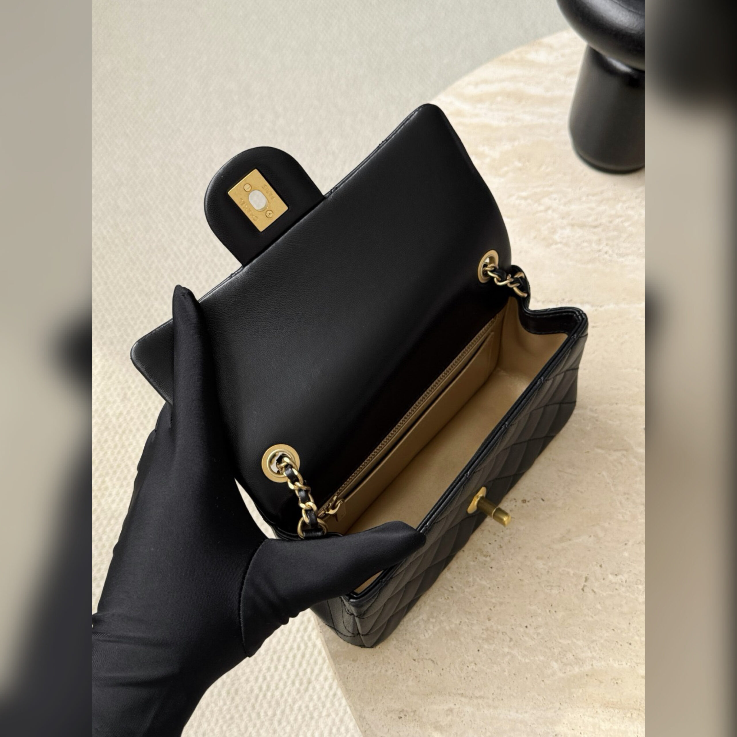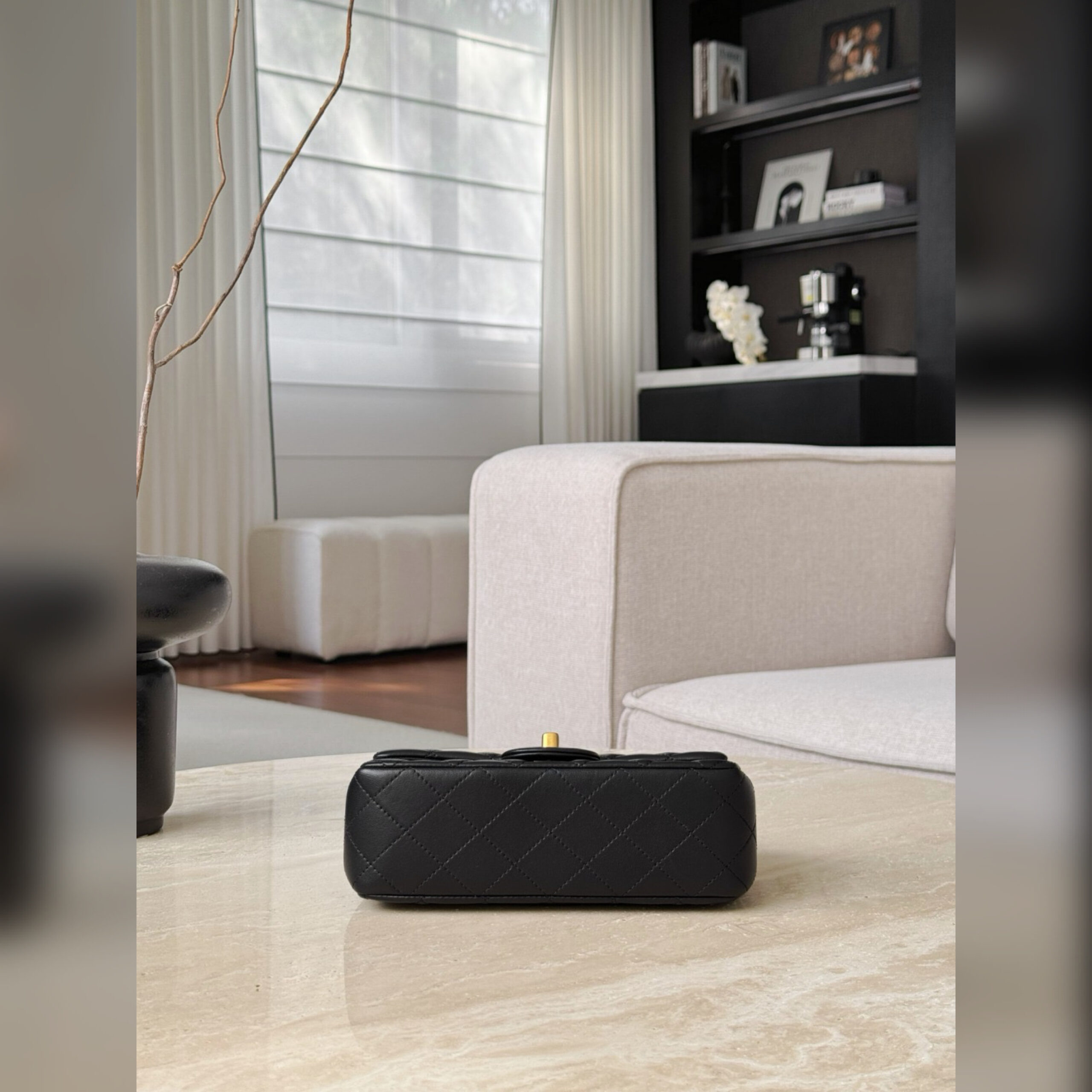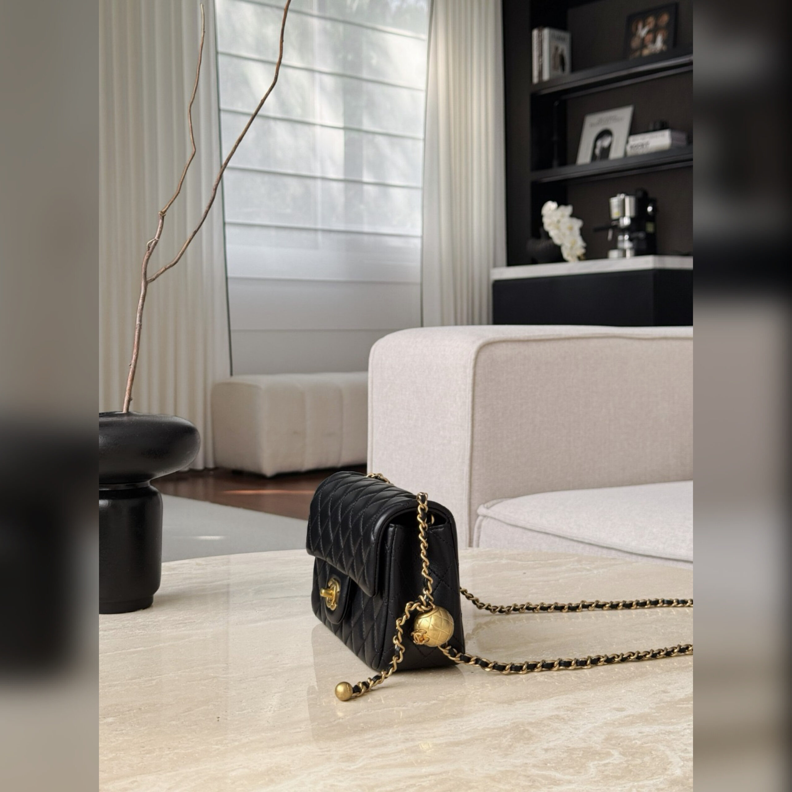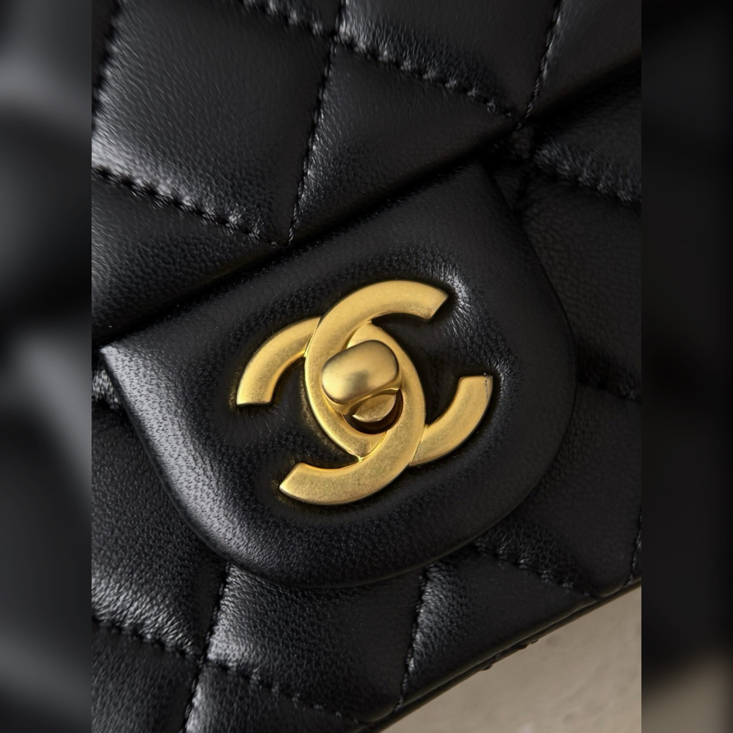 На эффектном фоне деликатные акценты расставляет золотистая фурнитура и знаковый поворотный замок в виде двойной буквы С.