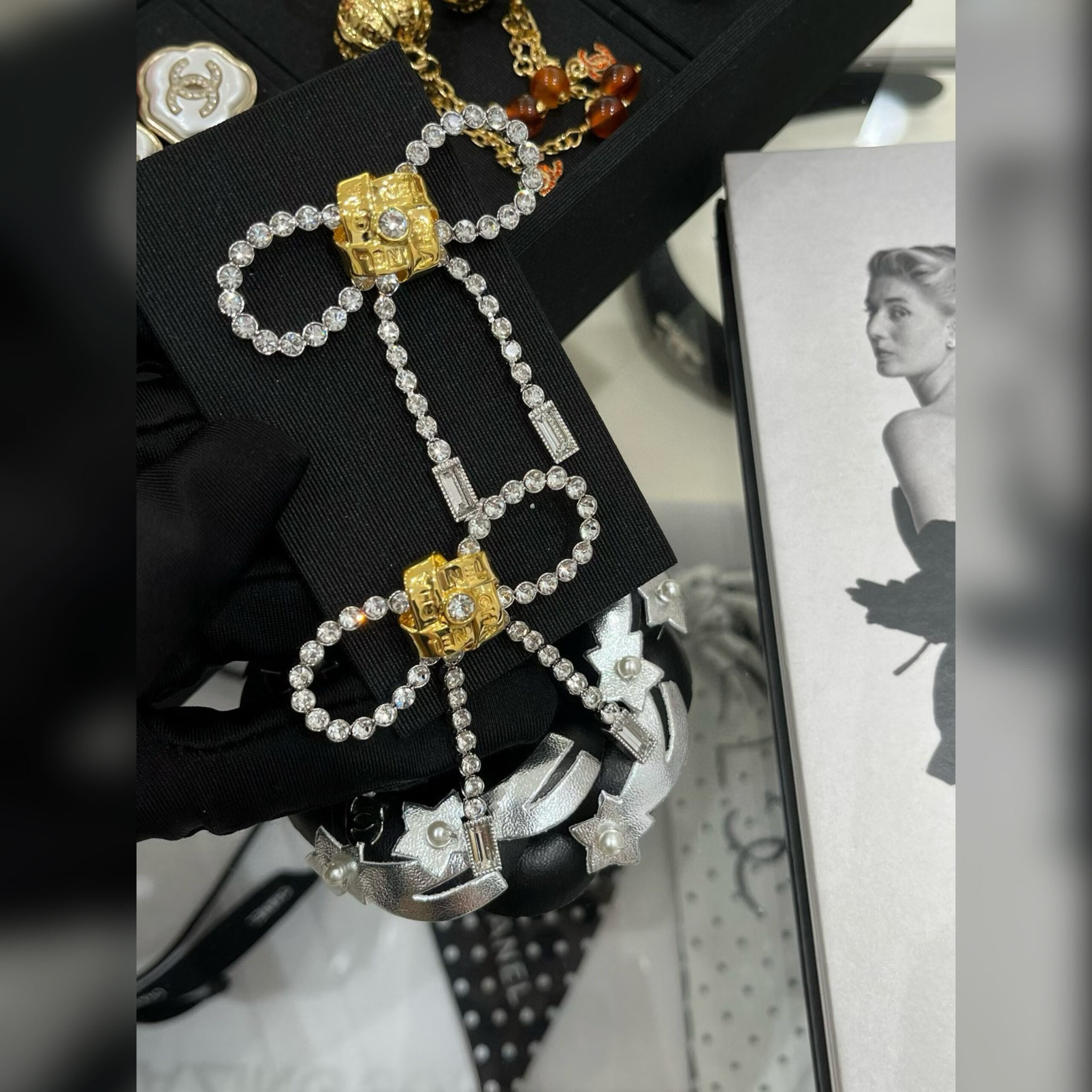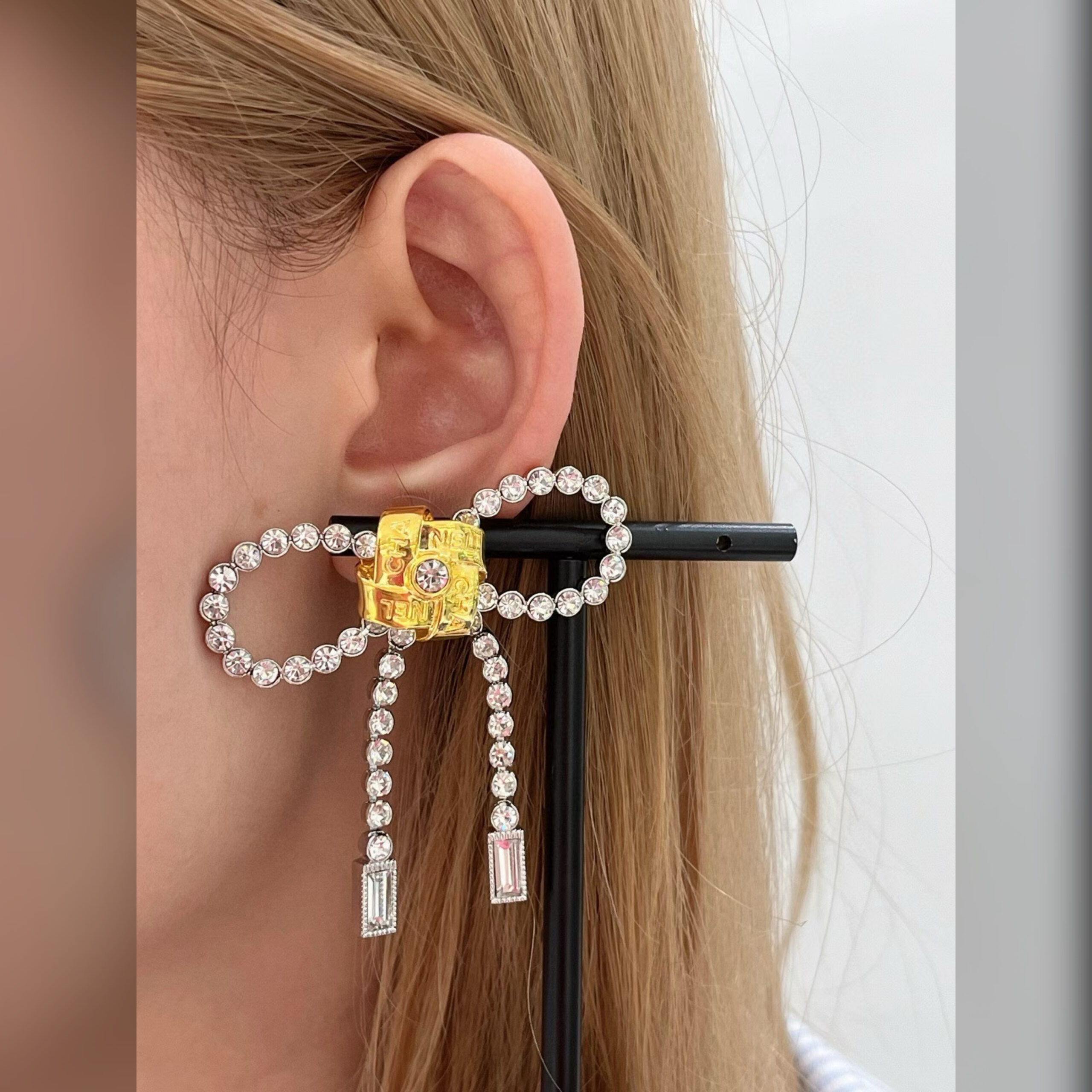 Серьги, стилизованные под банты из узкой ленты, изготовили из тщательно отполированного ювелирного сплава с покрытием, не темнеющим со временем. Модель инкрустировали небольшими полупрозрачными кристаллами, эффектно мерцающими в лучах света.