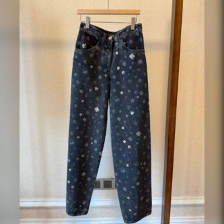 Брюки из такой ткани, украшенной контрастным фирменным паттерном, идеально садятся по фигуре и не сковывают движения.