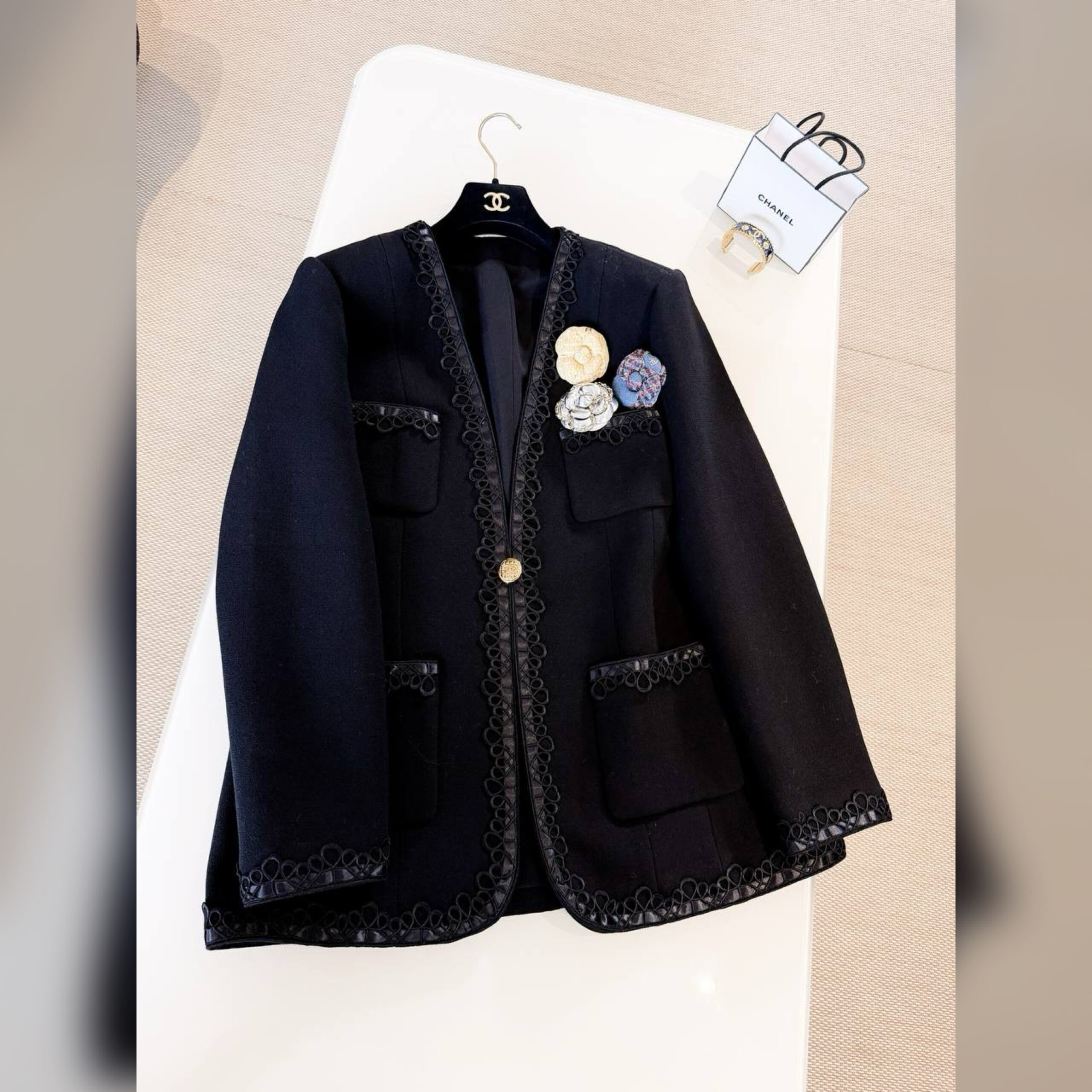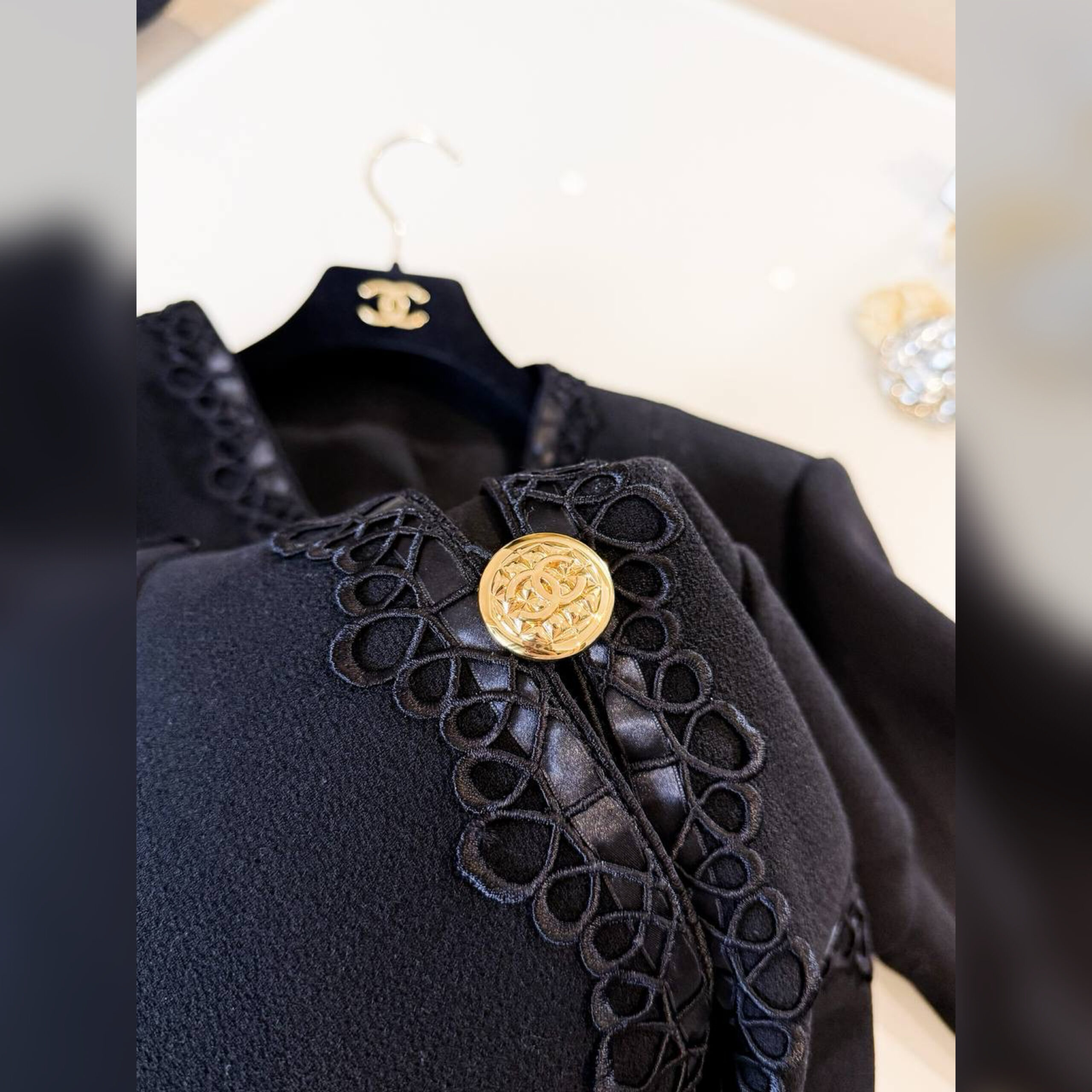 Дизайнеры марки уравновесили маскулинность дизайна изящной вышивкой, выполненной поверх атласных лент, создающих выразительный контраст.
