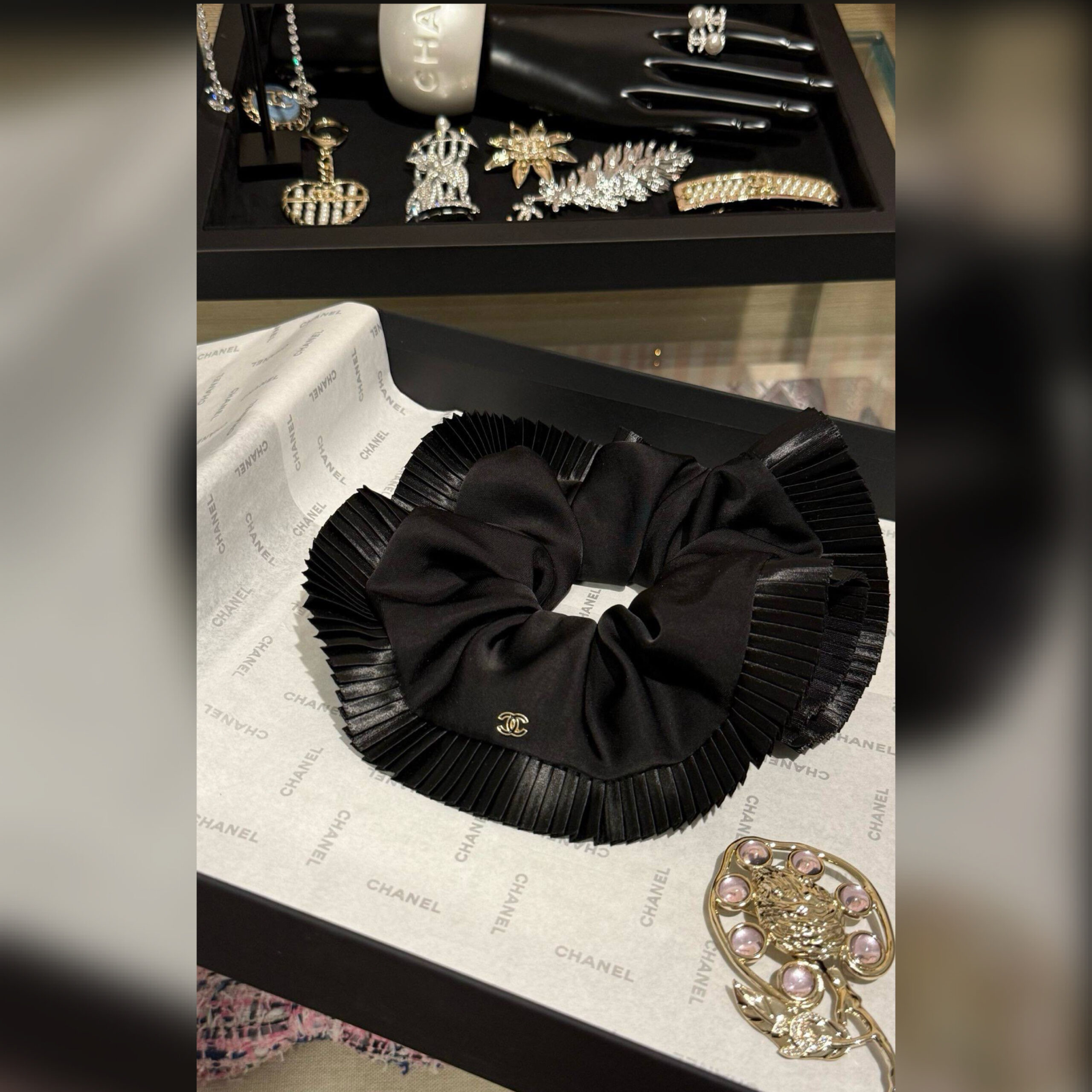 Изысканный аксессуар, выполнен из натурального шелка, и подчеркнут плиссировкой по краю и миниатюрной монограммой, заявляющей о принадлежности к бренду.