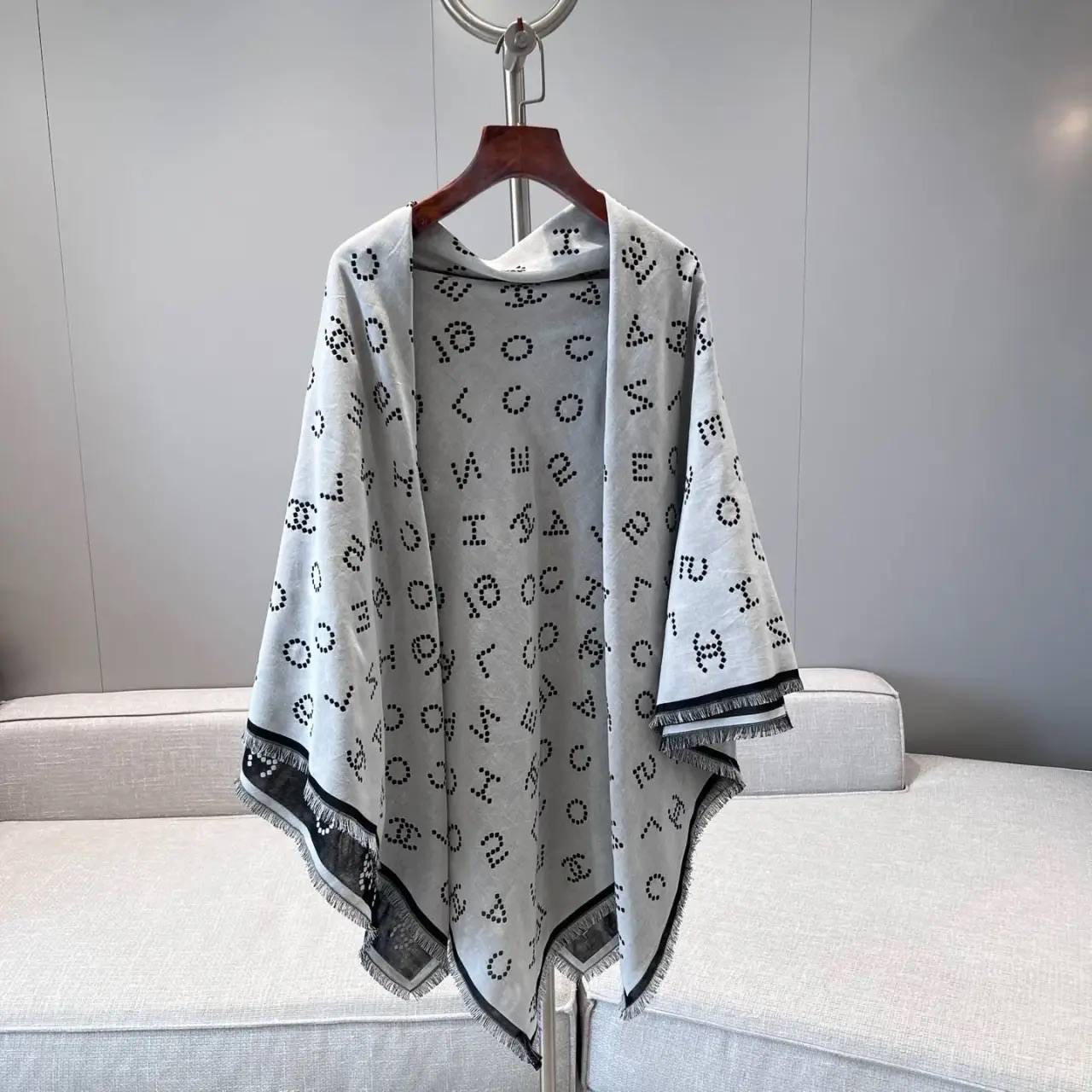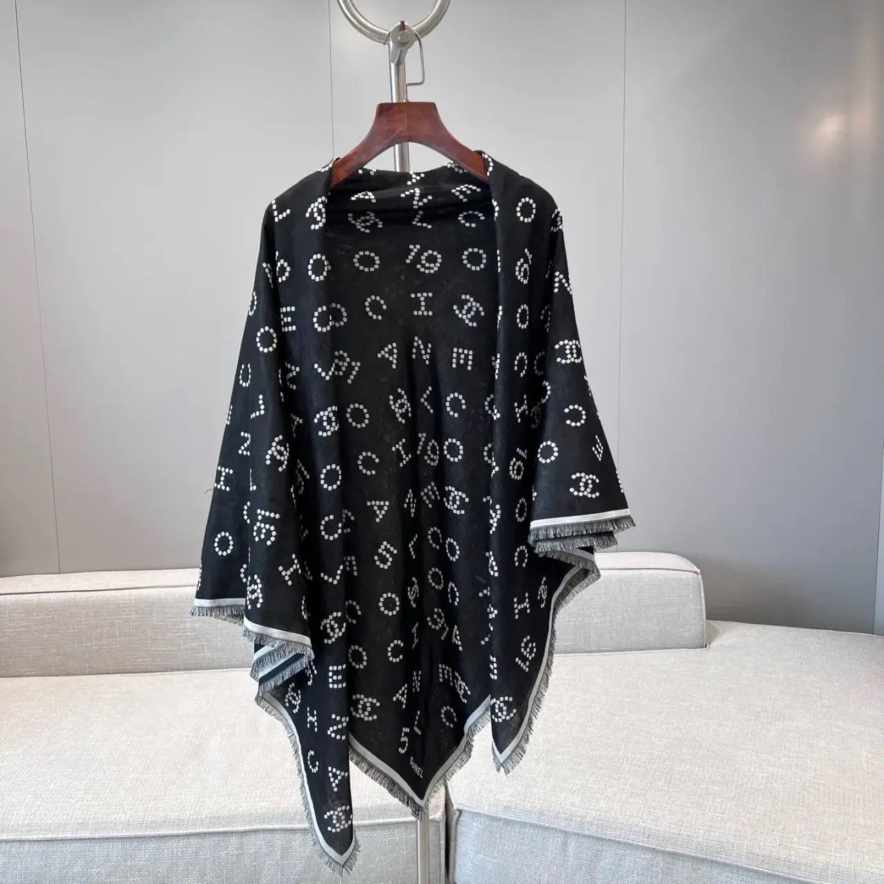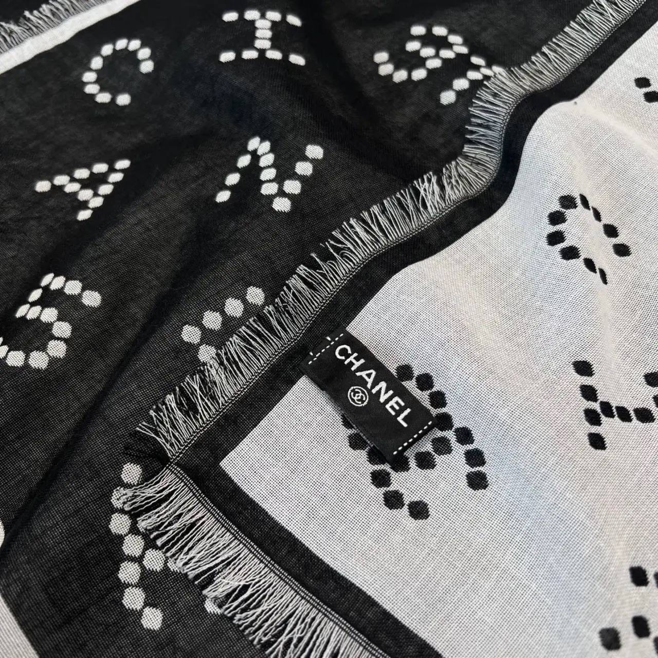 Палантин с контрастной кромкой по краю согреет в капризную погоду межсезонья.