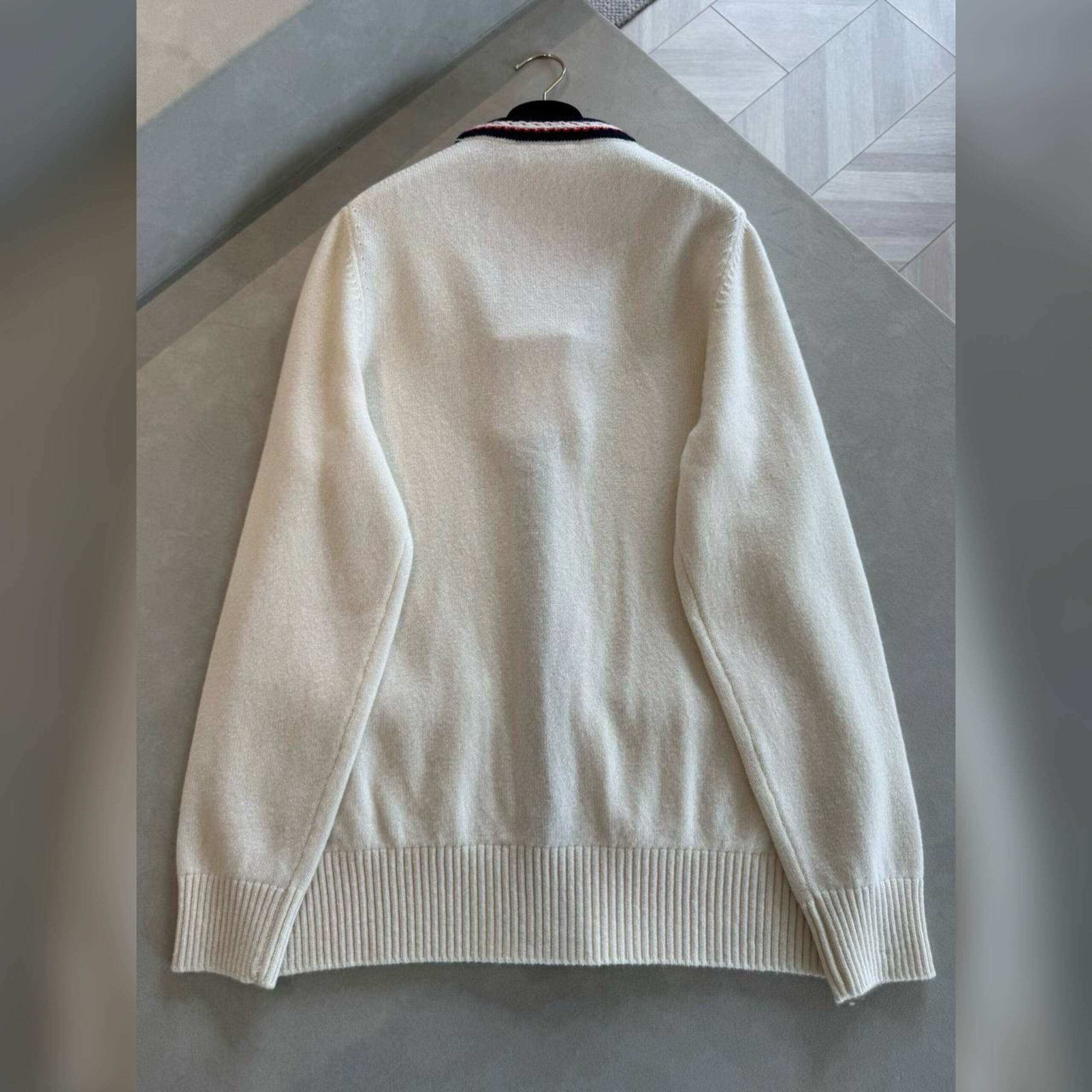 Кардиган сочетает комфорт и лаконичный внешний вид, что позволяет ему стать базовым предметом гардероба. Дизайнеры марки воплотили модель в нежной кашемировой пряже молочного оттенка, а края подчеркнули контрастными полосами.
