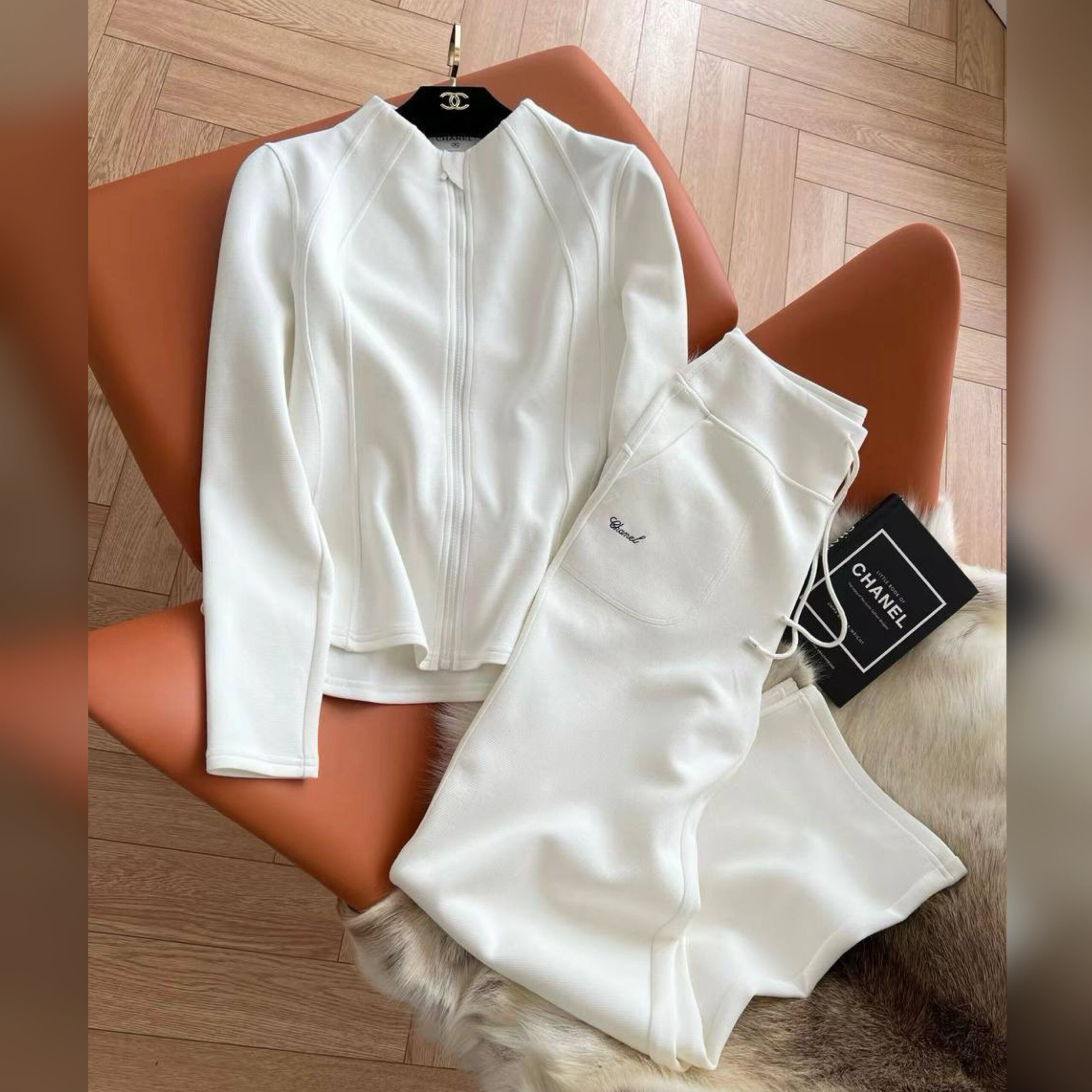 Дизайнеры марки дополнили толстовку застежкой-молнией, а брюки поясом-кулиской и карманами.