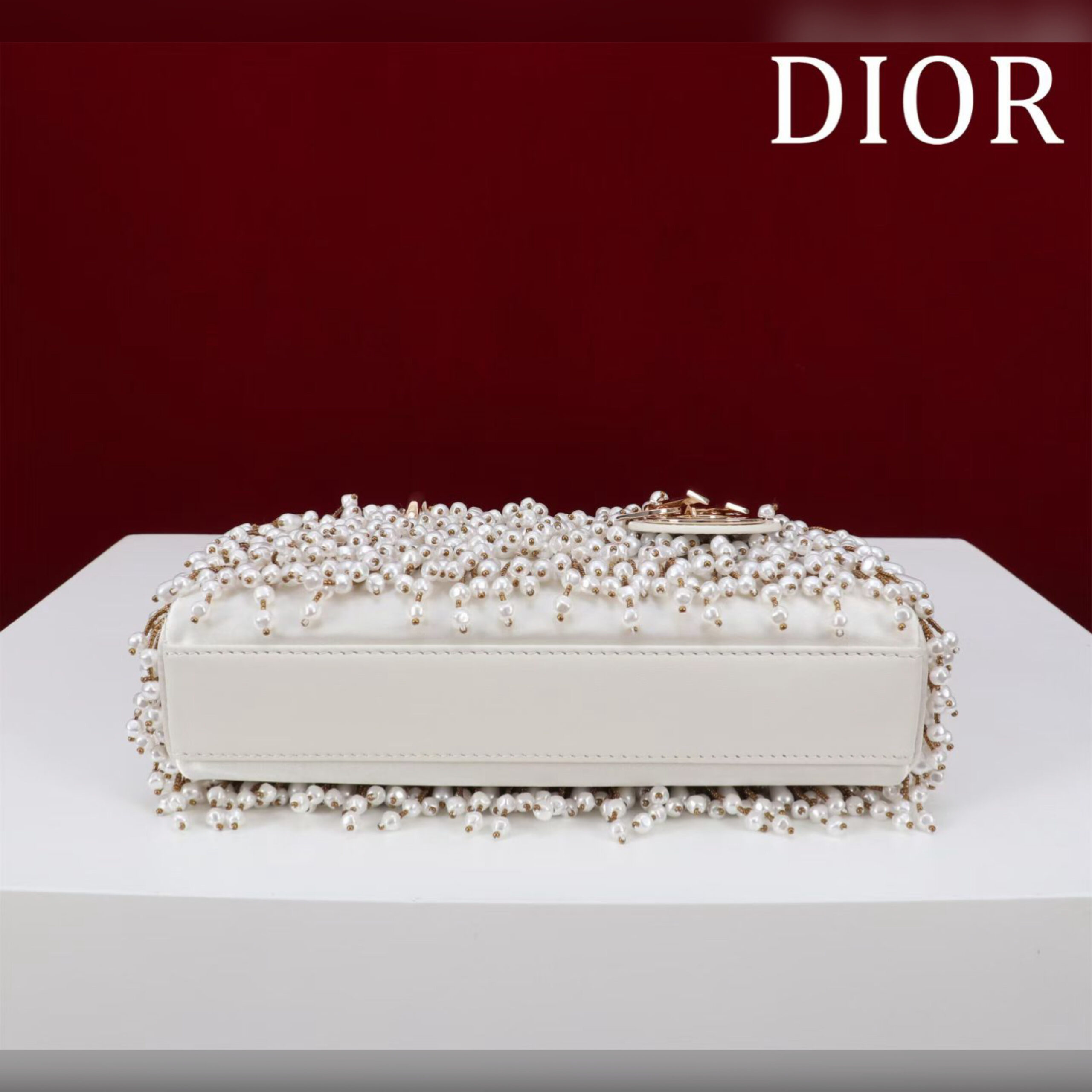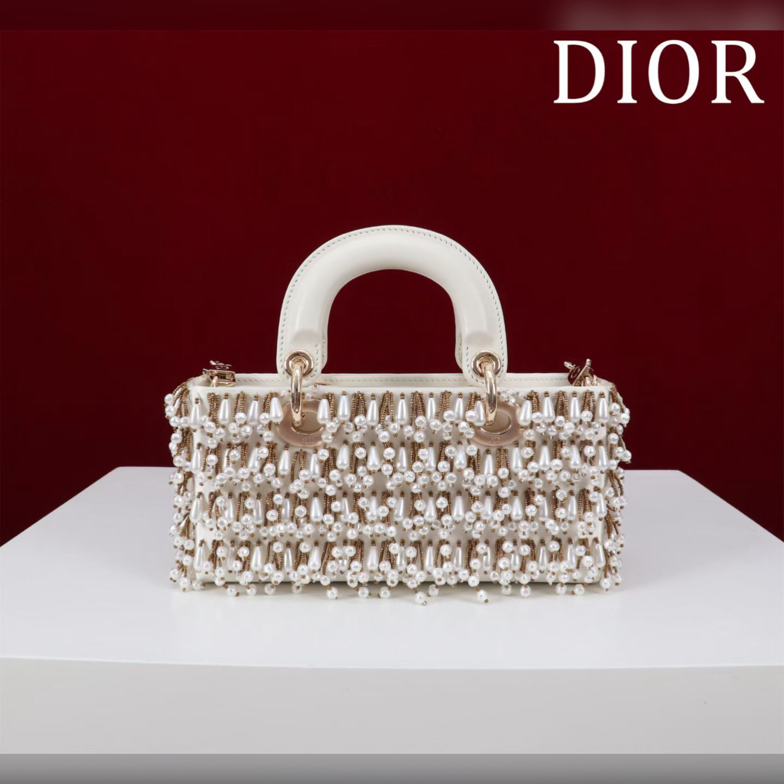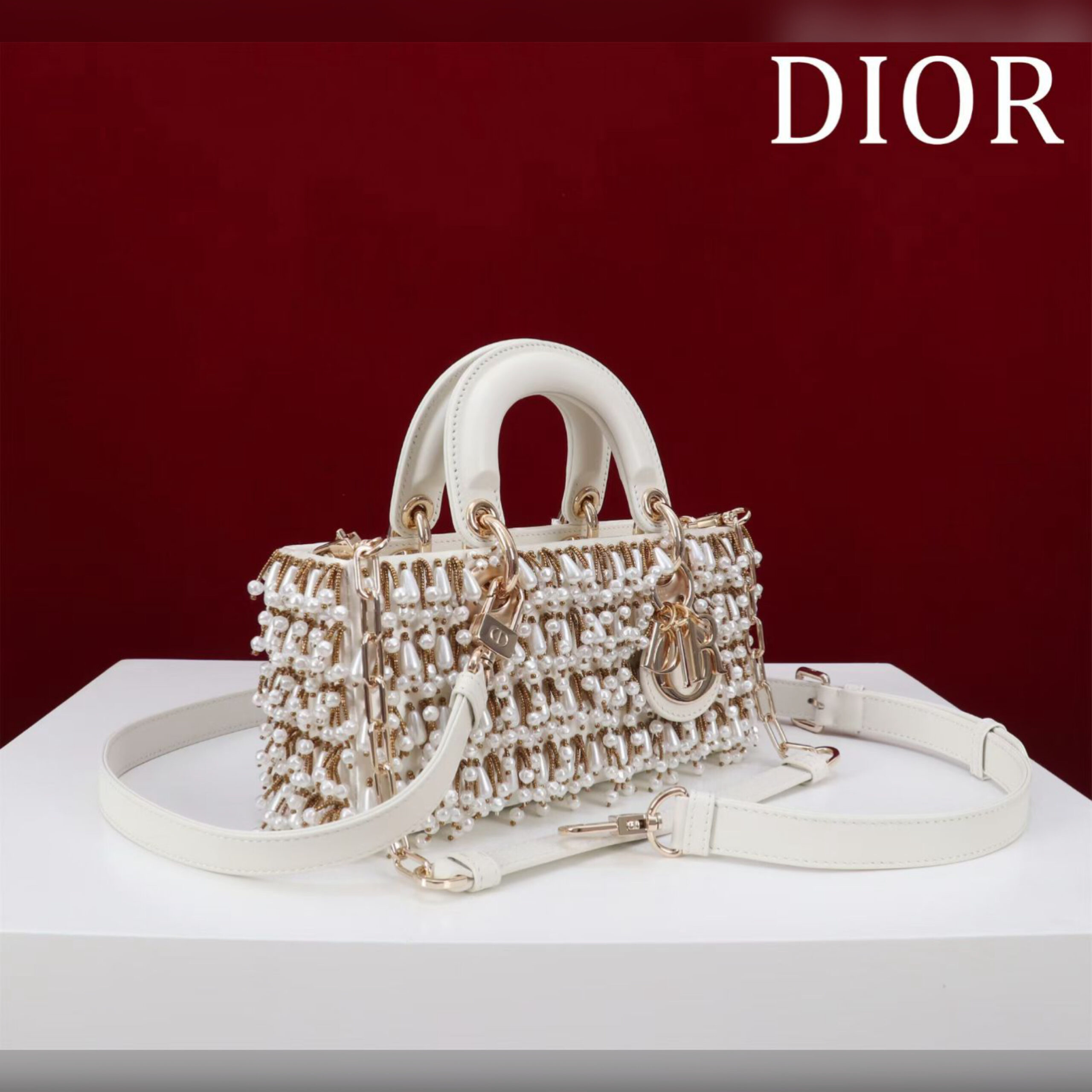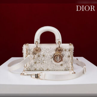 Сумка Lady D-Joy воплощает в себе представления модного дома об утонченности и красоте. Элегантный классический аксессуар из телячьей кожи, украшенный шармами D.I.O.R. из металла, усыпан бусинами разных форм и размеров, а так же бисером, ярко сияющим в лучах света.
