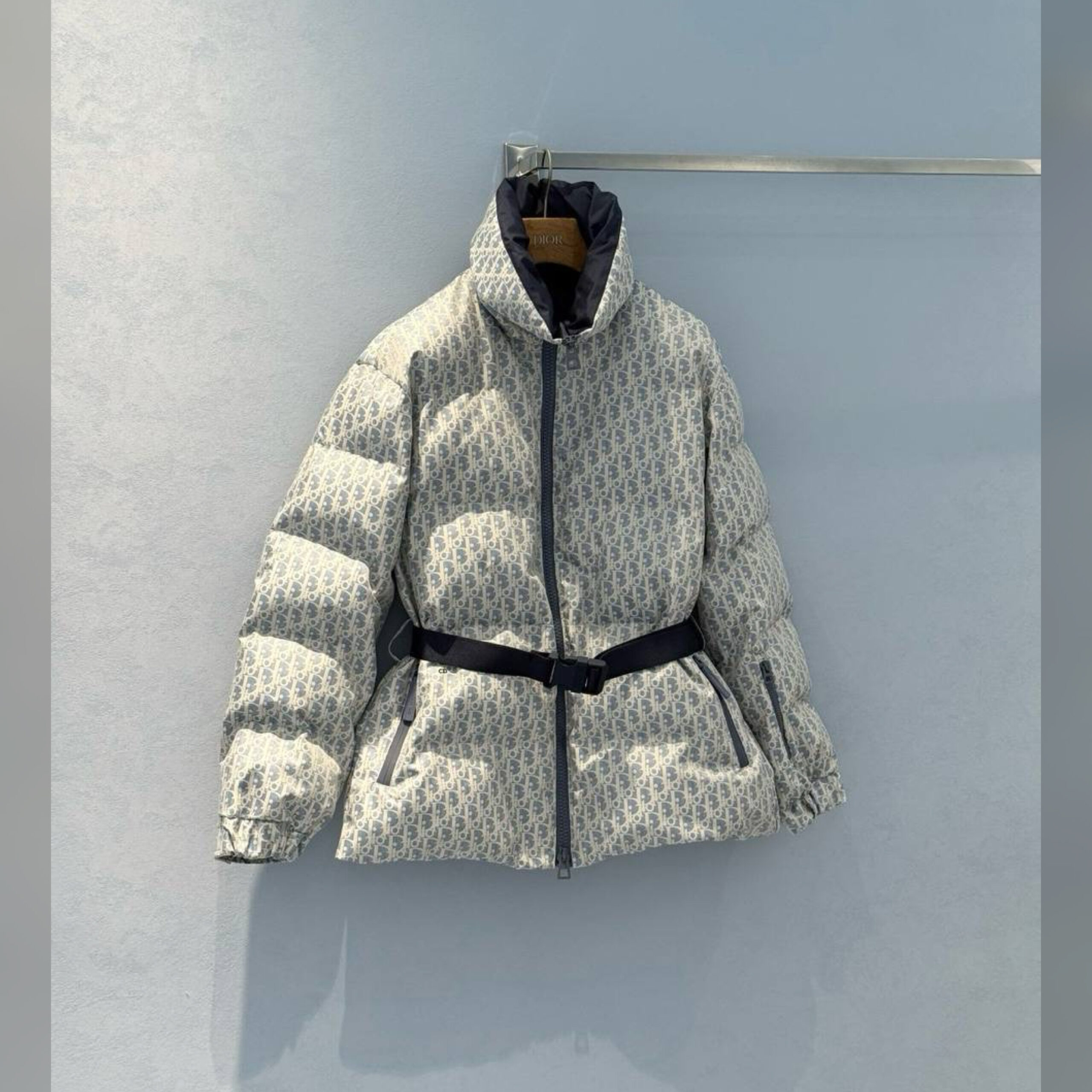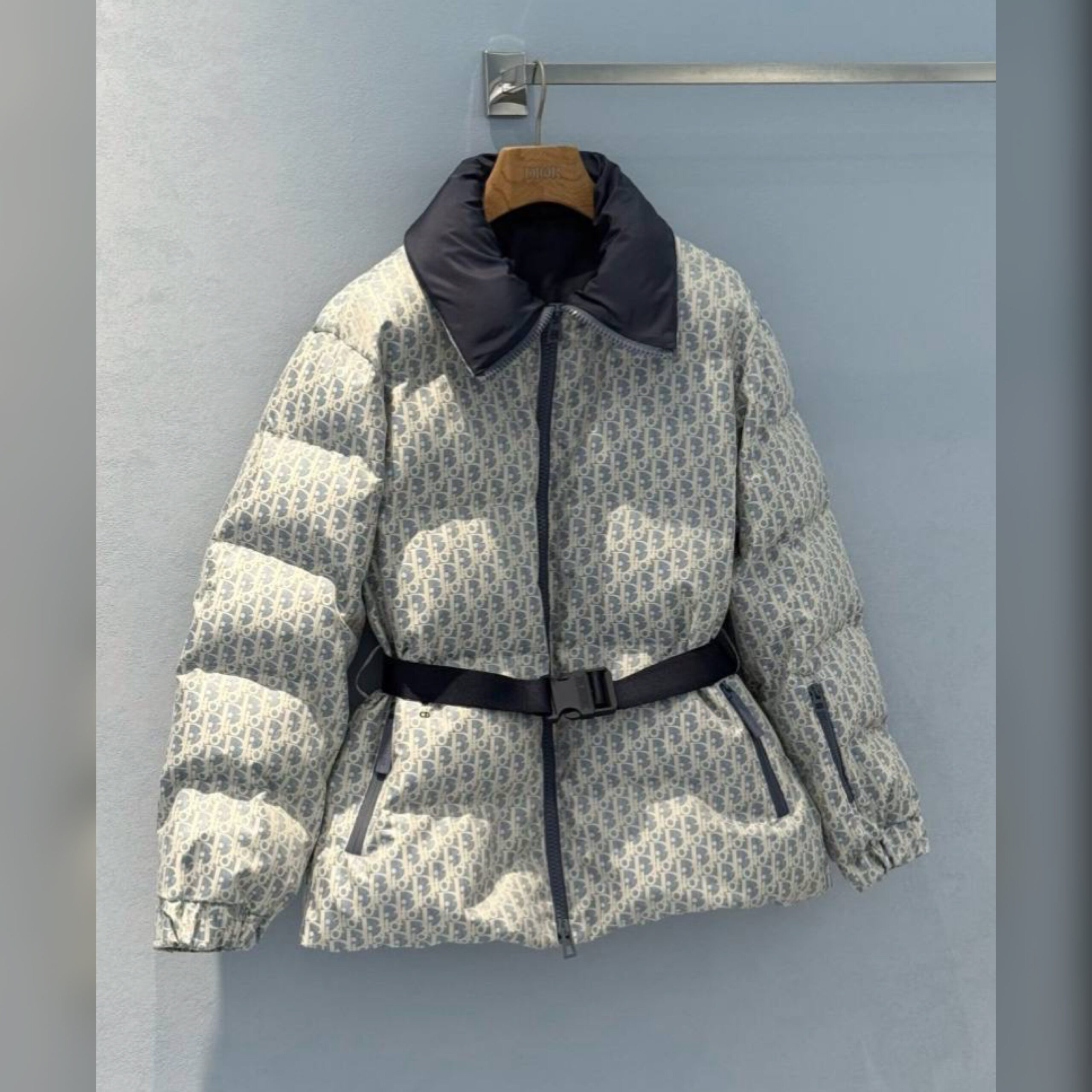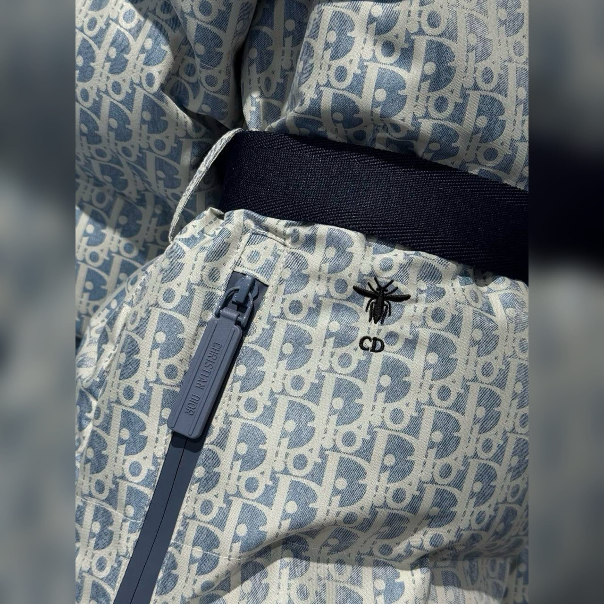Часть капсульной коллекции DiorAlps, пуховик демонстрирует культовый мотив Dior Oblique. Изготовленная из стеганой технической тафты модель дополнена высоким воротником-стойкой, поясом, подчеркивающим талию, и подписью Christian Dior на спине. Внешние и внутренние карманы помогают держать необходимые мелочи под рукой. Элегантный и практичный пуховик можно носить с другими изделиями из капсулы DiorAlps.