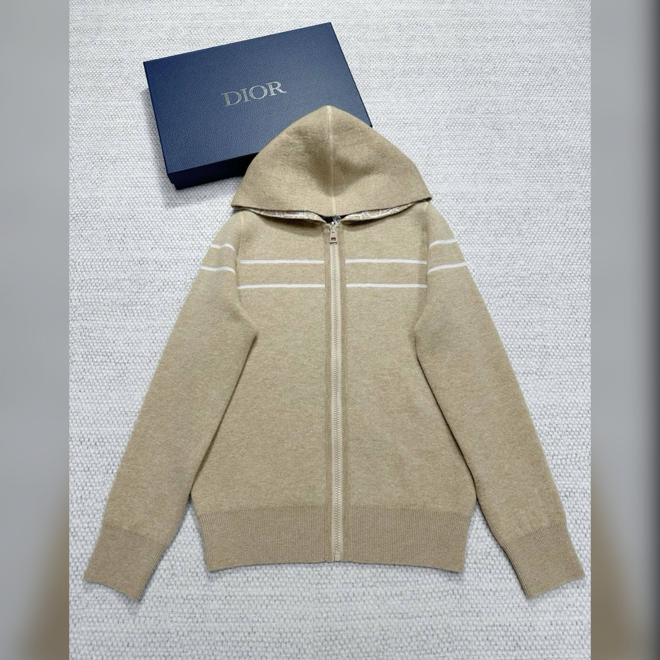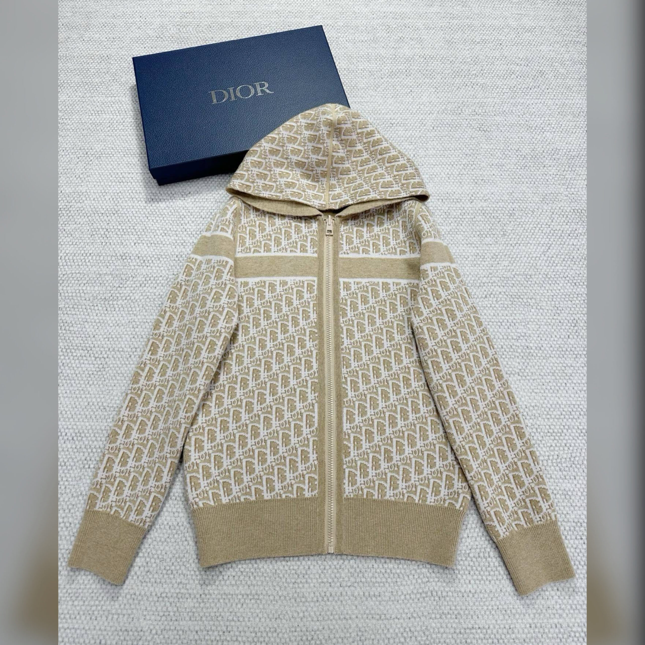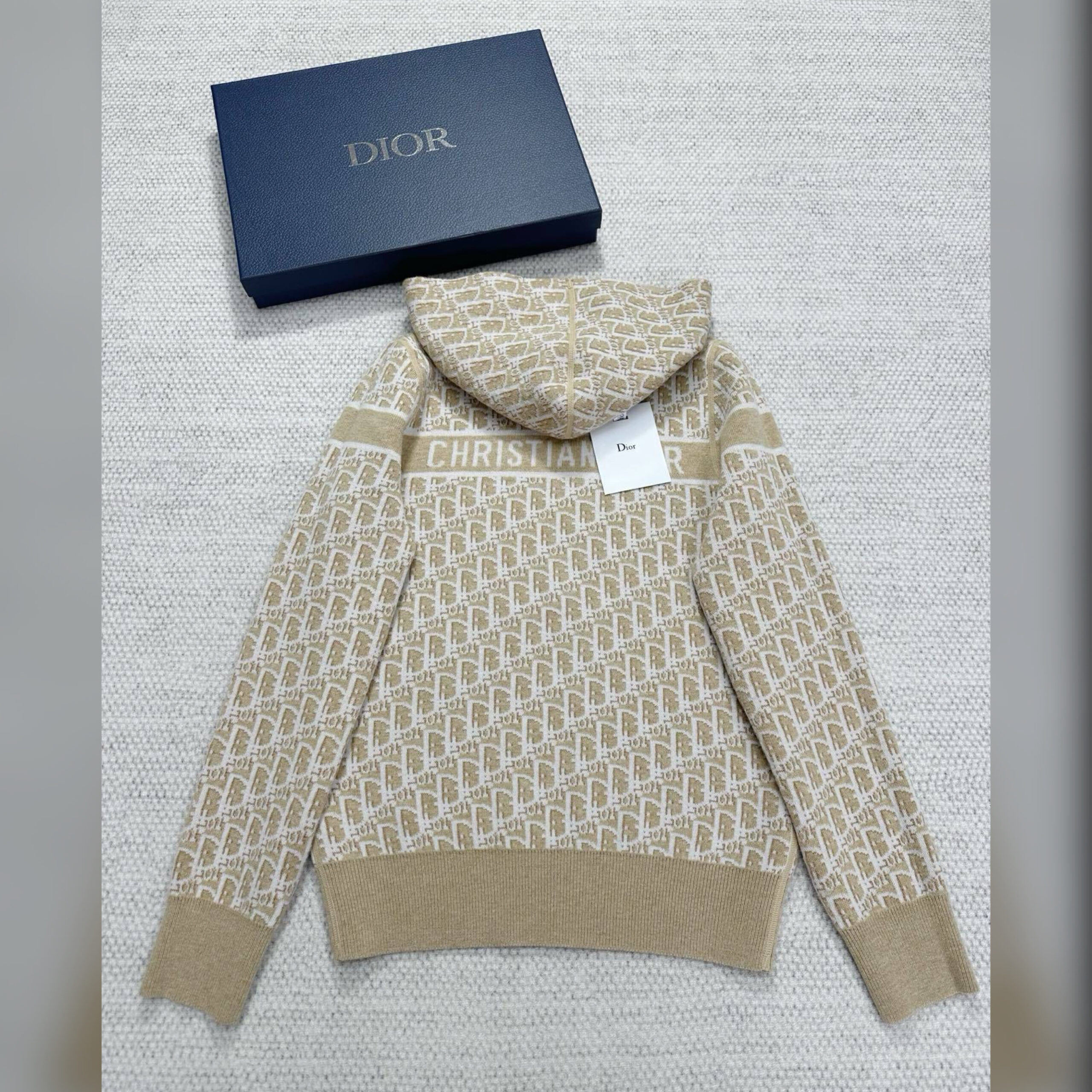 В дизайне кардигана представлен новый взгляд на традиционную эстетику модного дома. Двусторонняя модель выполнена из смесового кашемирового трикотажа: одна сторона однотонная, другая украшена мотивом Dior Oblique. Кардиган, дополненный уютным капюшоном, можно сочетать с другими изделиями Dior Oblique для создания завершенного образа.