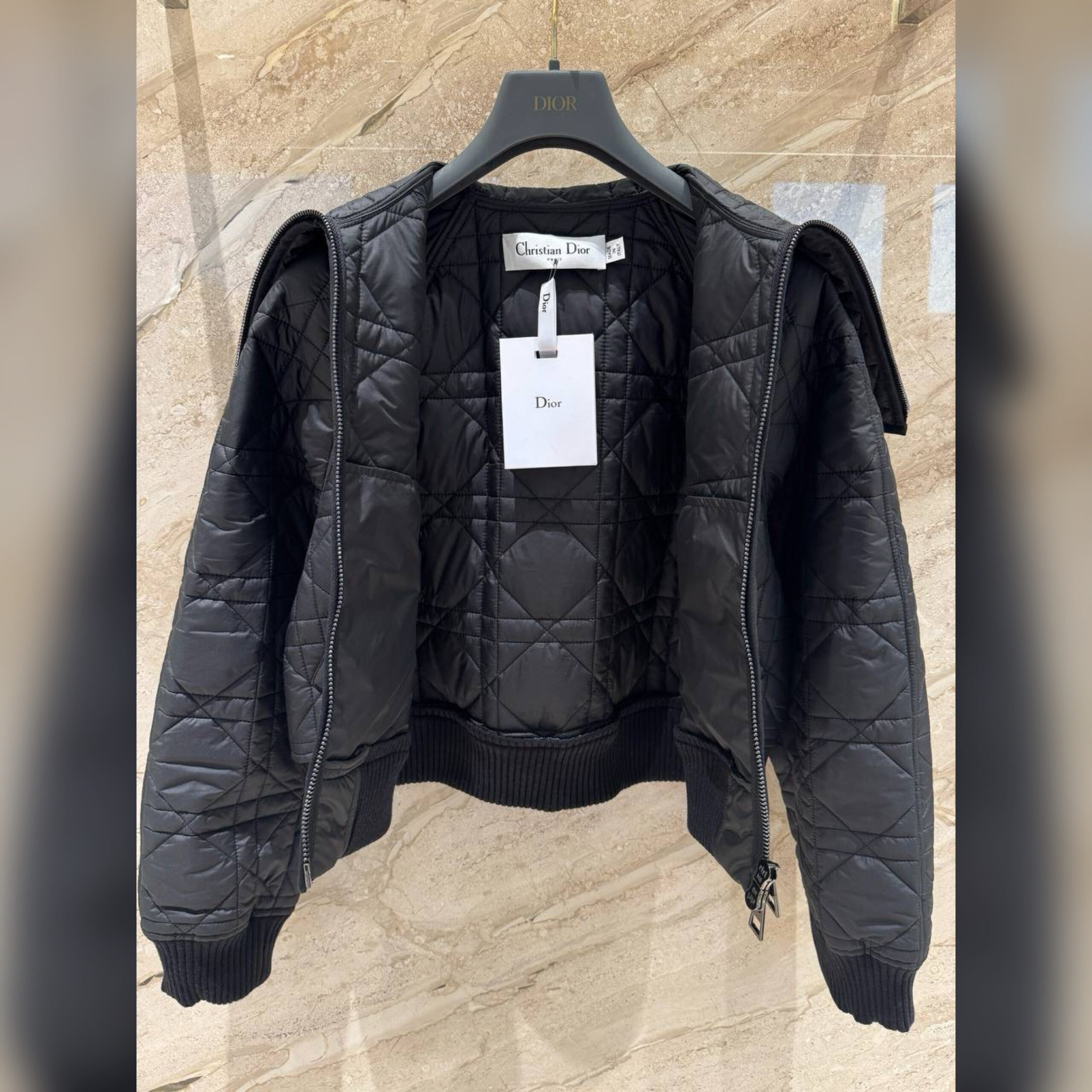 Дизайн куртки из осенне-зимней коллекции отличается фирменным мотивом Cannage в дань уважения наследию модного дома.