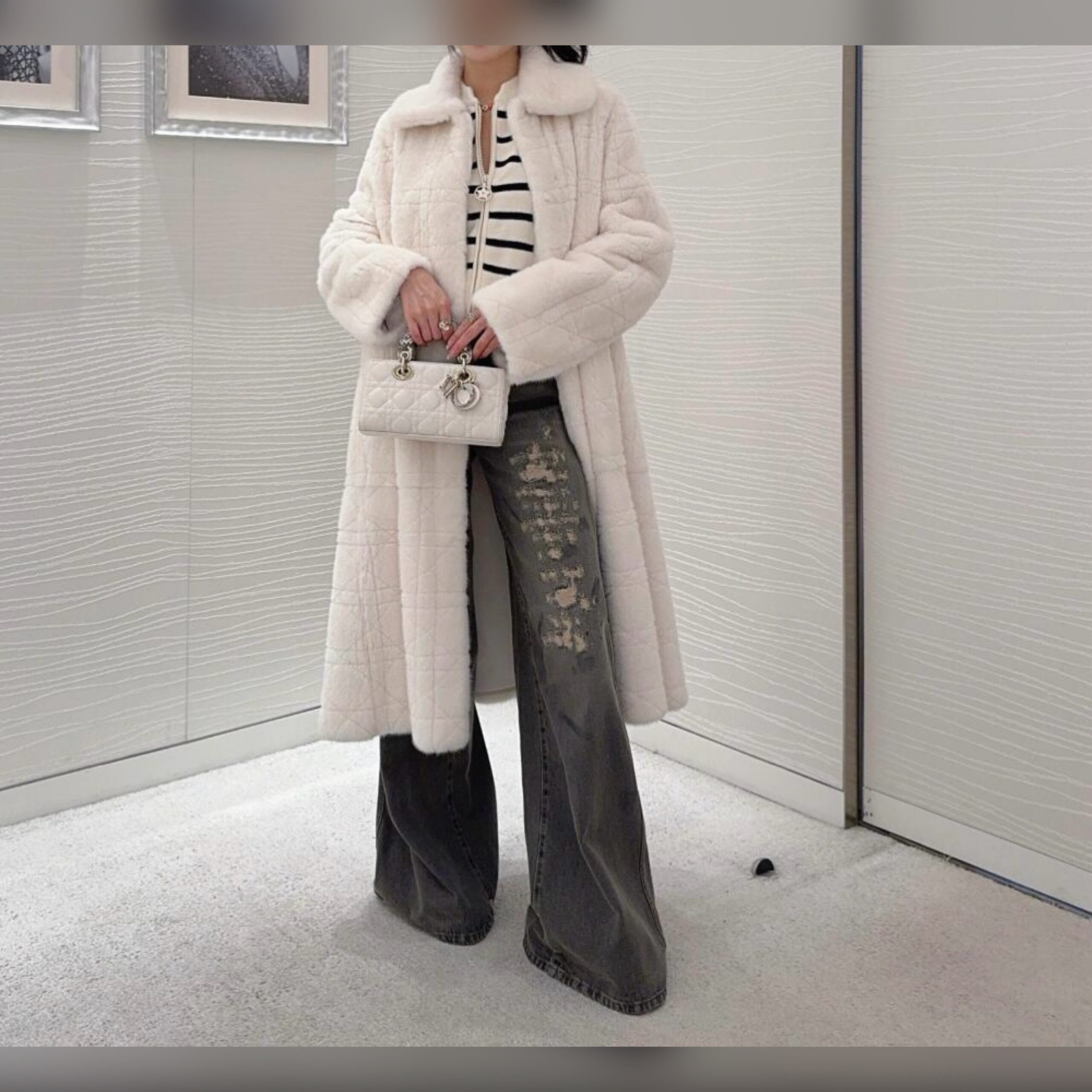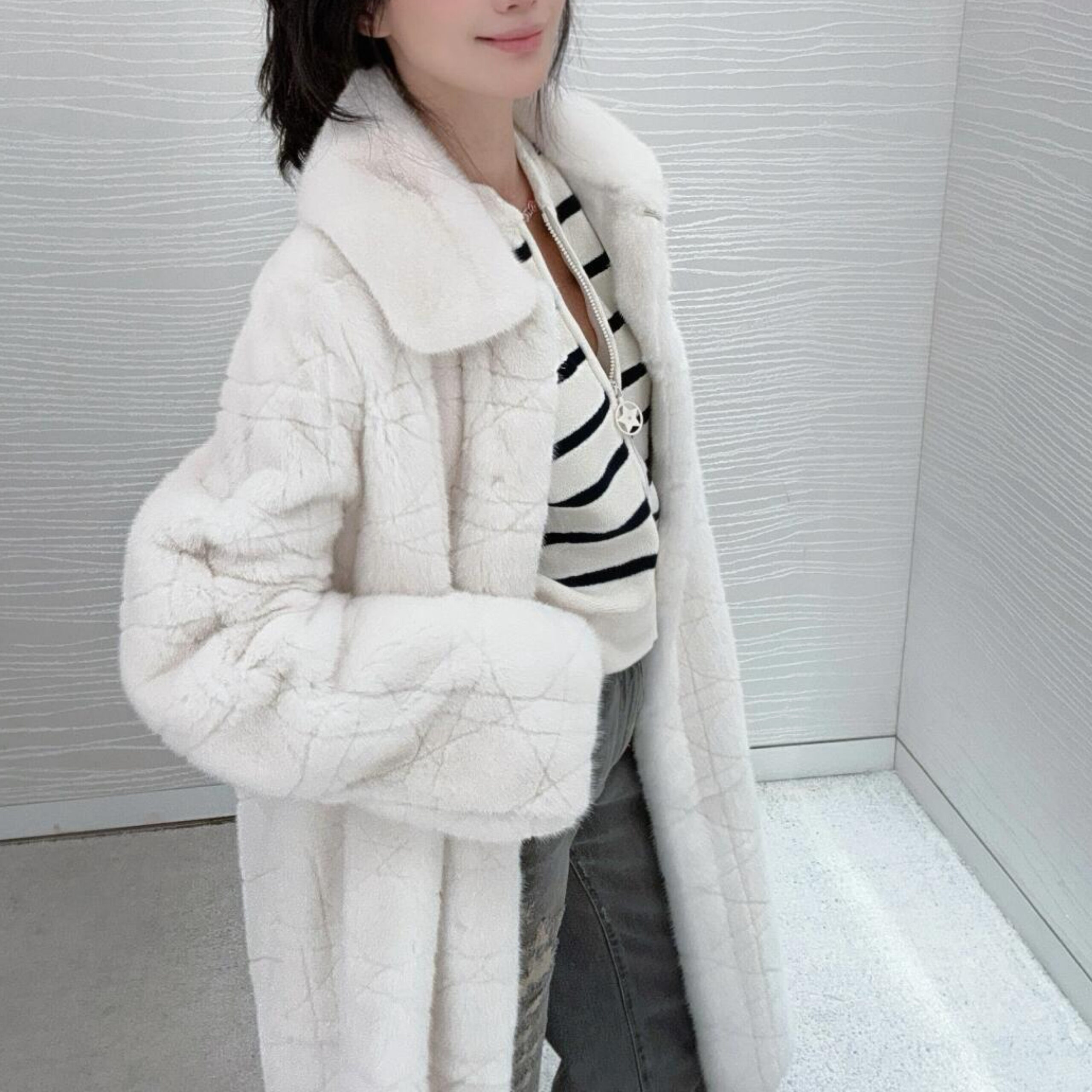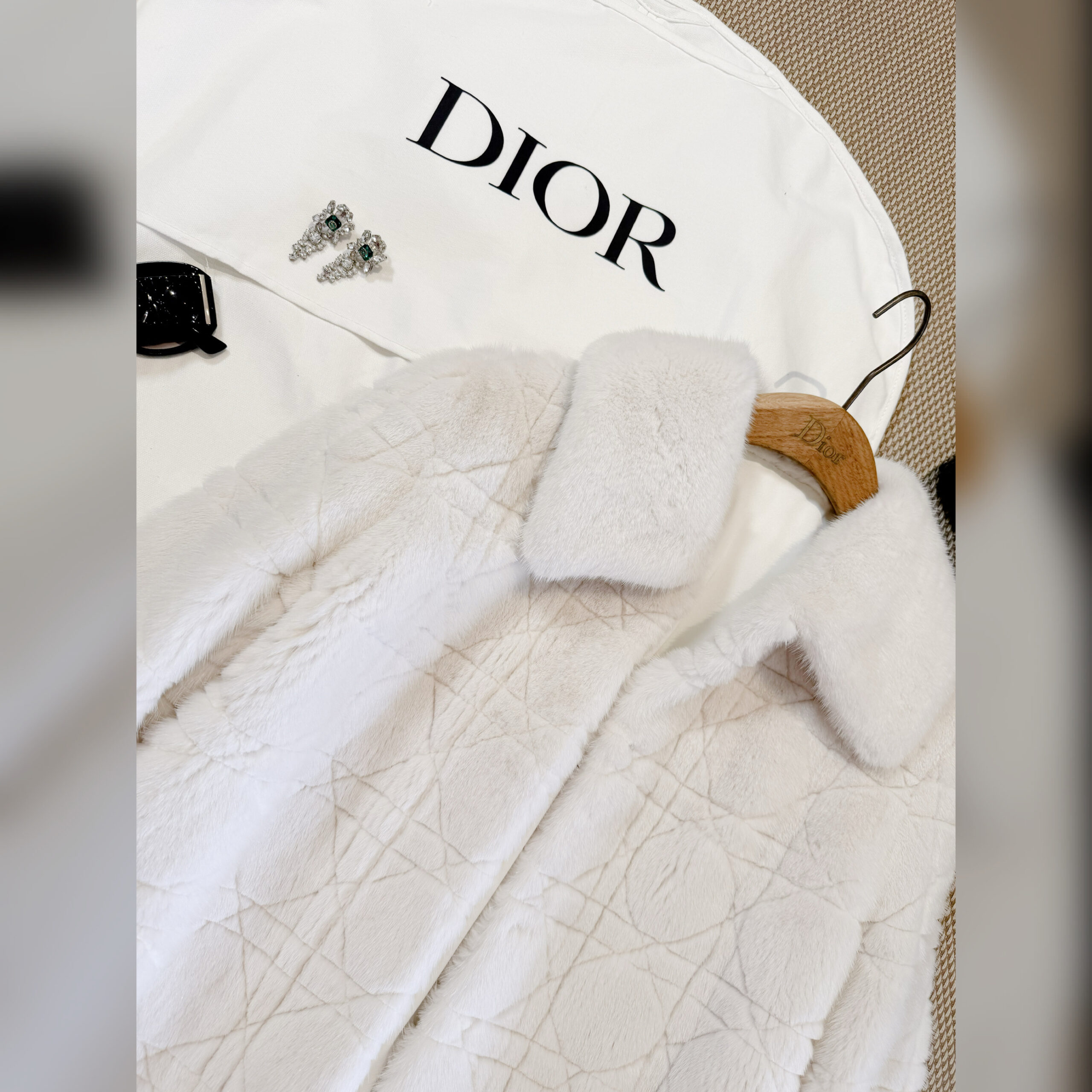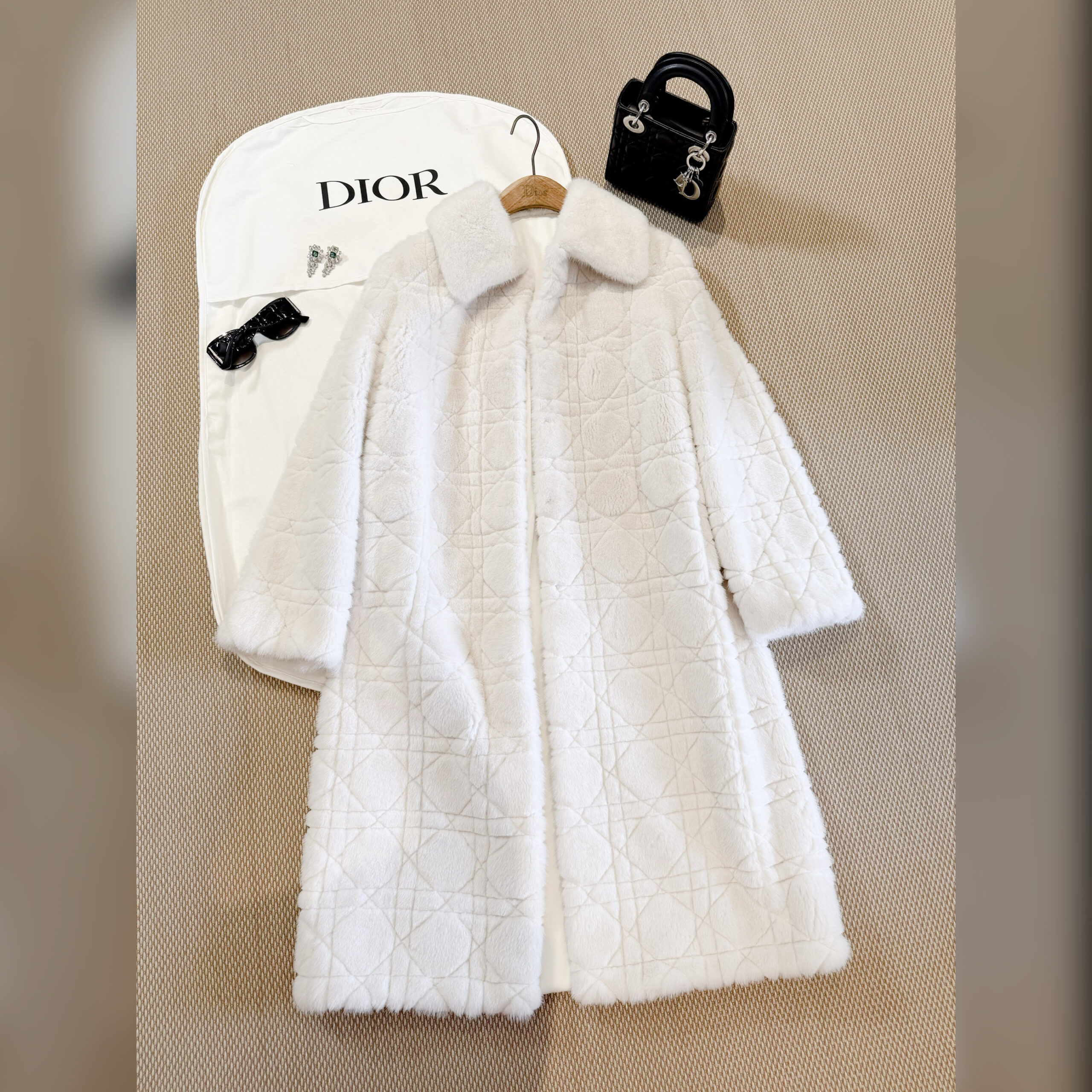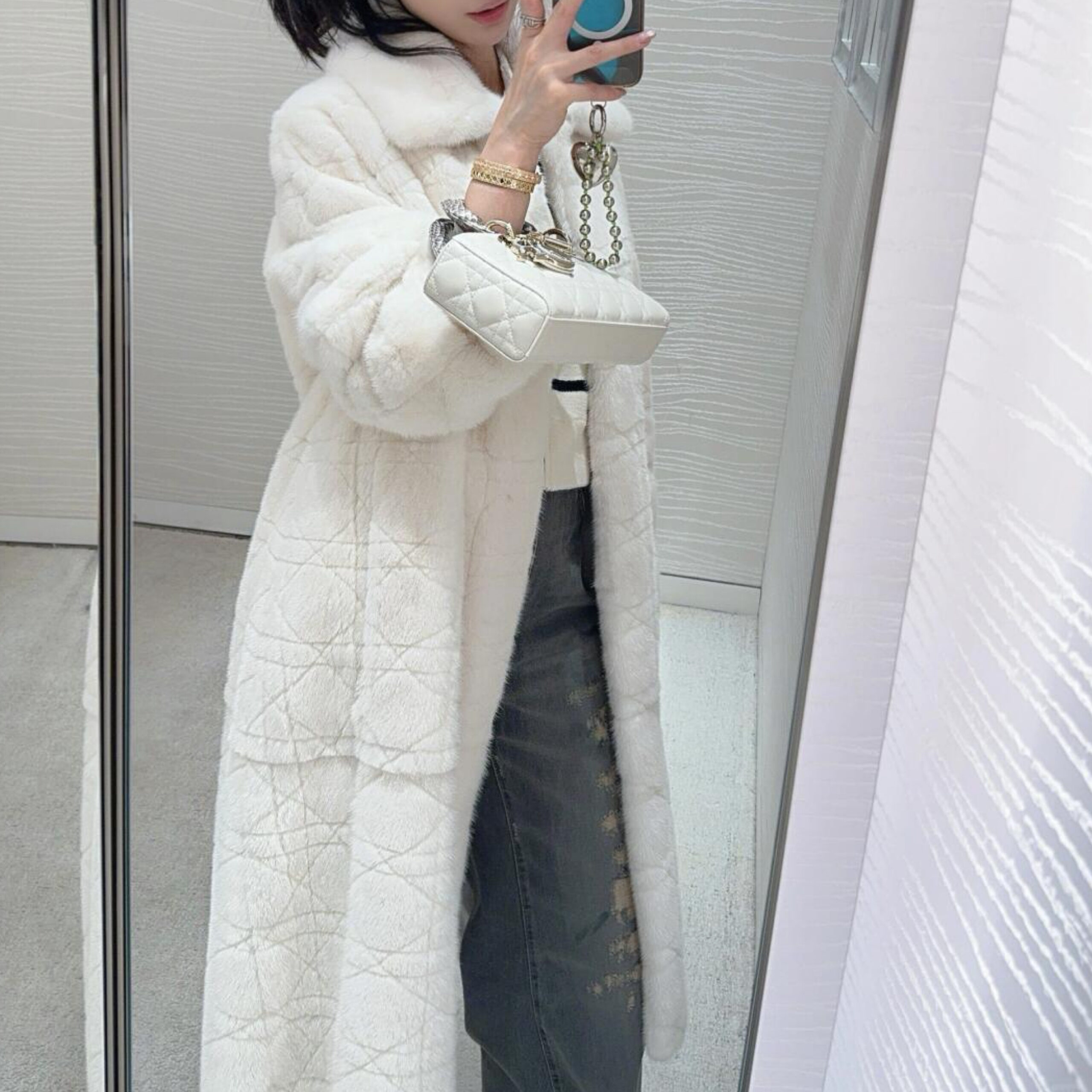 Длинная шуба с широким отложным воротником и двумя врезными карманами сшита из шелковистого меха норки. Модель украшена фирменным мотивом Cannage в дань уважения наследию модного дома.