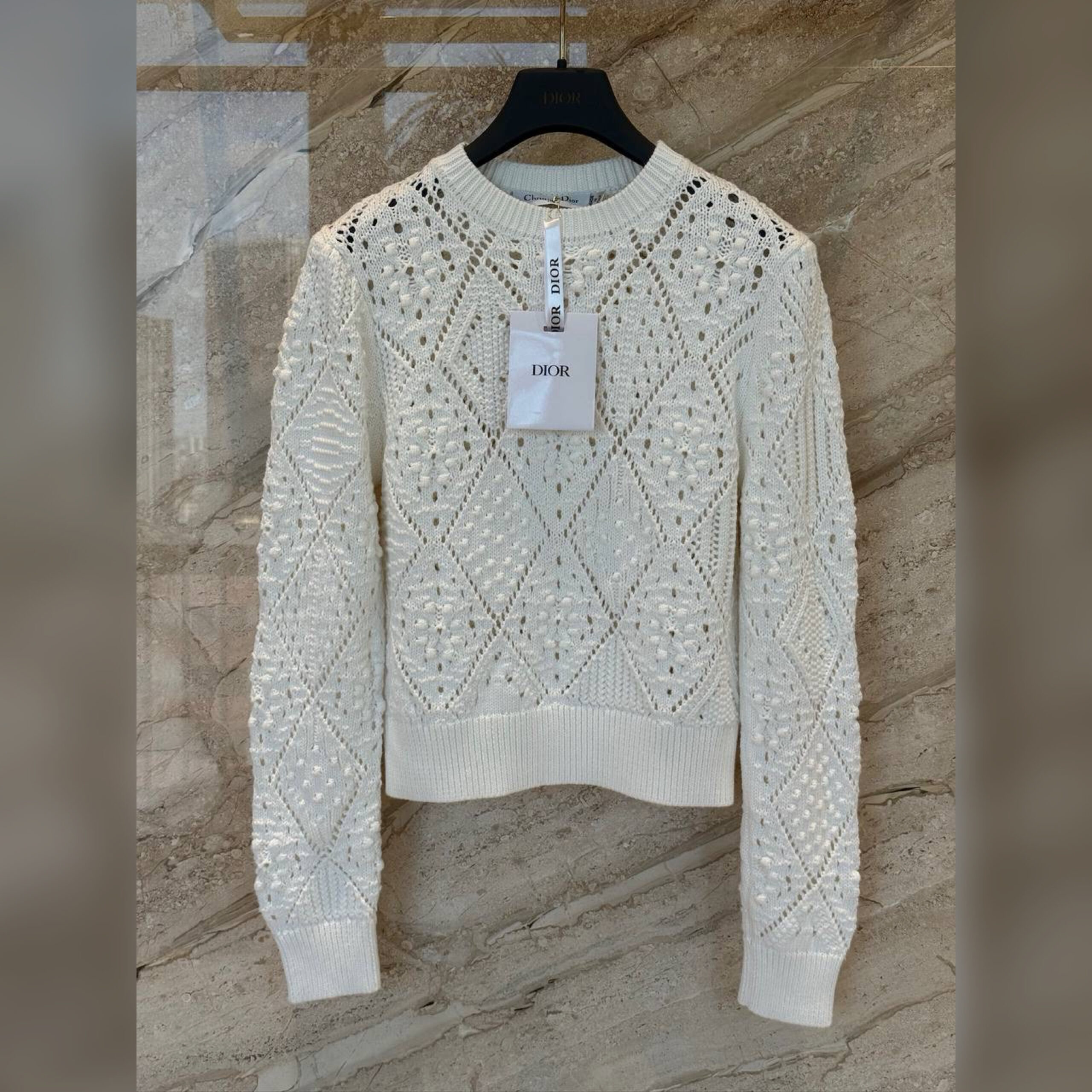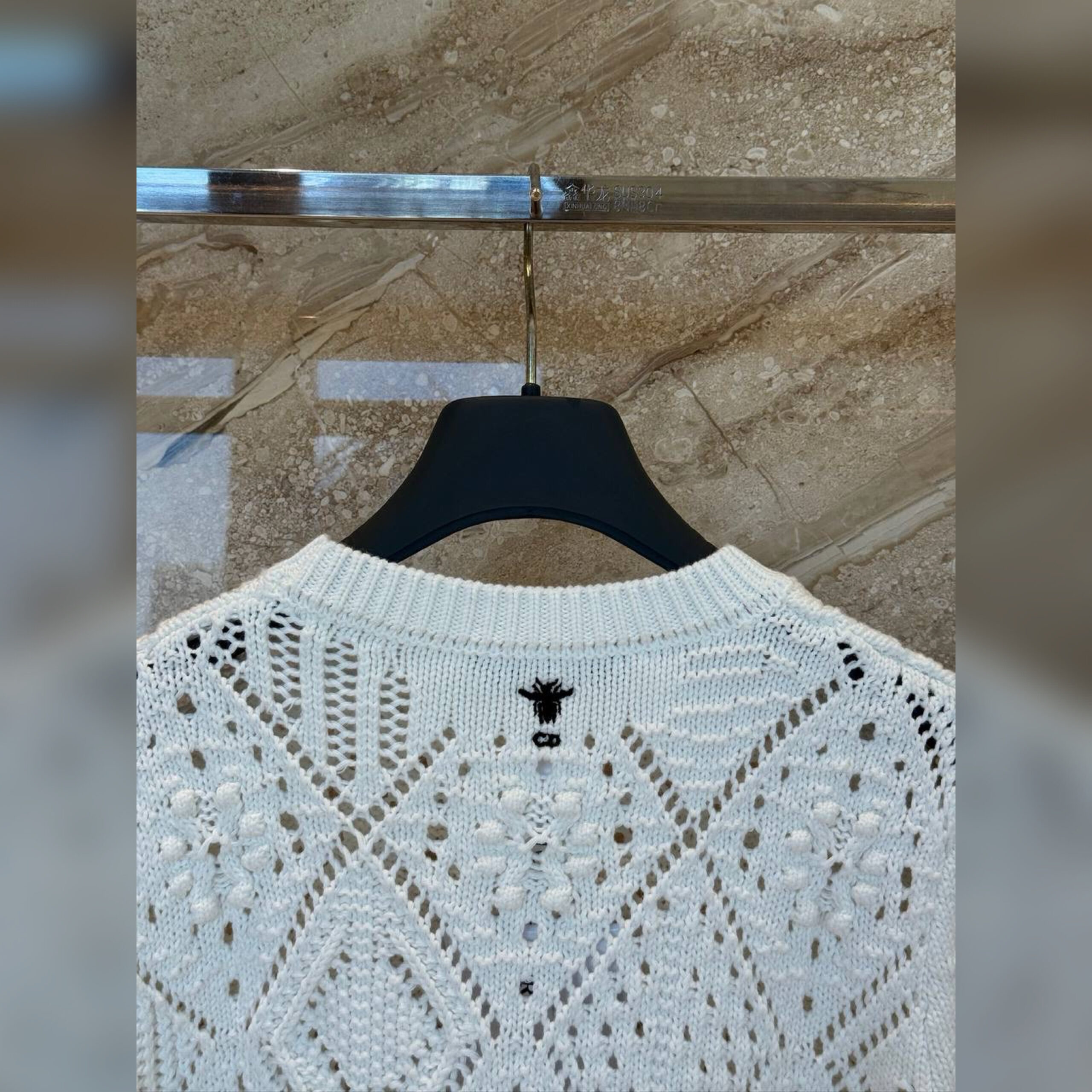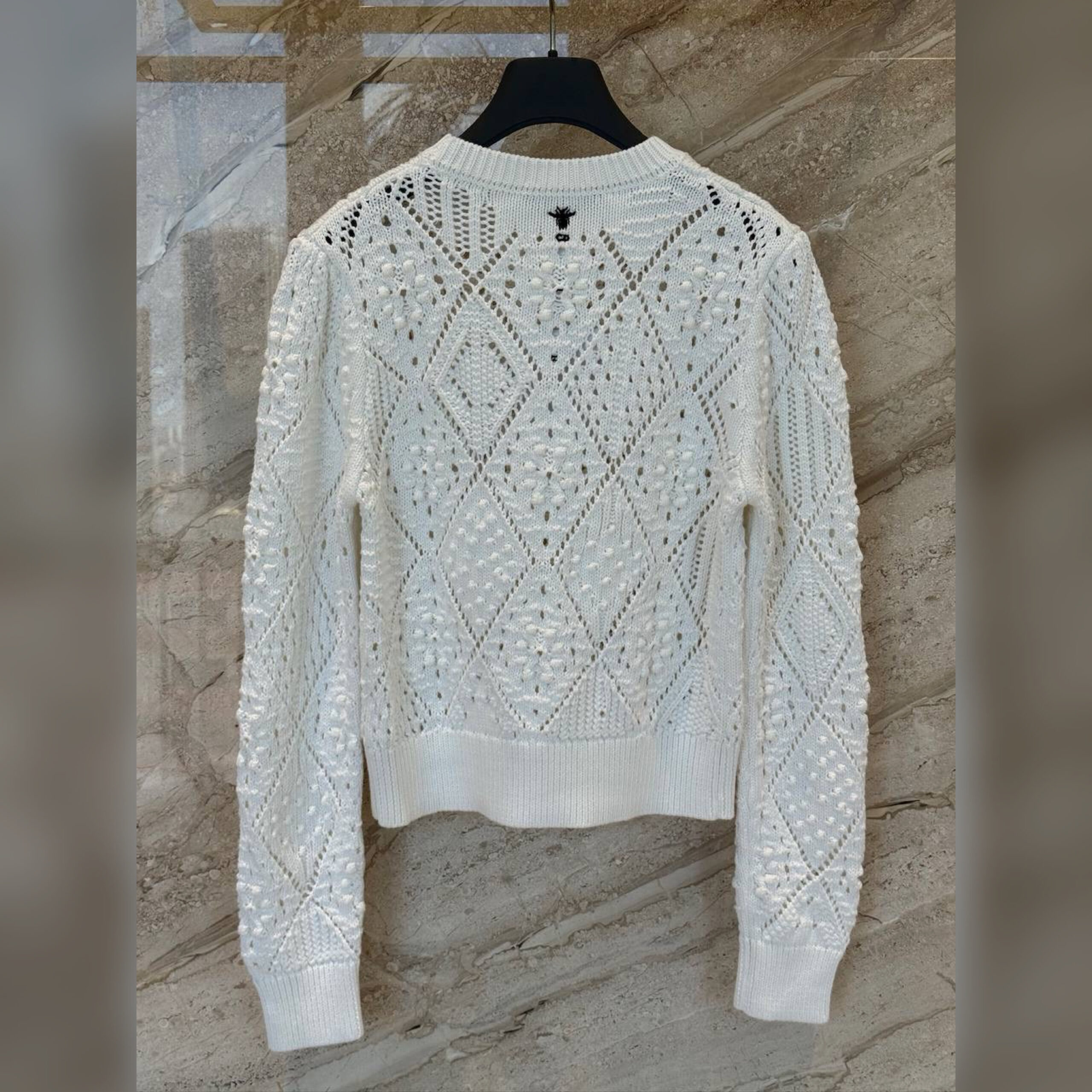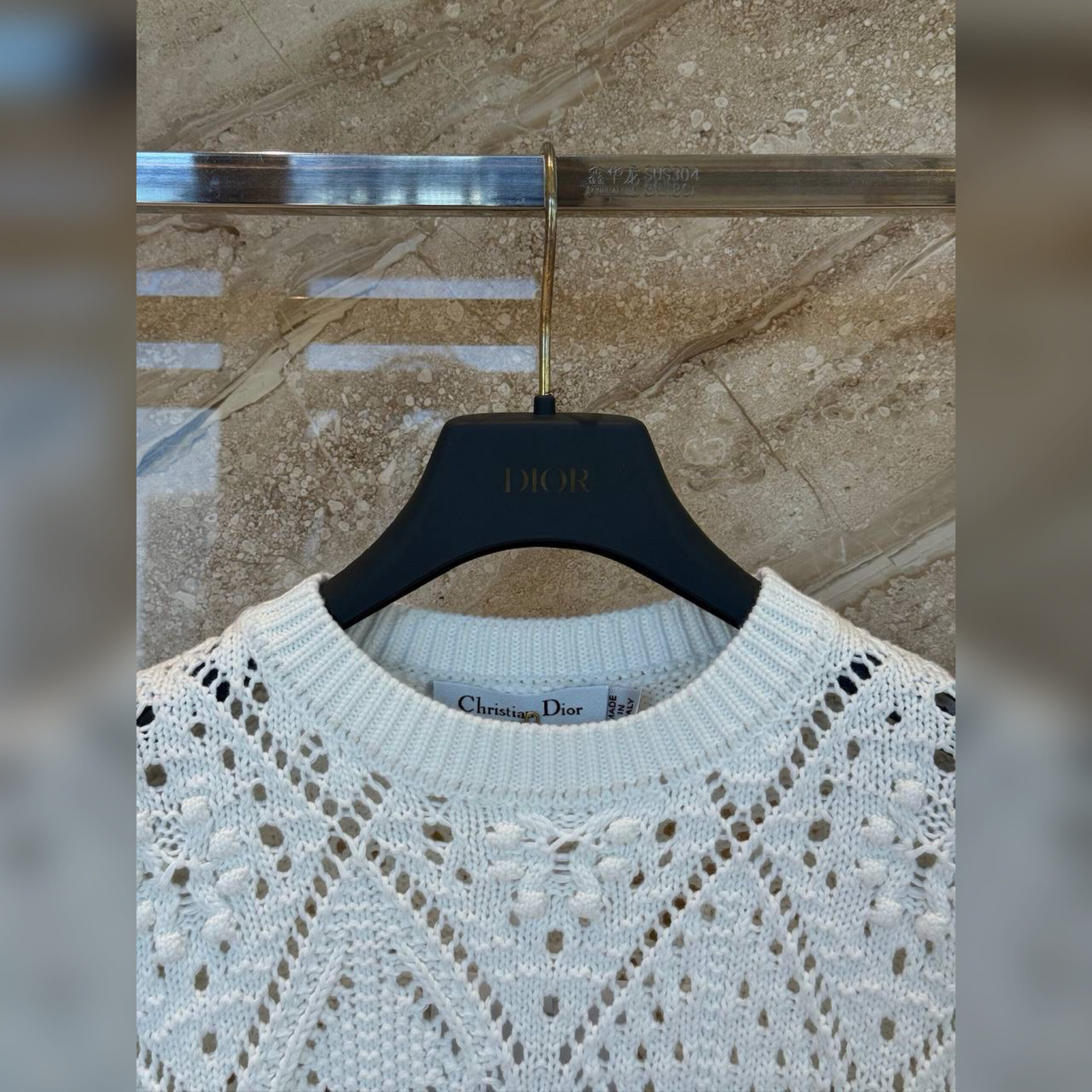 Изделие выполнено из белого ажурного хлопкового трикотажа с эффектом вязания крючком.