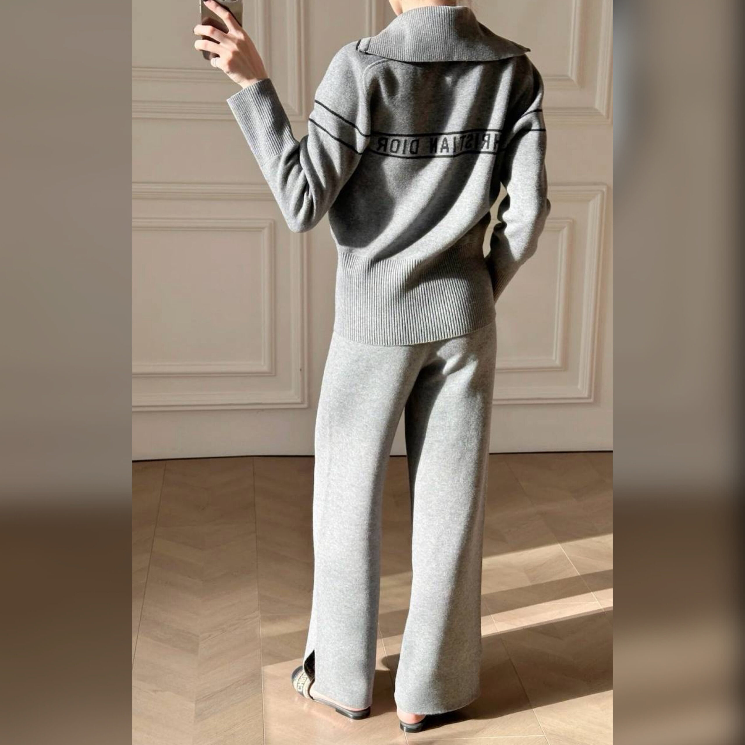 Кардиган с застежкой-молнией спереди дополнен отделкой в рубчик на манжетах, воротнике и по нижнему краю. Брюки свободного силуэта имеют эластичный пояс, обеспечивающий идеальную посадку.
