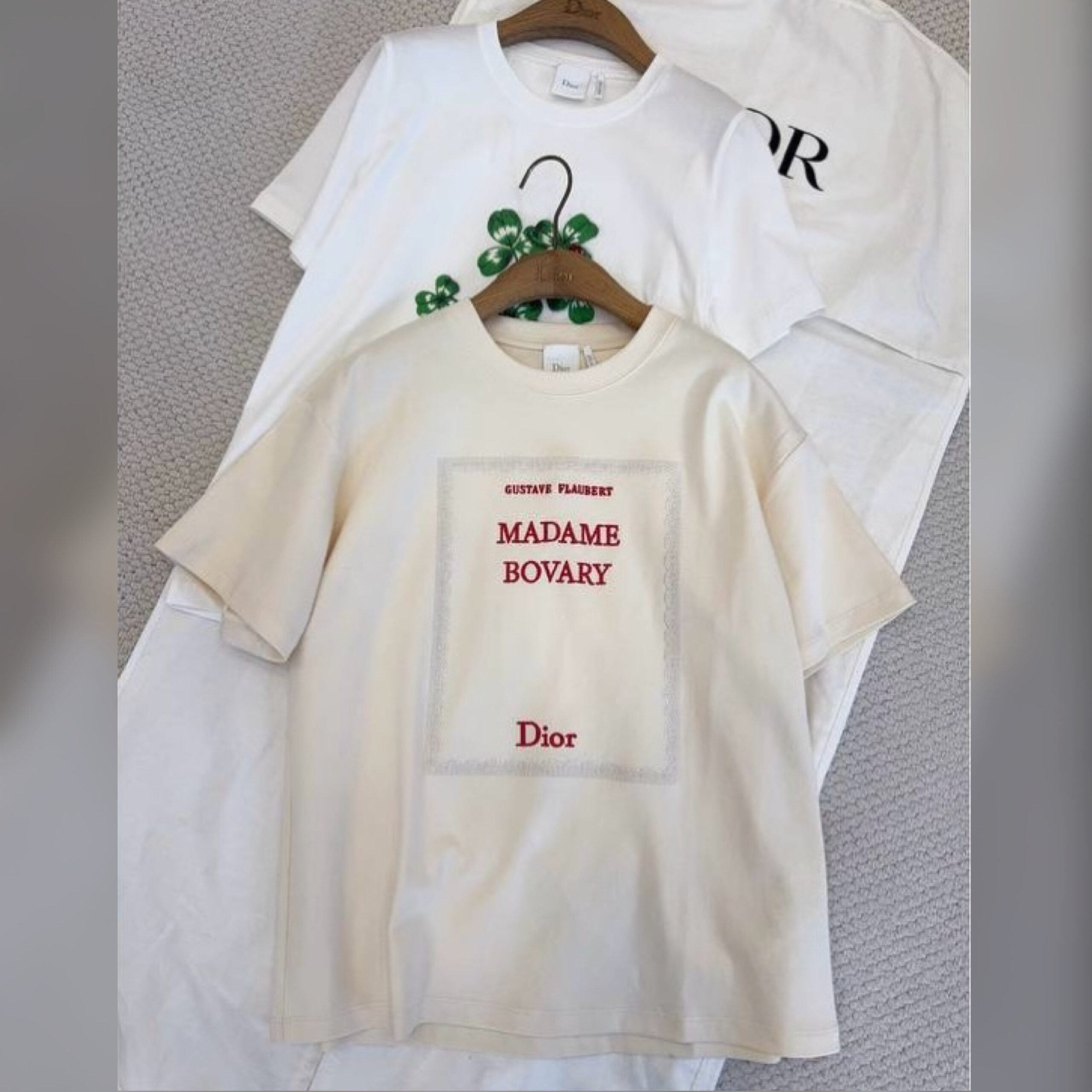 Футболка является частью библиотеки мечты Джонатана Андерсона, демонстрируя обложку первого издания «Мадам Бовари» Гюстава Флобера. Изготовленная из хлопкового трикотажа модель отличается кроем оверсайз. Дополненная подписью Dior футболка будет сочетаться с любыми образами в течение всего года.
