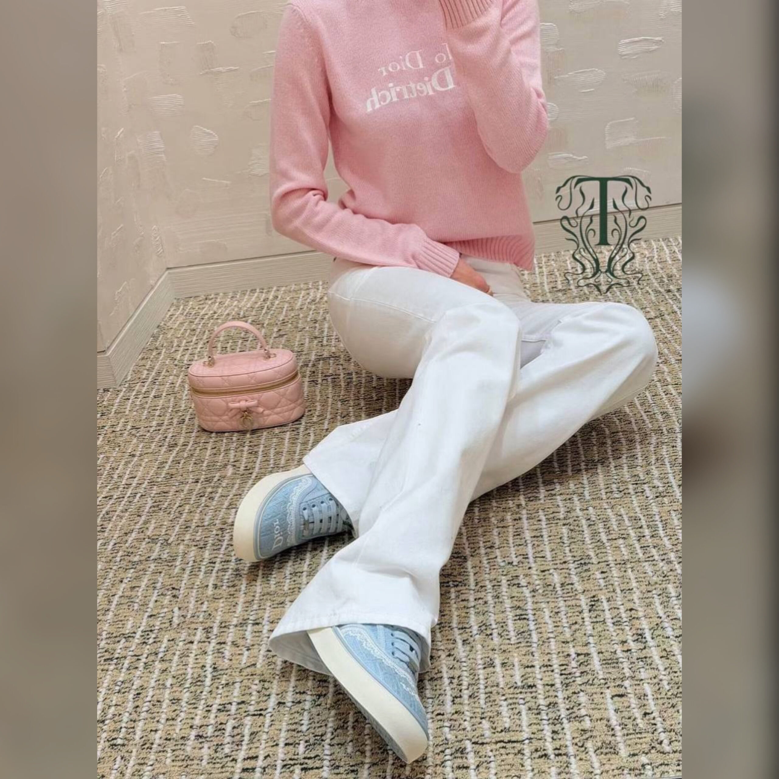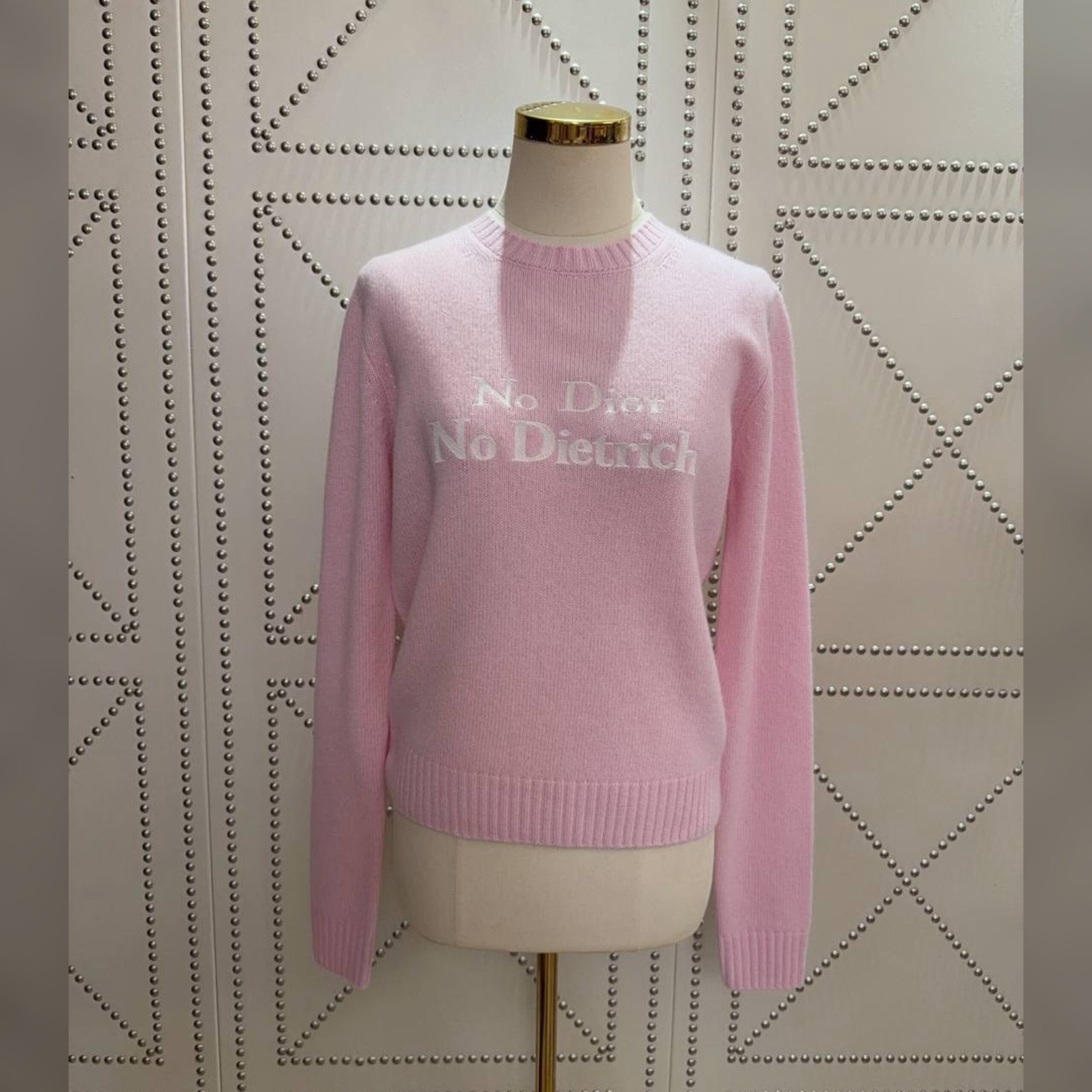 Манифест первой коллекции Джонатана Андерсона, джемпер демонстрирует знаменитый ультиматум Марлен Дитрих Альфреду Хичкоку: «Нет Диор, нет Дитрих». Изготовленная из кашемирового трикотажа модель будет сочетаться с любым образами в течение года.