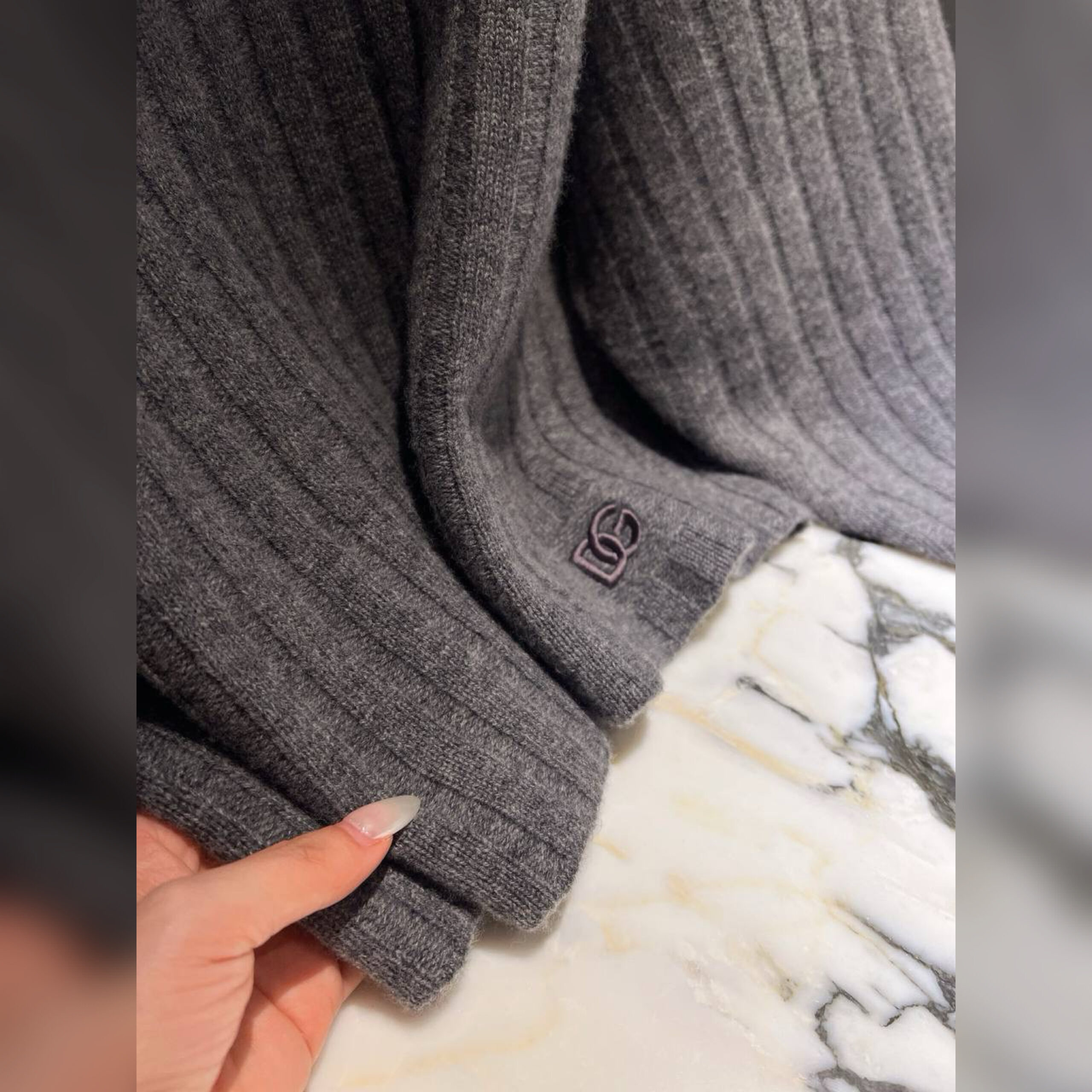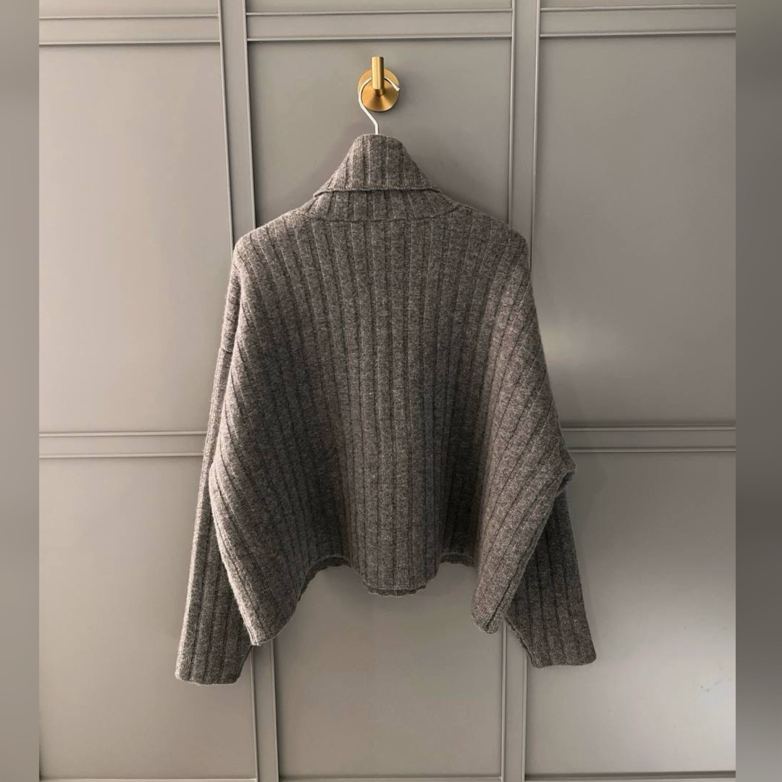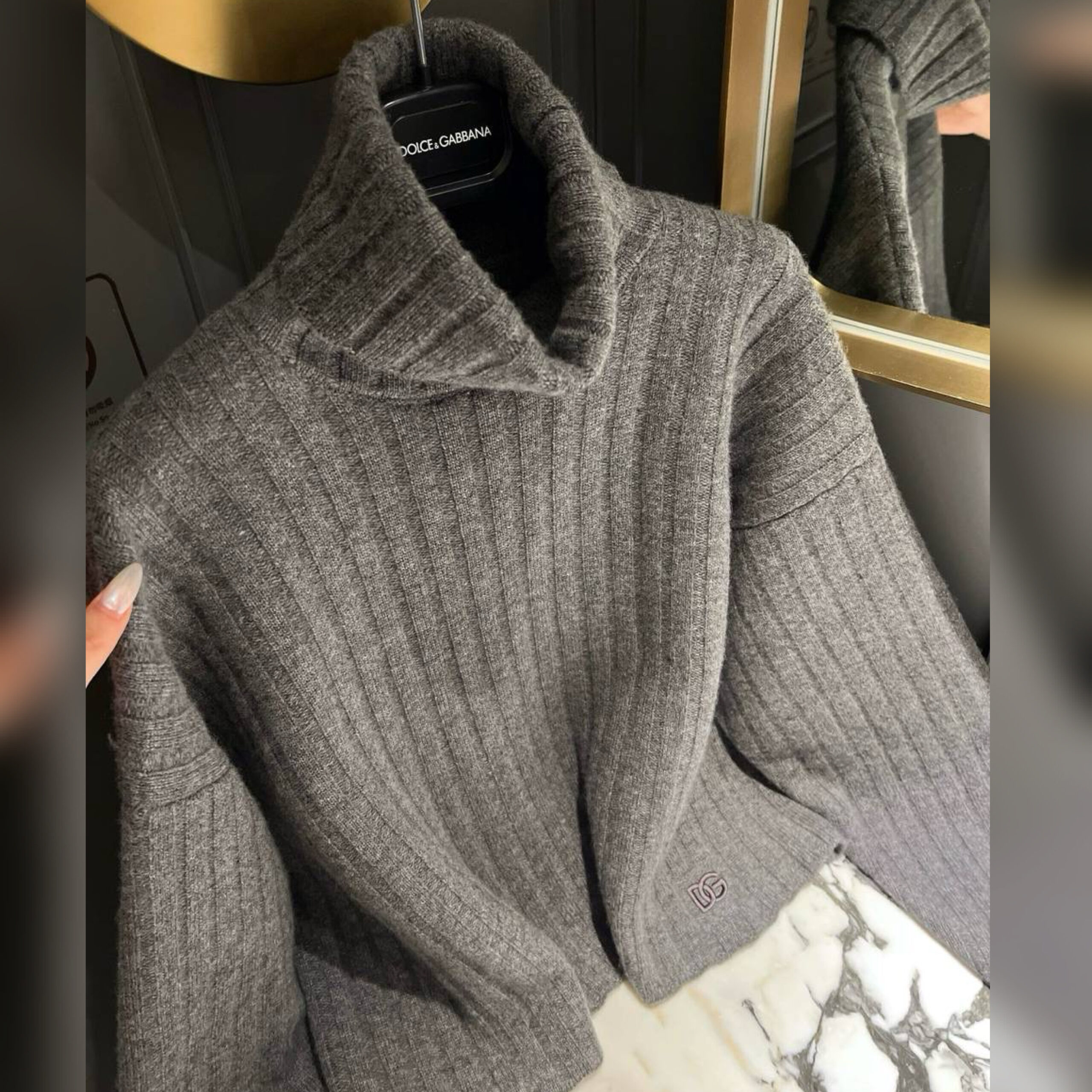Свитер с рельефным узором связали из нежного кашемира, поэтому в нем будет особенно тепло и комфортно. Модель с высокой горловиной и спущенной линией плеч будет гармонично смотреться в повседневном образе.