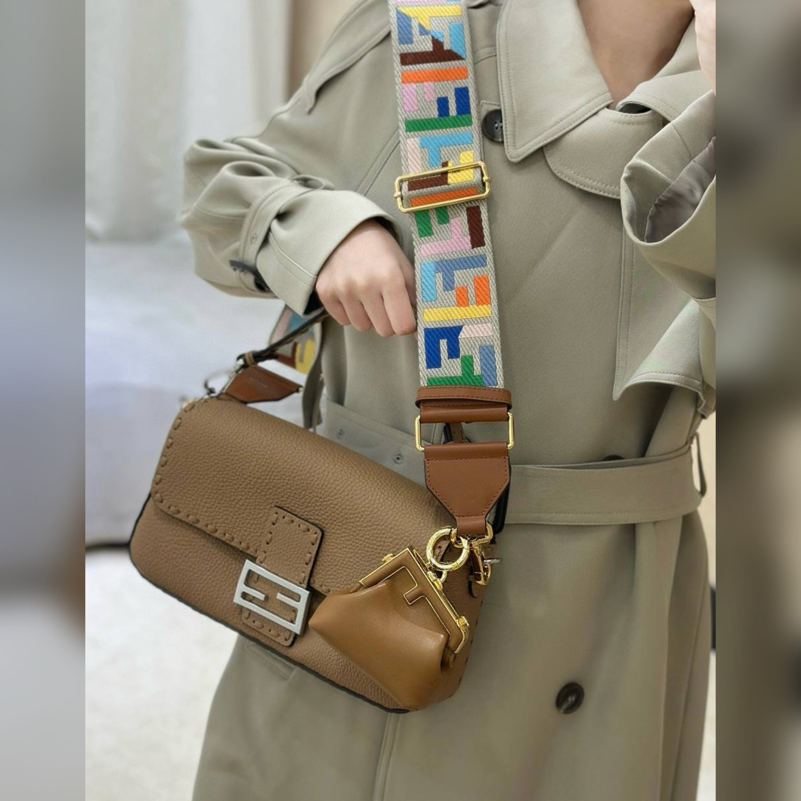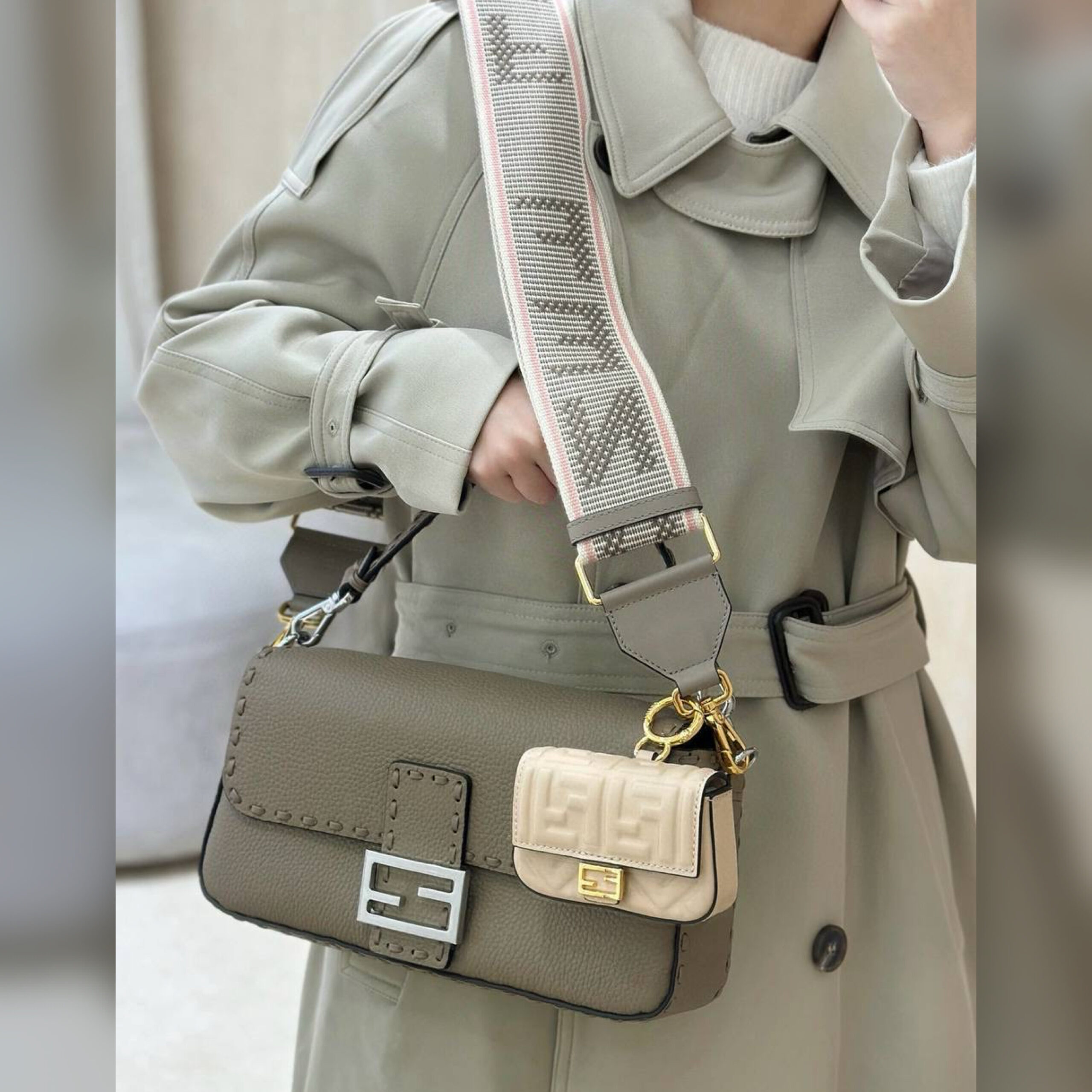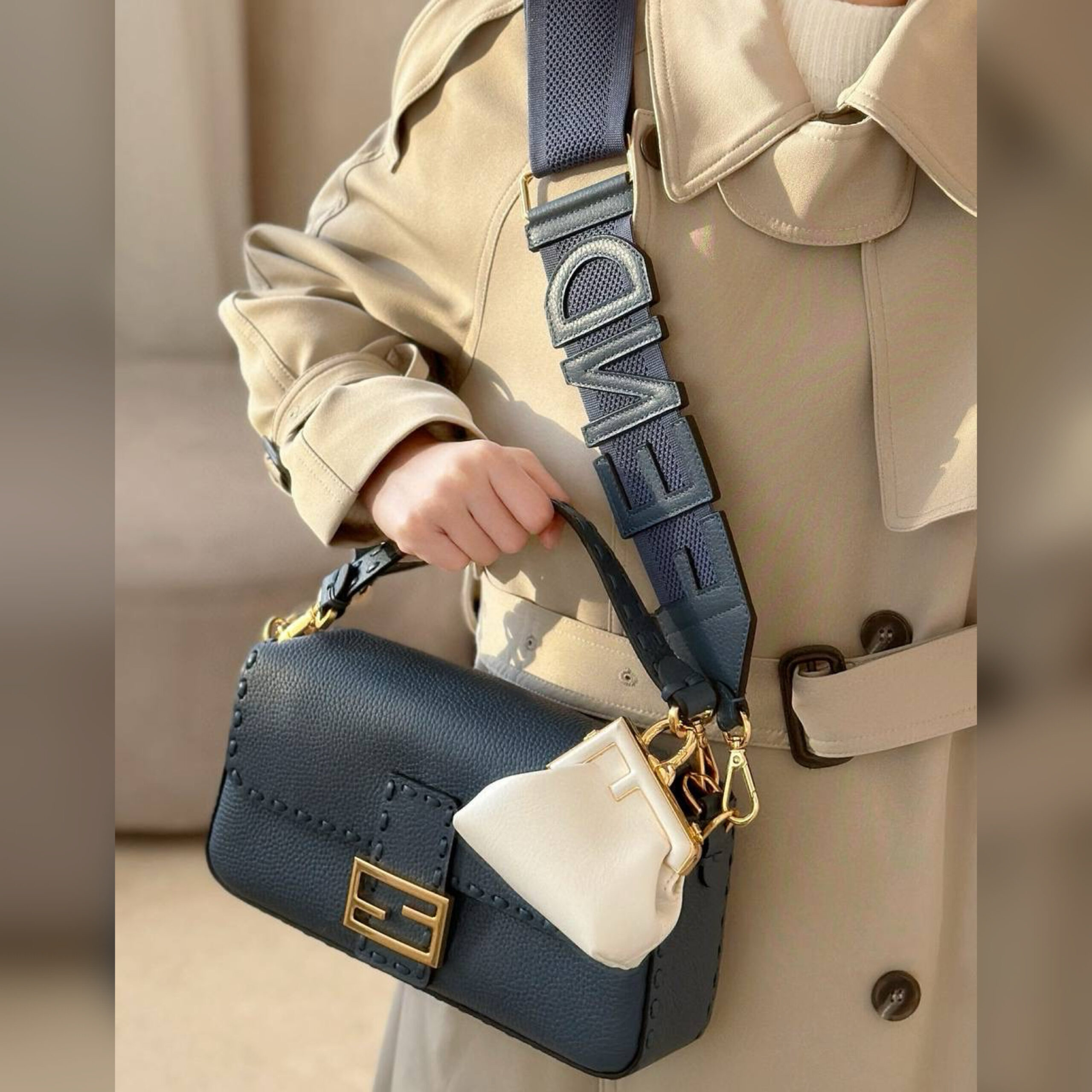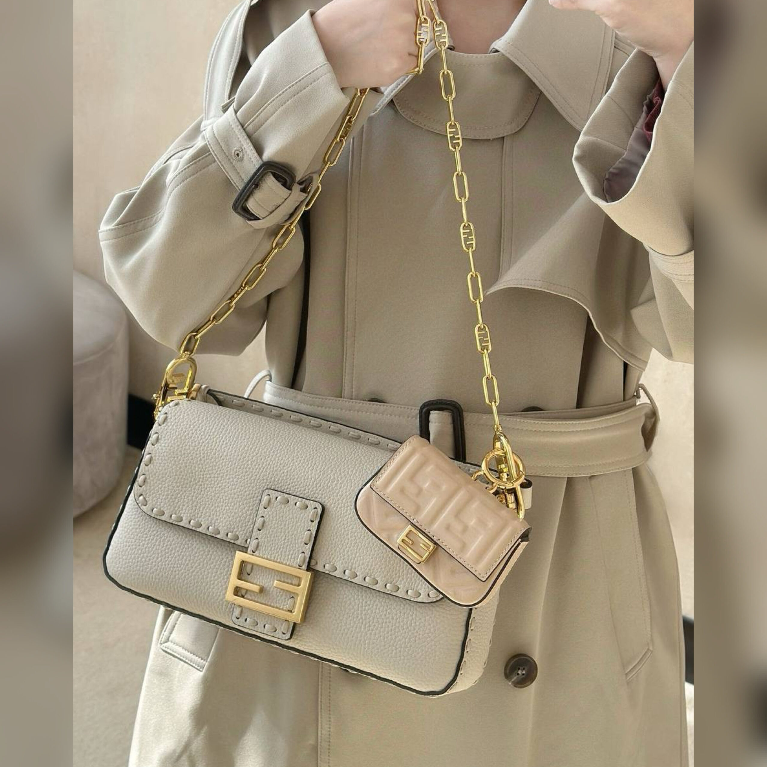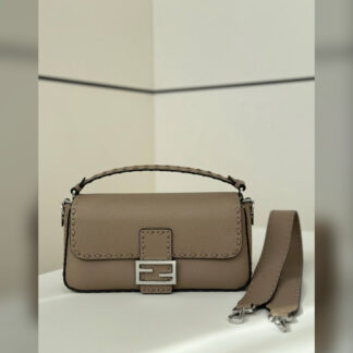 Легендарная сумка Baguette среднего формата, прошитая 612 макро-стежками в тон, — символ легендарной отделки Selleria, созданной мастерами Fendi в 1925 году.