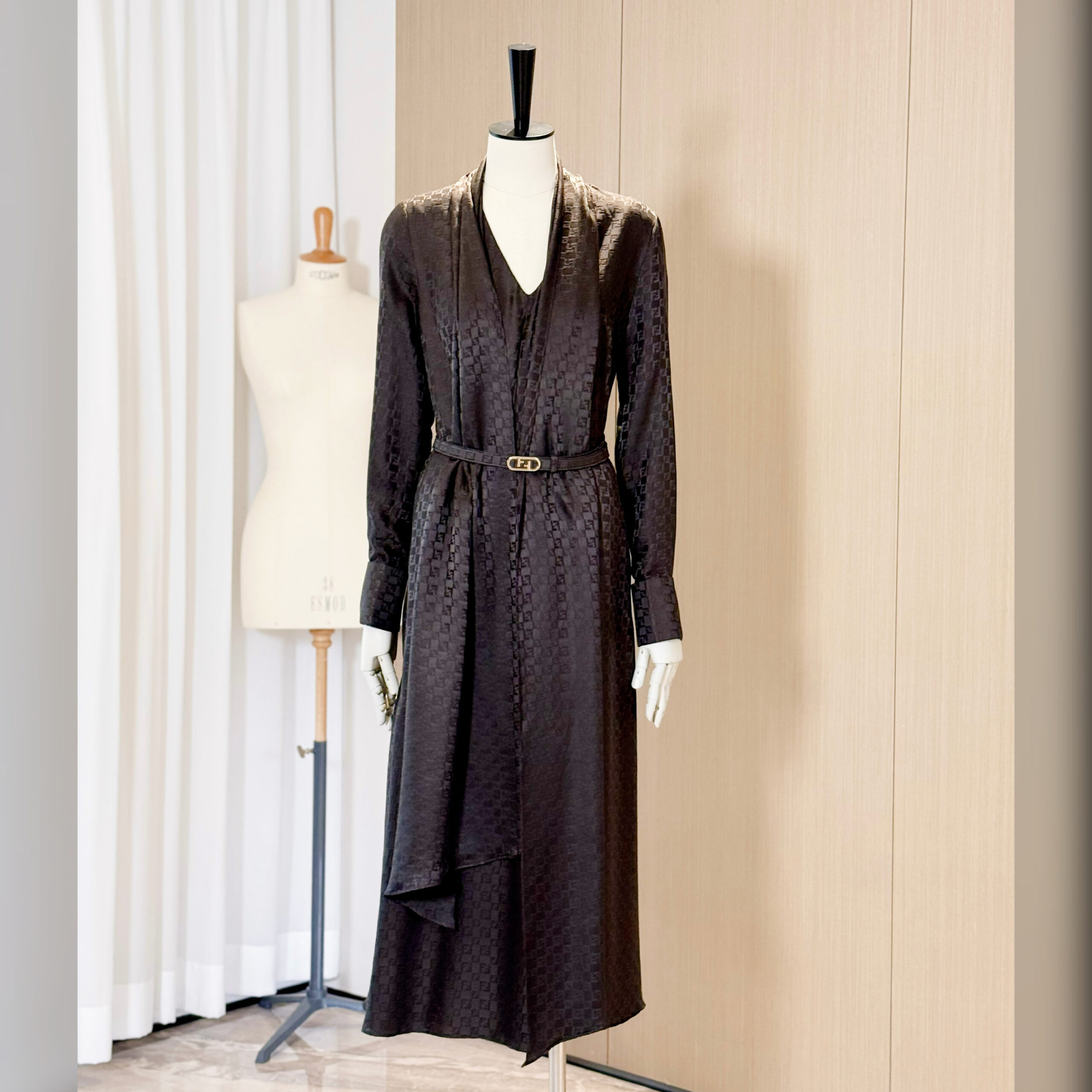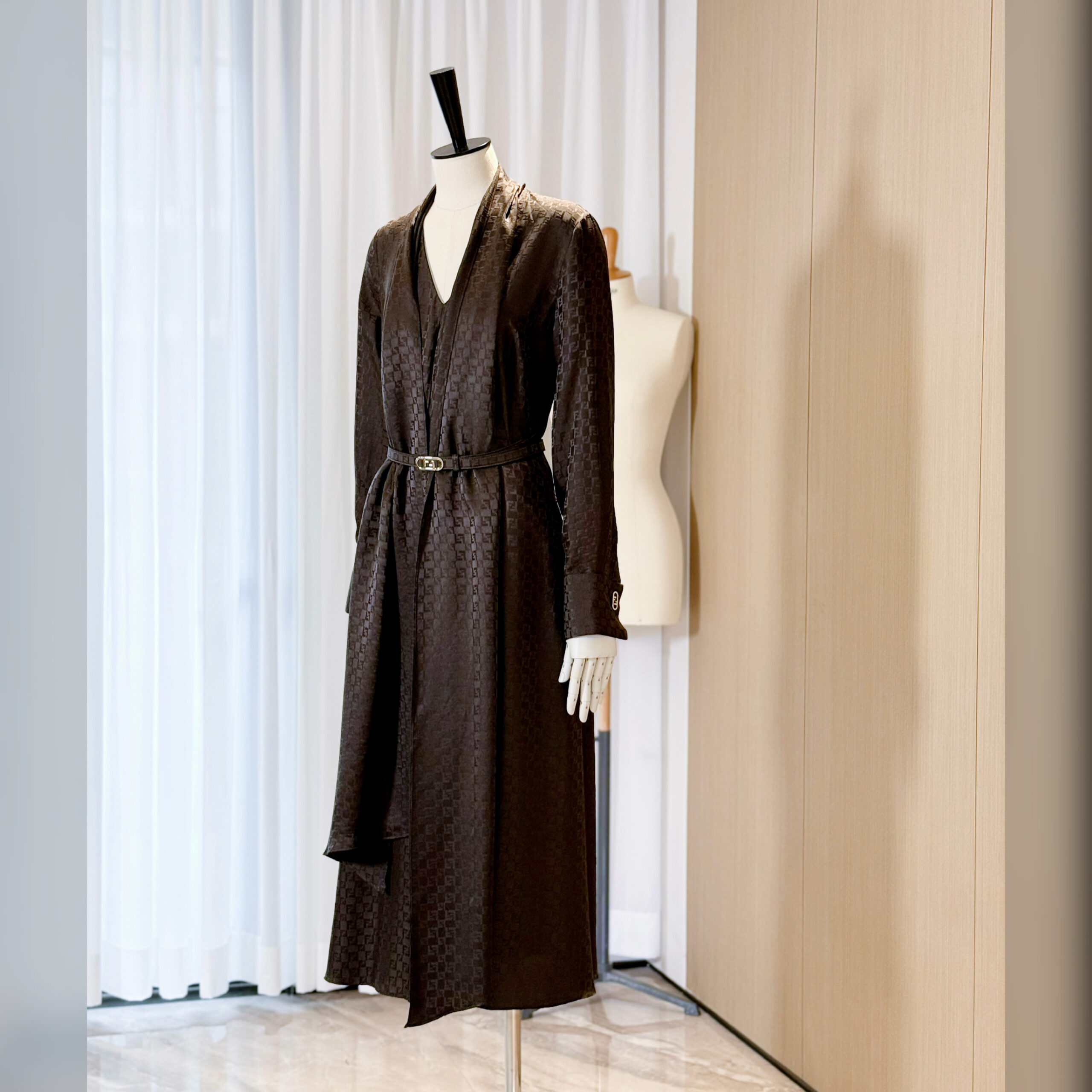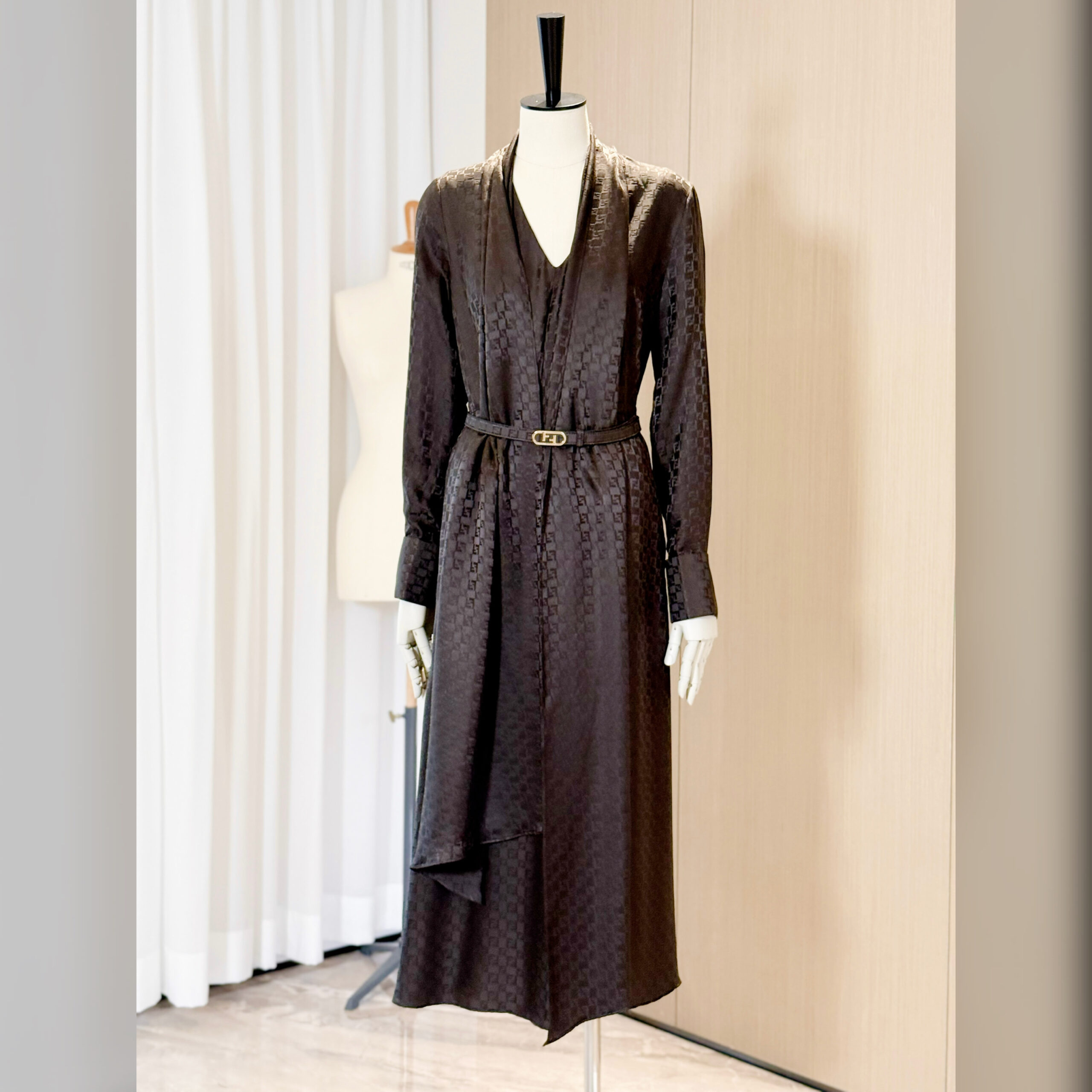 Ткань украшена легендарным жаккардовым узором FF в виде шахматной доски по всей поверхности.