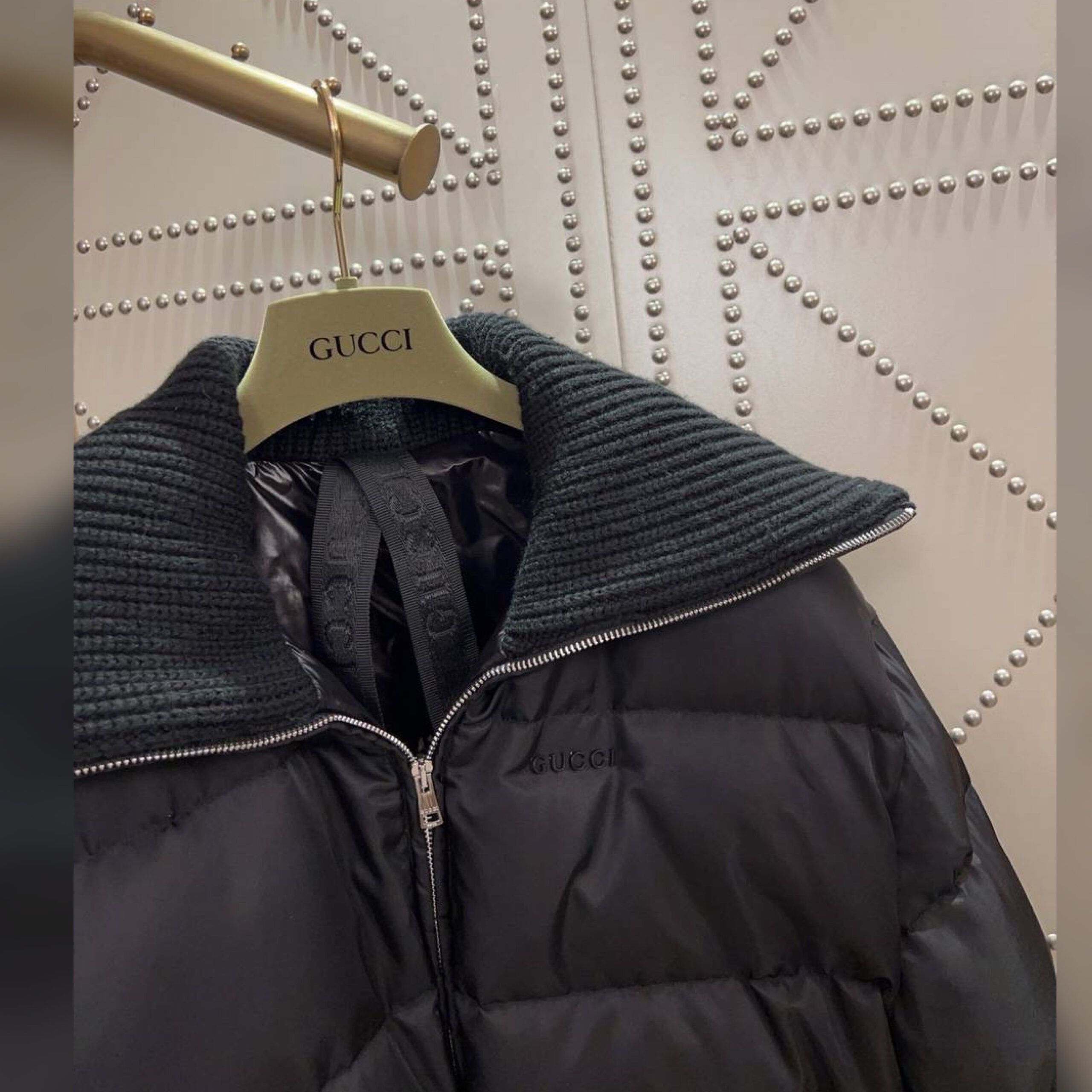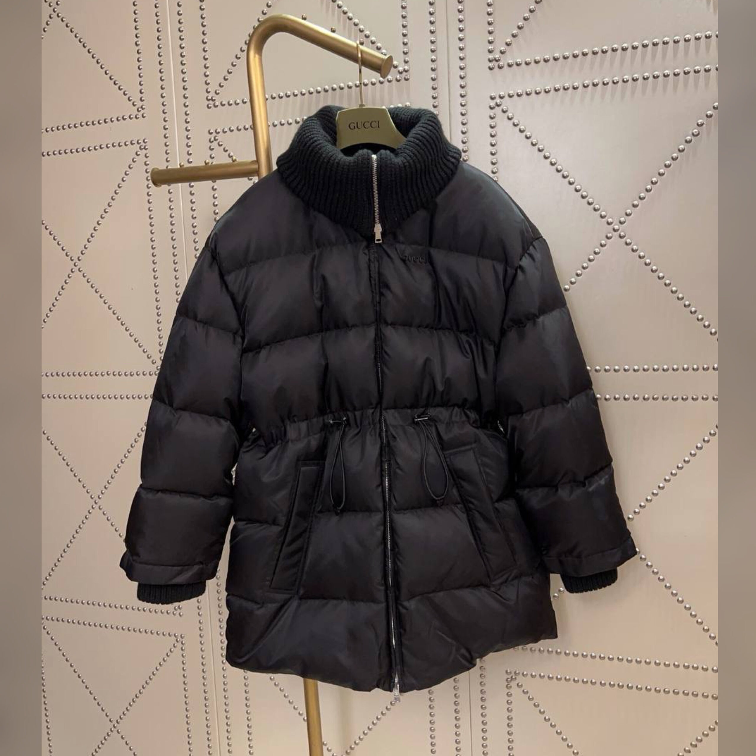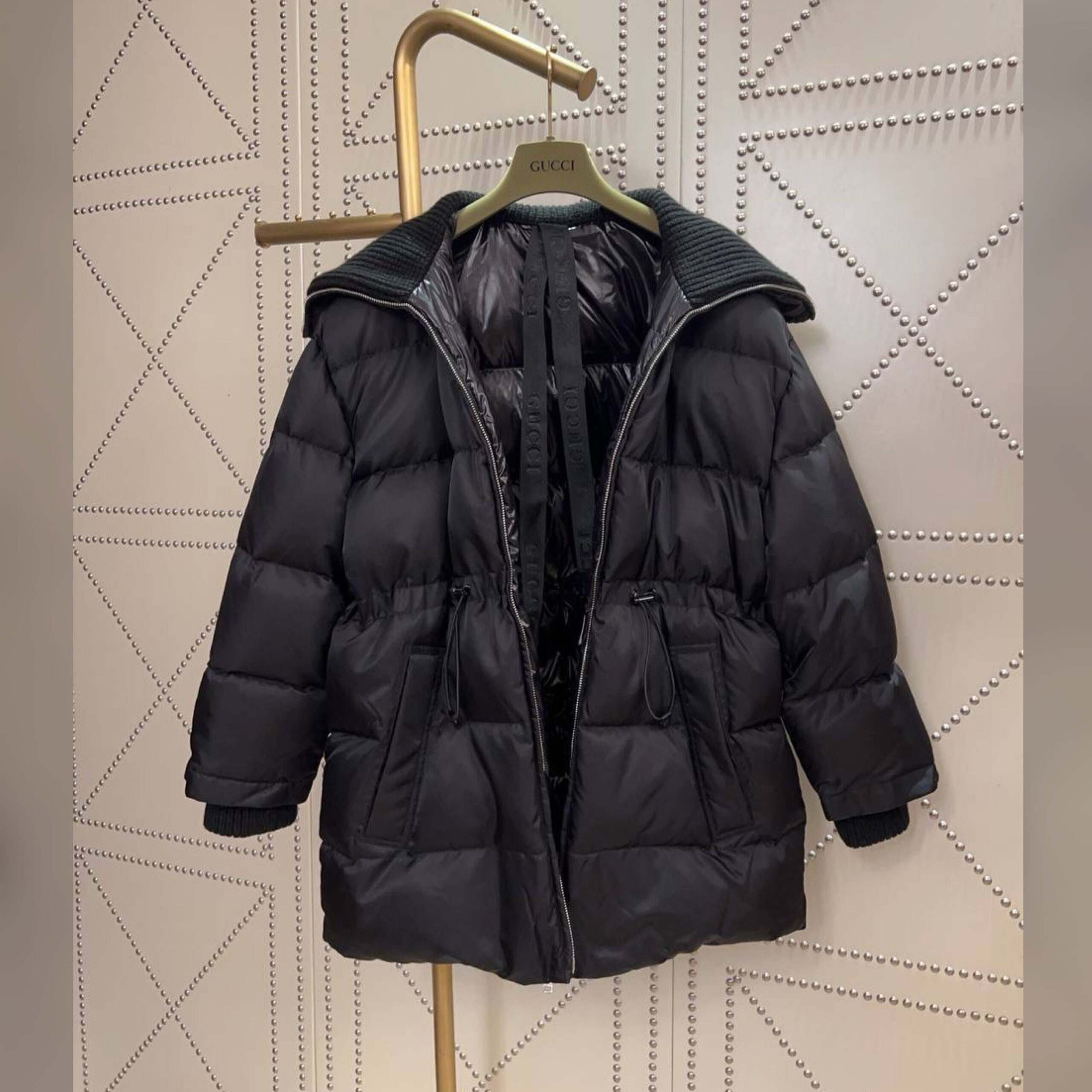 Утепленную куртку с эластичной кулиской на талии сшили из тонкого габардинового нейлона. Широкий воротник отделали трикотажем, выполнив из такого же материала и манжеты. По бокам предусмотрели карманы, а внутри – брендированные лямки, позволяющие спустить пуховик с плеч. Модель на нейлоновом подкладе застегивается встречной молнией.