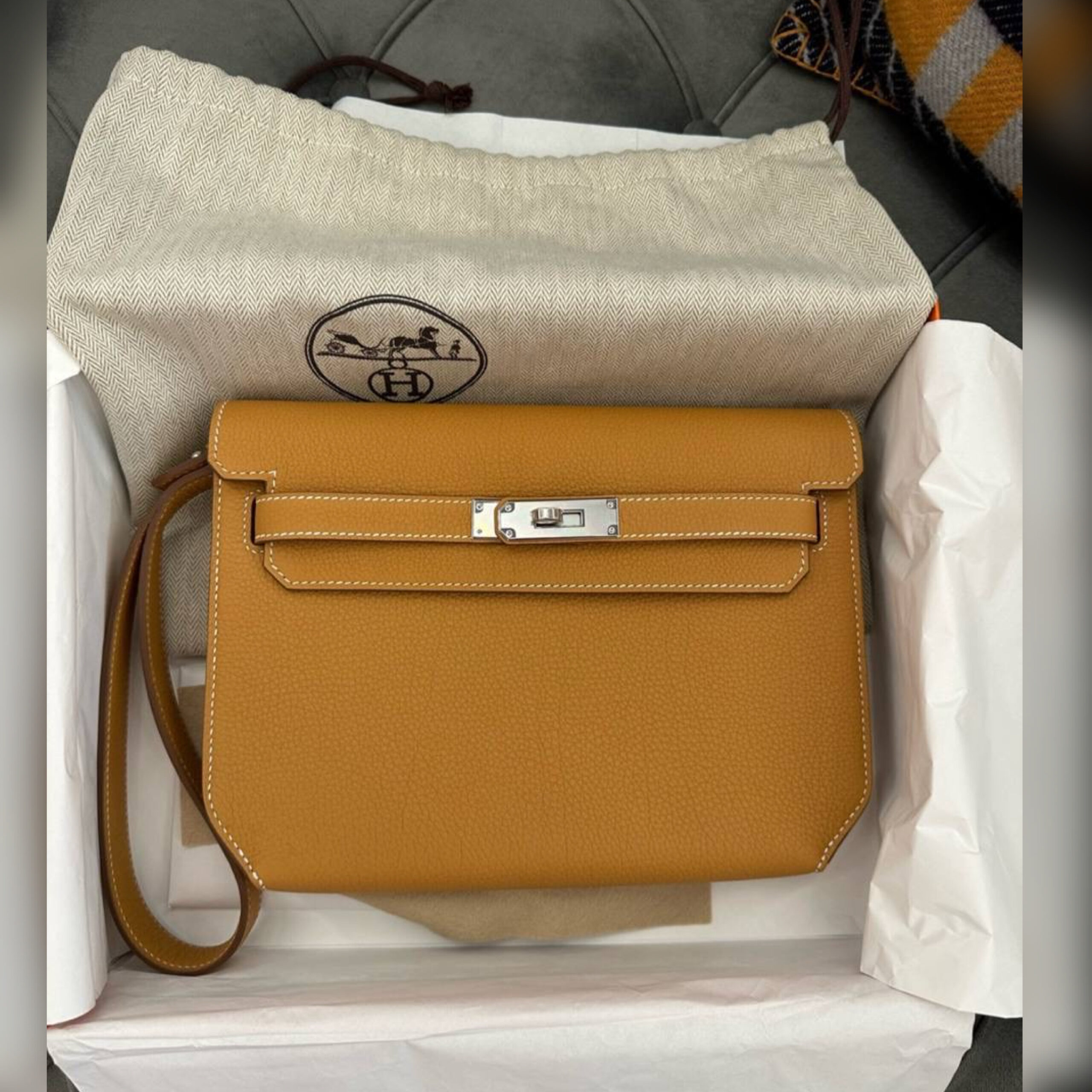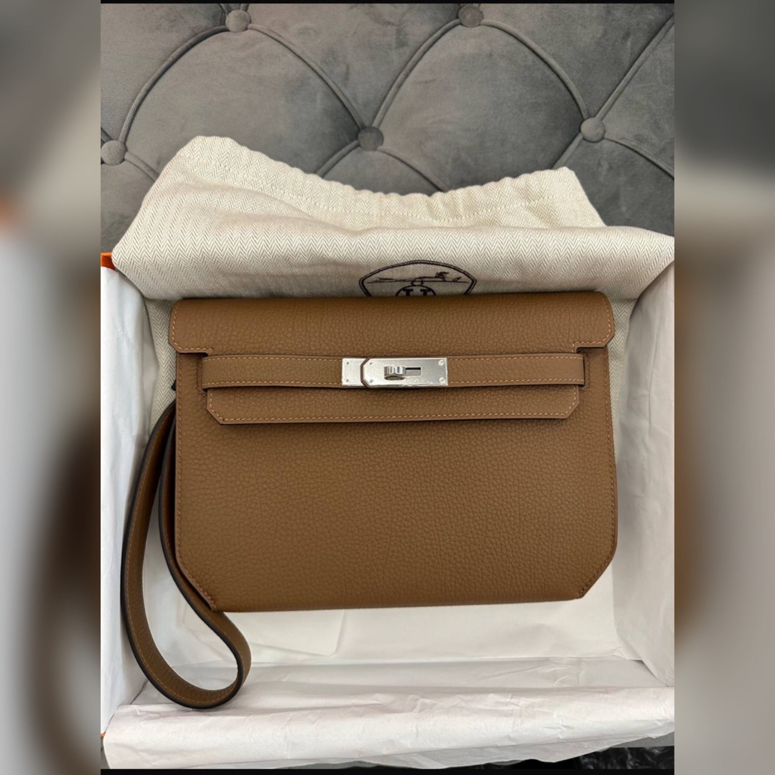 Верхний откидной клапан со знаковой застёжкой, отсылает к сумке Kelly. У нее же позаимствовали скользящий фиксирующий ремешок из натуральной кожи, продетый в люверсы.