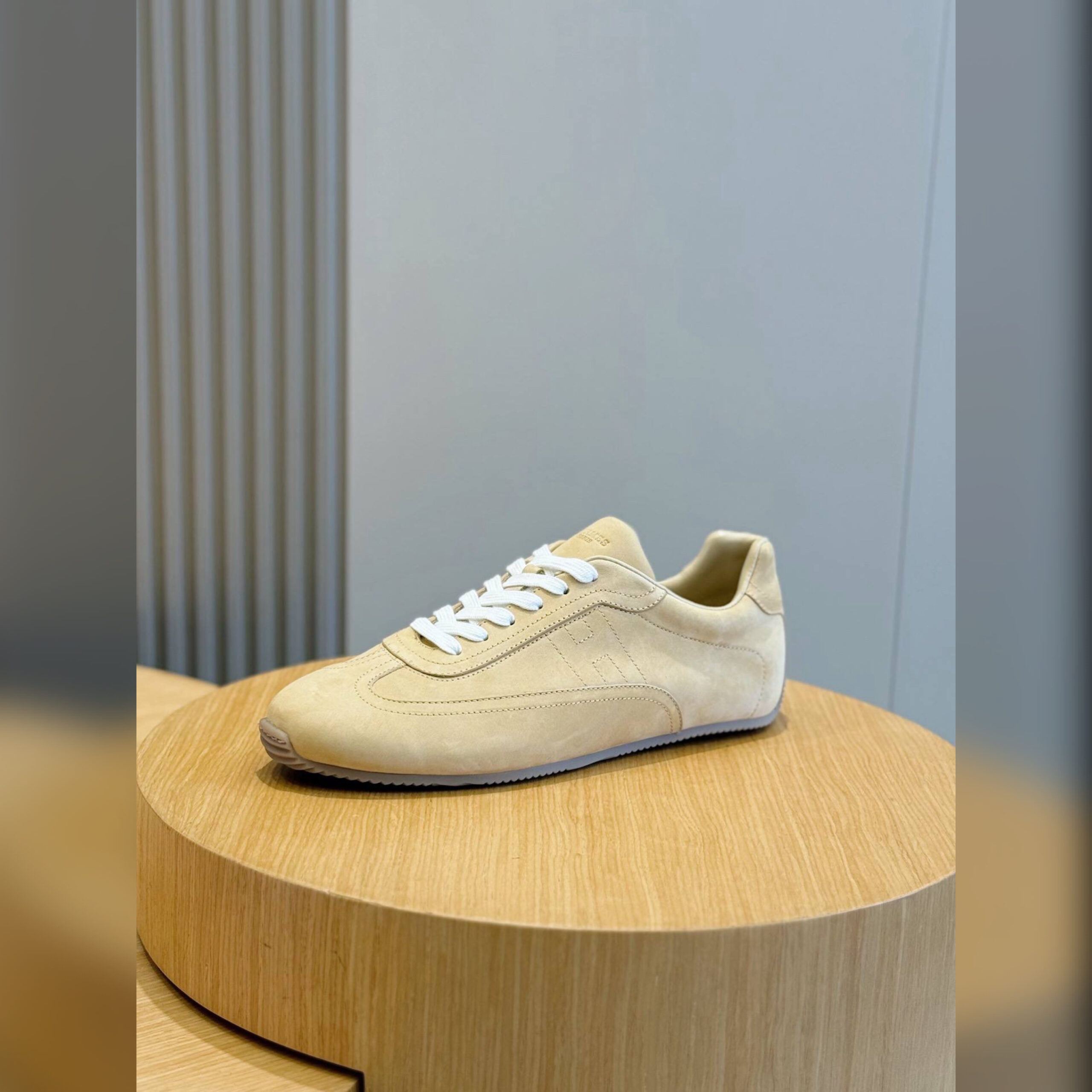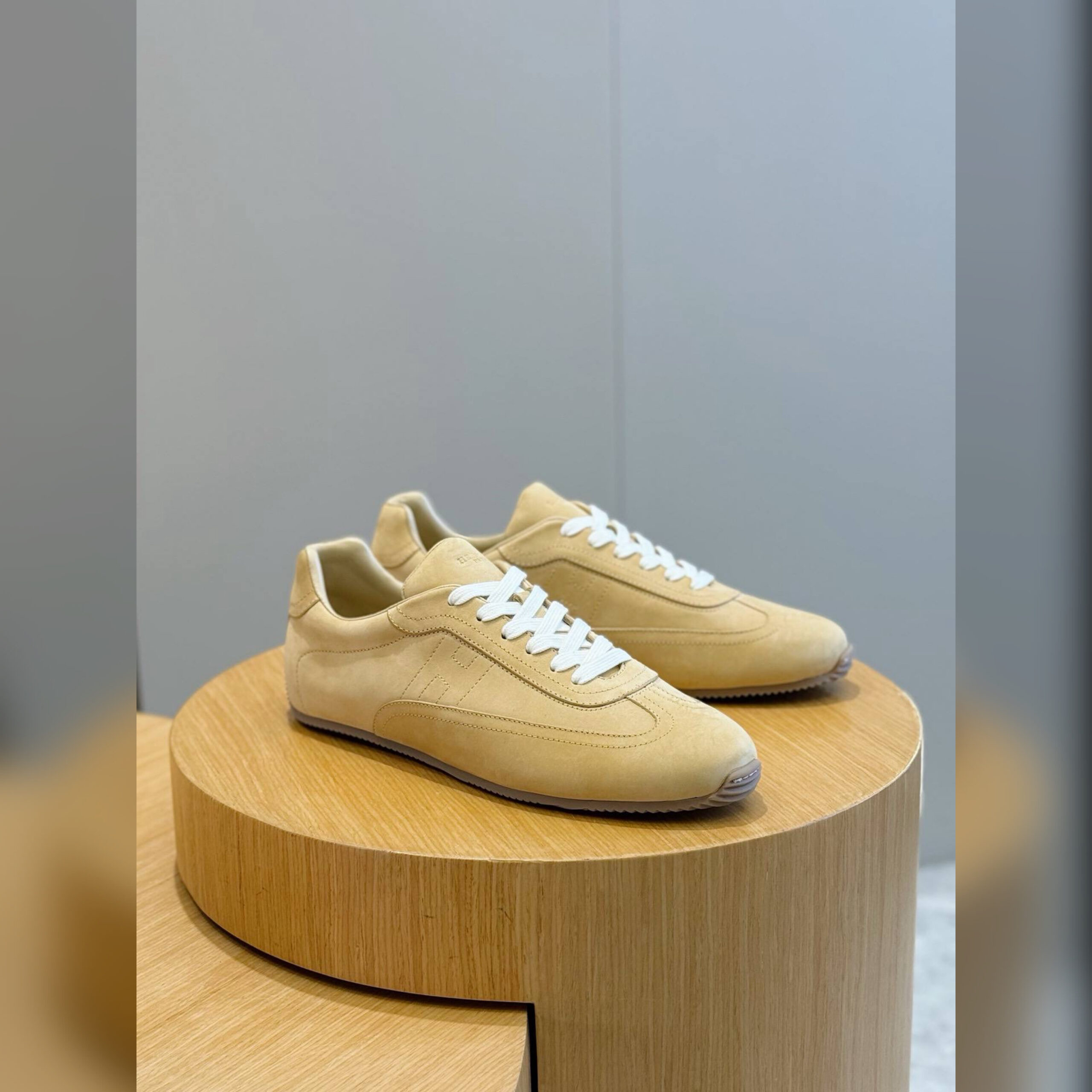 Кроссовки Master из эластичной замшевой козьей кожи украсили вышитой монограммой H сбоку. Эту фирменную символику поддержали тисненым логотипом на язычке и заднике.