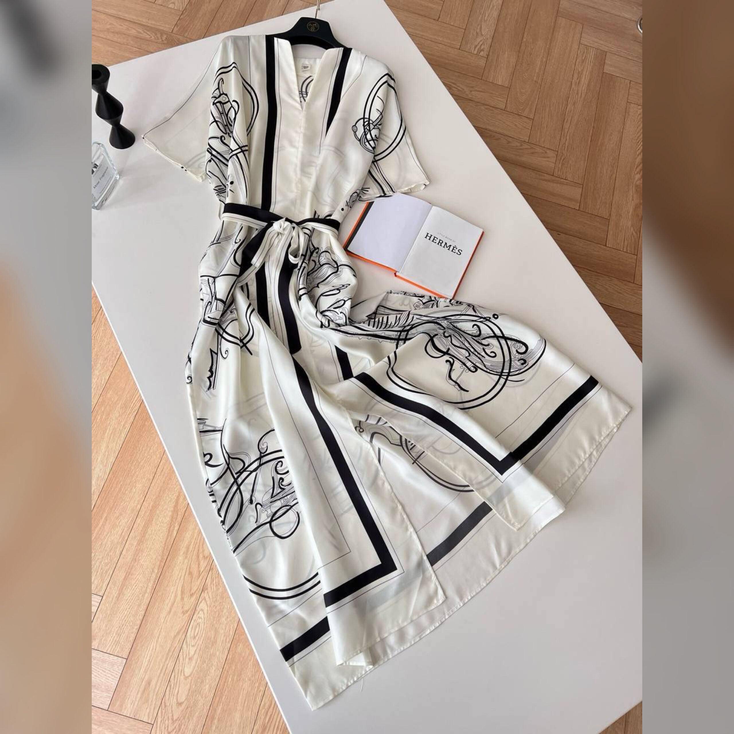 Миди-платье молочного оттенка демонстрирует талант дизайнеров бренда в создании сложносочиненных узоров.