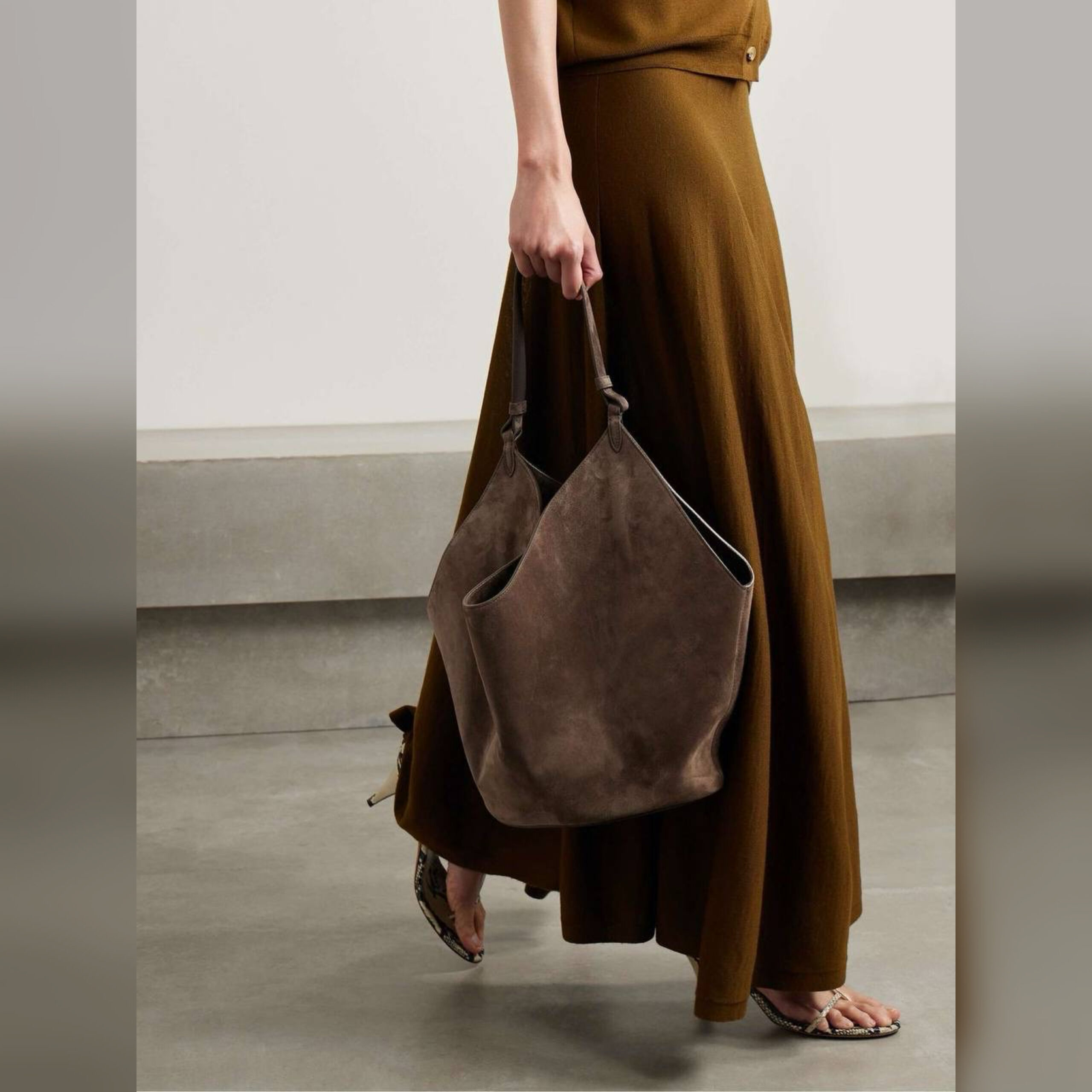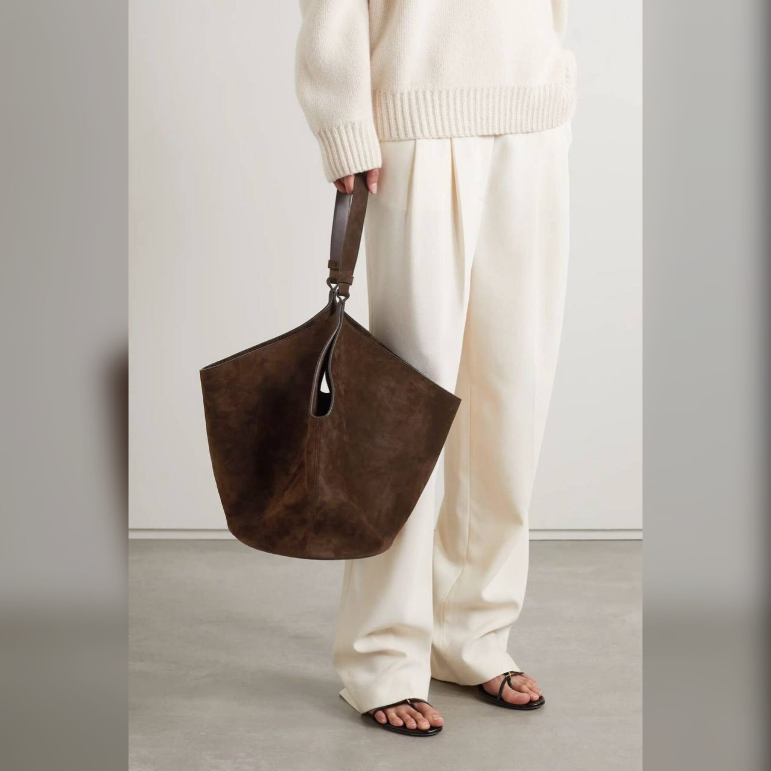 В коллекцию сезона весна-лето дизайнер марки включил вместительную трапециевидную сумку Lotus лаконичного цвета.
