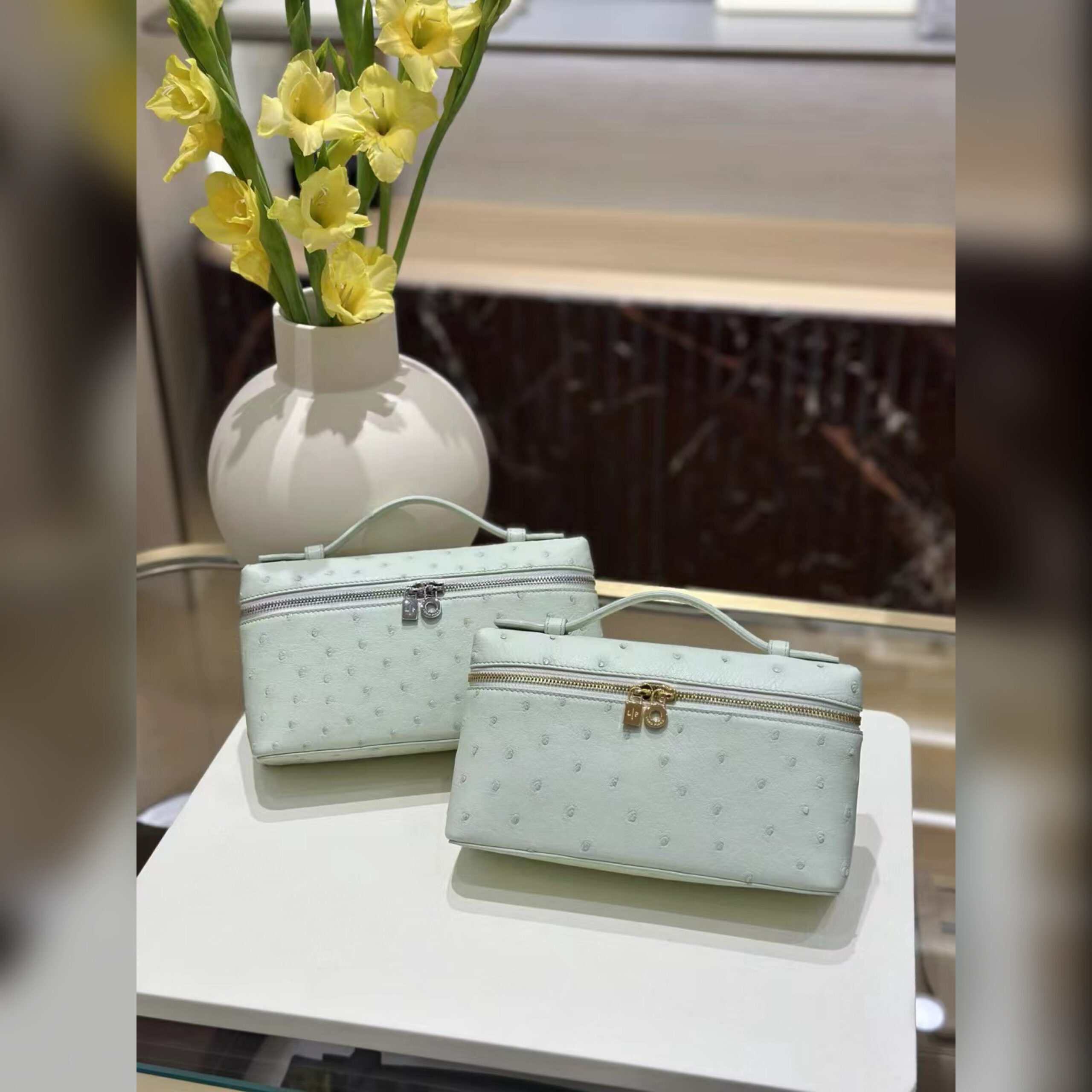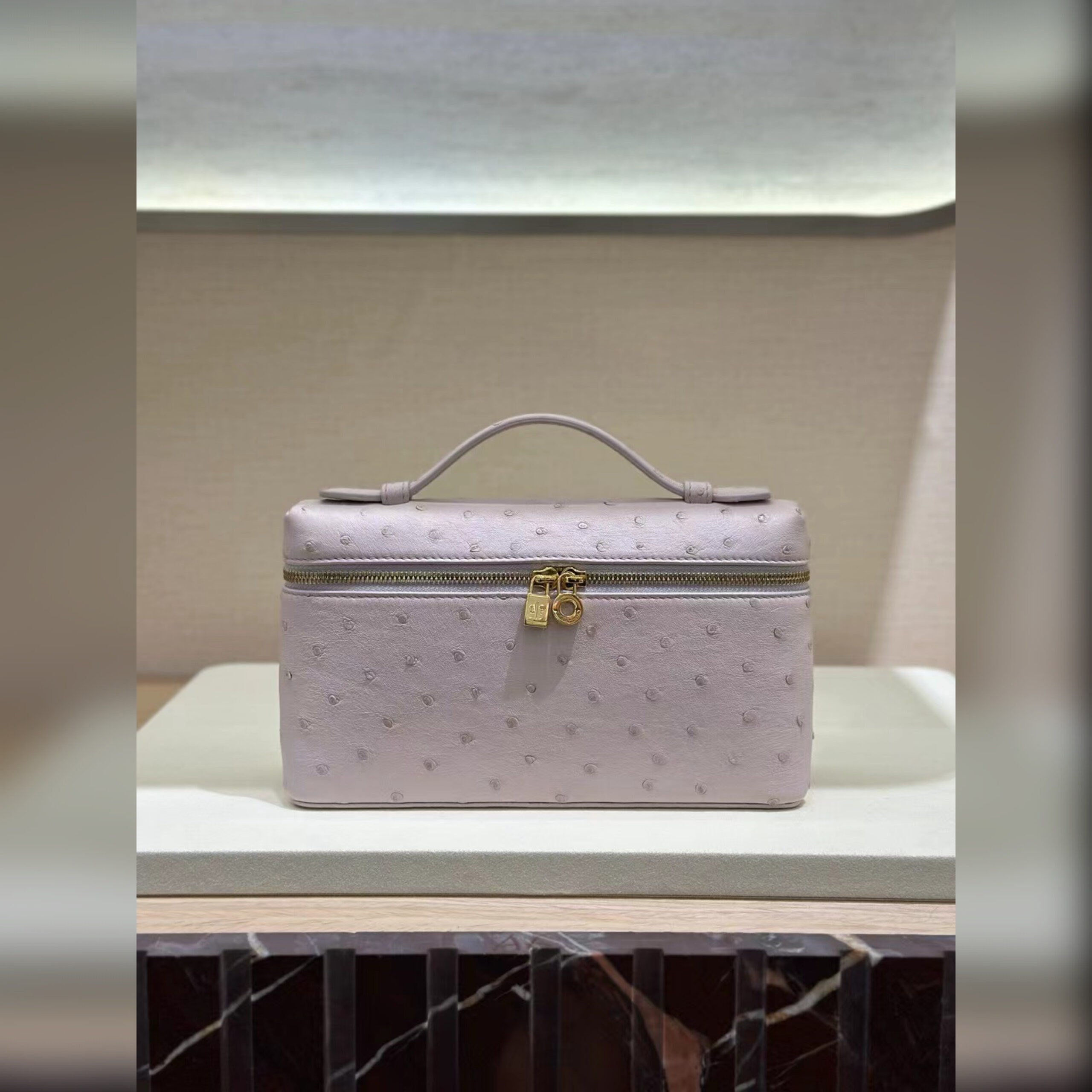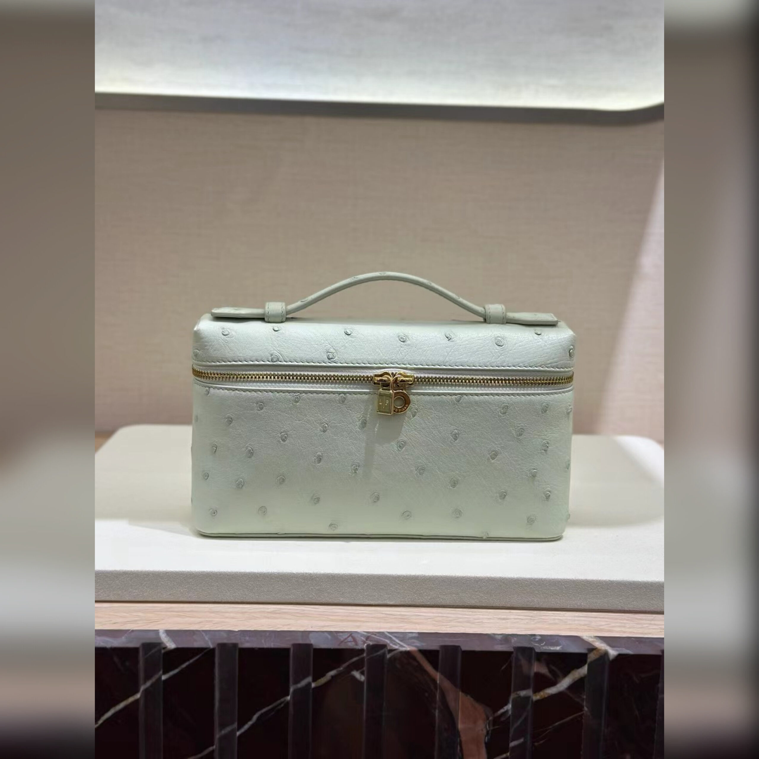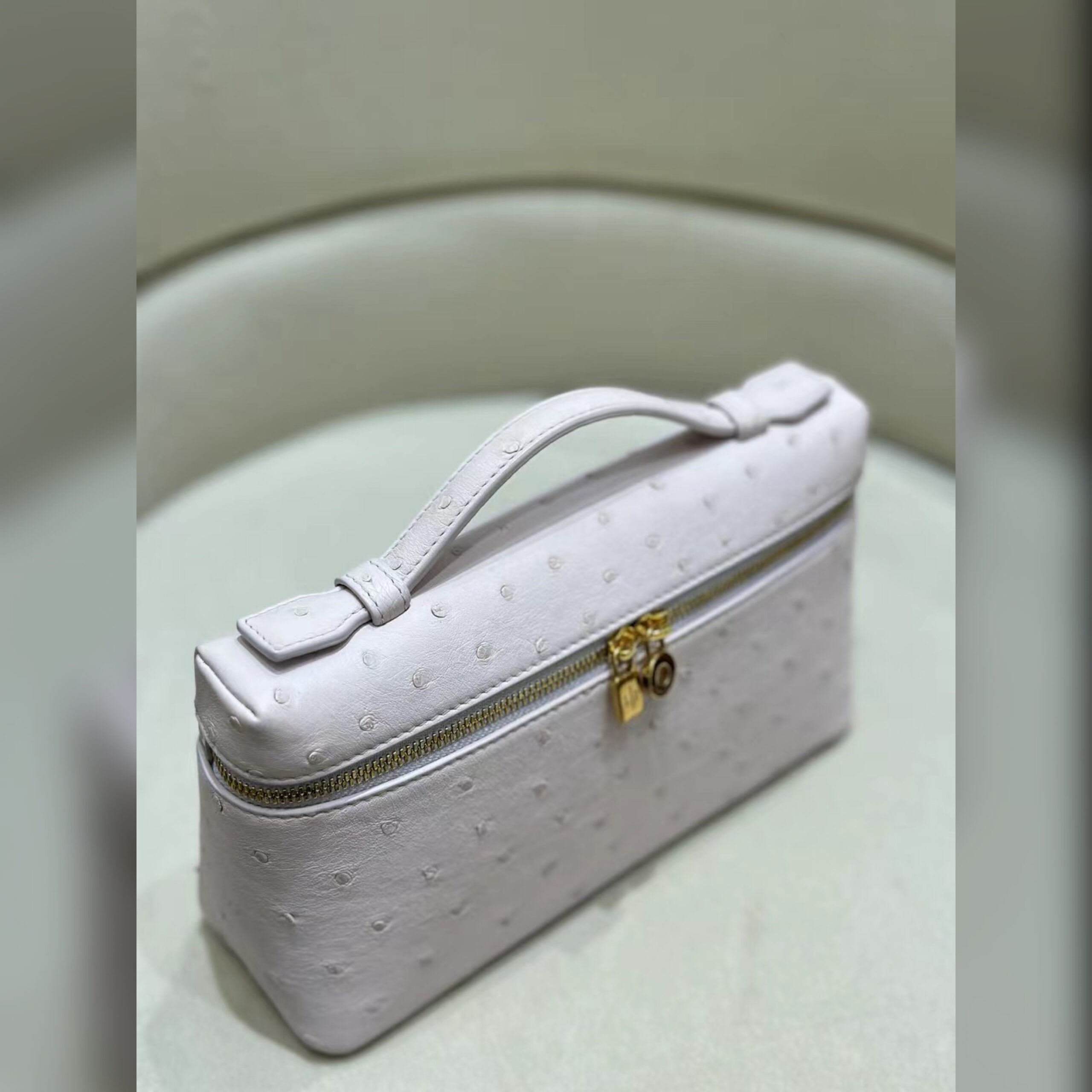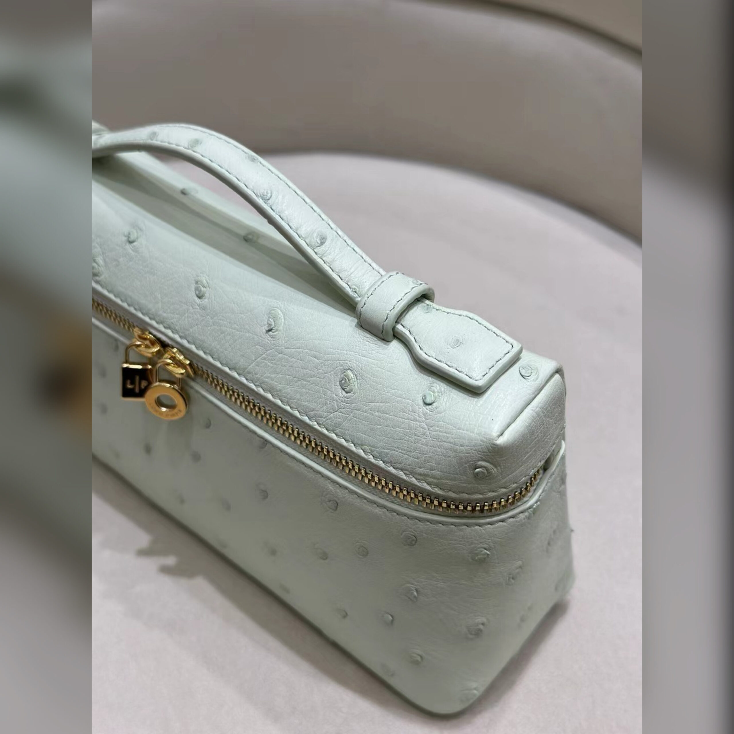 При создании сумки Extra Pocket не использовали яркий декор, но при этом она смотрится эффектно. Этого добились особо мягкой и эластичной кожей страуса с уникальной фактурой. Помимо рисунка, который никогда не повторяется, у этого материала есть еще одно достоинство: он считается одним из самых прочных, поэтому аксессуар надолго сохранит первоначальный внешний вид.