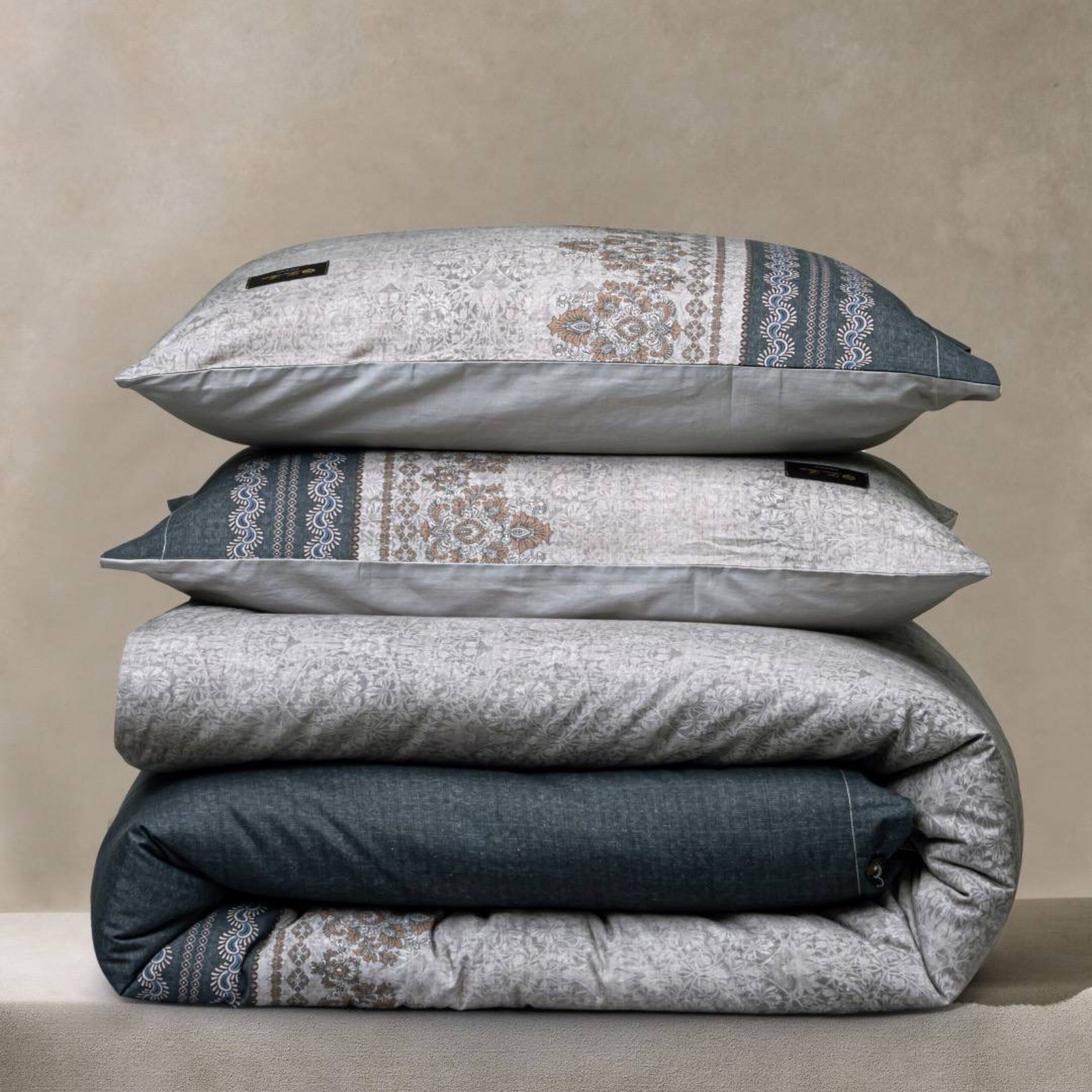 Постельное белье, словно произведение искусства, создаёт ауру изысканности и комфорта, украшая интерьер. В комплекте сочетается элегантный внешний вид и превосходное качество натуральных материалов.