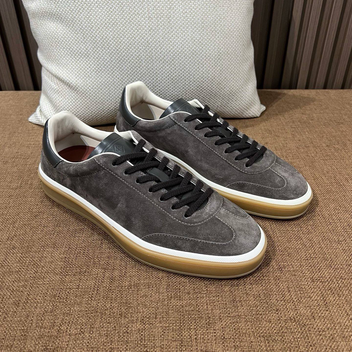 Кеды на гибкой подошве, вдохновленные обувью для тенниса 1970-х, выполнили из бархатистой замши, фирменного фактурного текстиля и натуральной кожи. Лаконичную модель без декора дополнили лишь тиснеными логотипами на язычке и заднике.