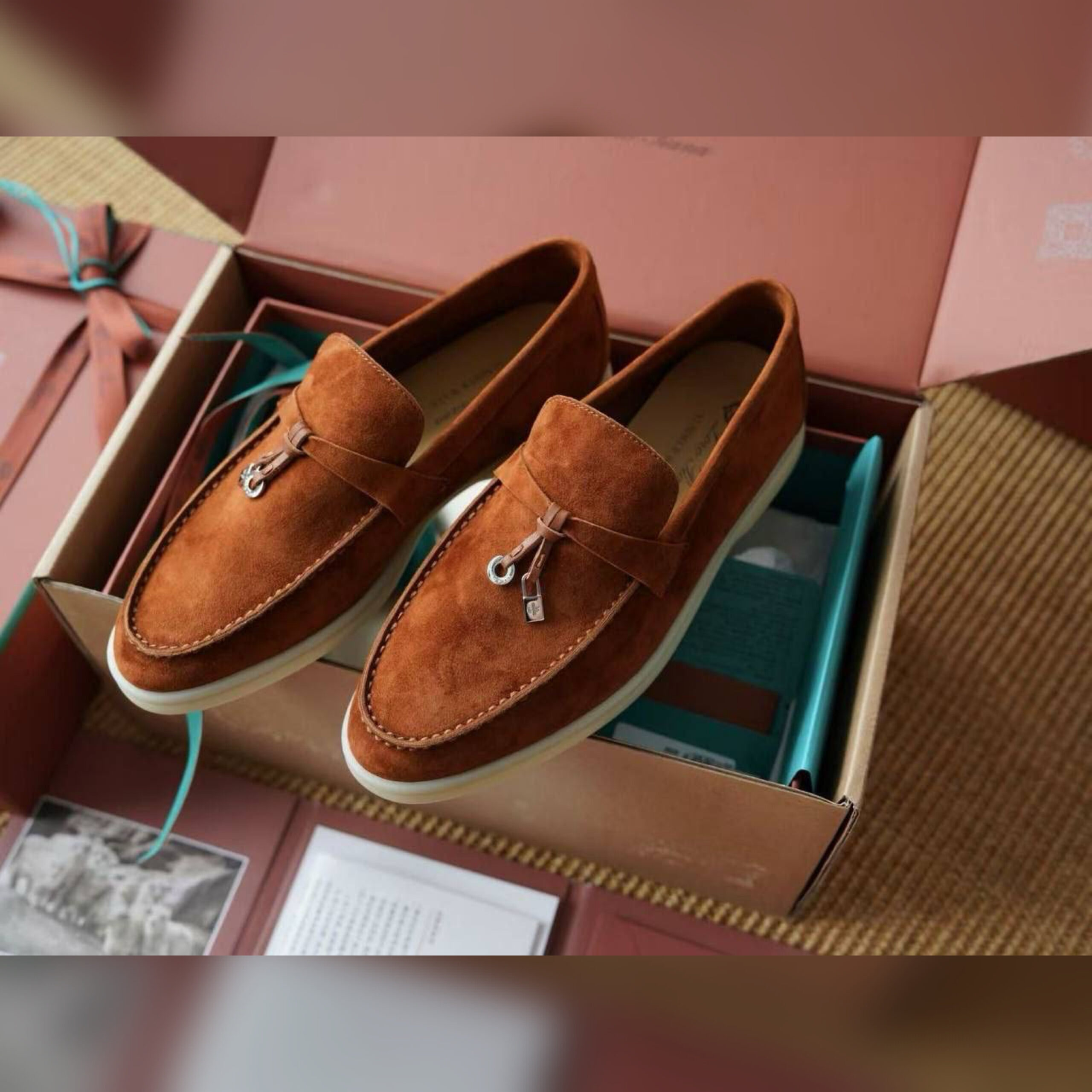 Мастера марки, основанной Пьетро Лоро Пьяна, кропотливо обработали бархатистую замшу до исключительной мягкости и не использовали подкладку.